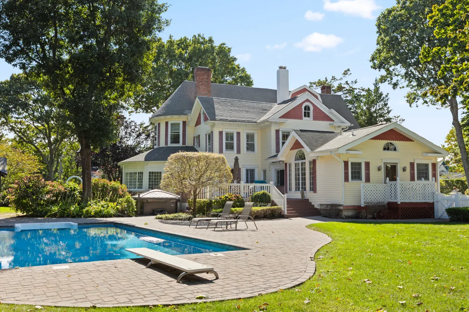 1860s Queen Anne Victorian on 1.7 Gated Acres in Bayport with Pool and Carriage House