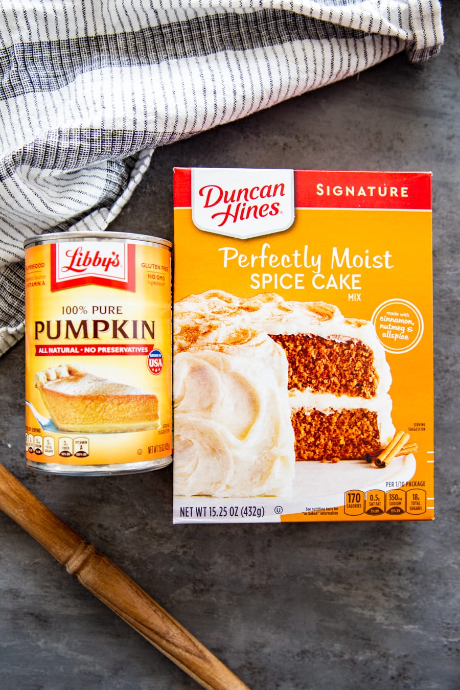 Make sure to use plain canned pumpkin, not pumpkin pie filling. The spice cake mix provides all the flavoring you need.