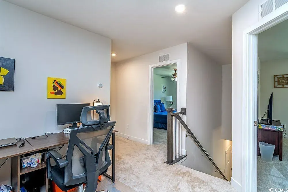 Located at 7 Moss Hollow Way, Unit 7, in Simpsonville, SC, this 2,077 sq ft patio home offers 3 bedrooms and 3 bathrooms. Built in 2021, this townhouse-style single-family residence sits on a 3,049.2 sq ft lot and boasts a desirable open concept floor plan. The residence features a main-level primary suite with a his-and-hers vanity and walk-in closet. Upstairs, find two guest bedrooms and a versatile loft area.