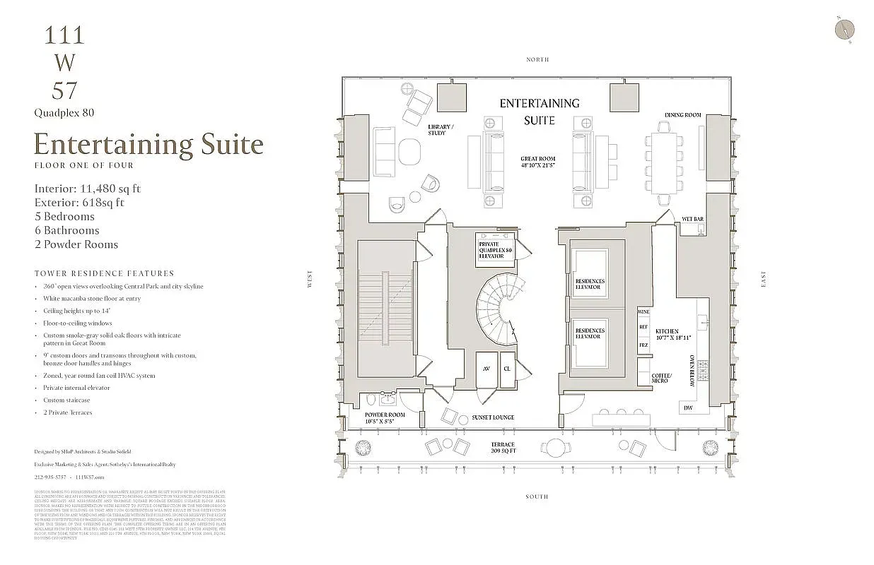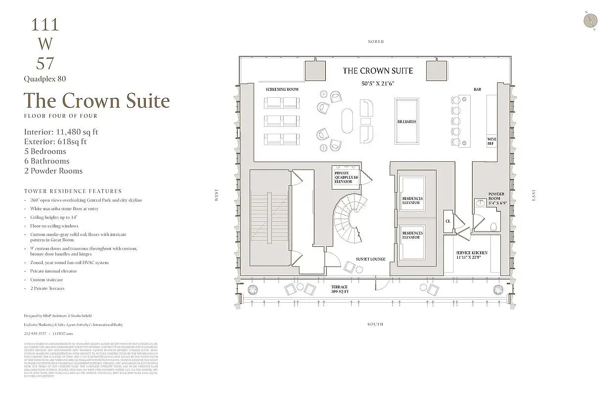 Experience the pinnacle of luxury living in this extraordinary Quadplex 80, located at the crown of 111 West 57th Street, a Manhattan icon.