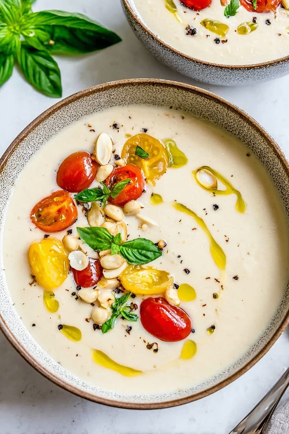 Albariño or Verdejo white wines complement the Spanish origins and nutty flavors beautifully, while a dry rosé provides a lovely contrast to the creamy richness. For non-alcoholic options, sparkling water with lemon cleanses the palate between spoonfuls, and iced green tea echoes the soup’s refreshing qualities. Spanish Marcilla coffee served after the meal honors the dish’s heritage.