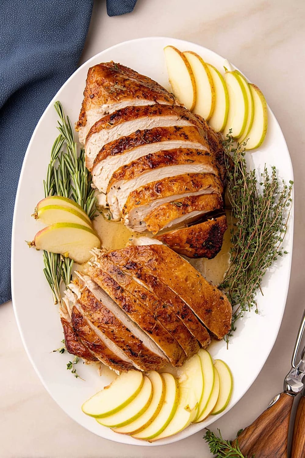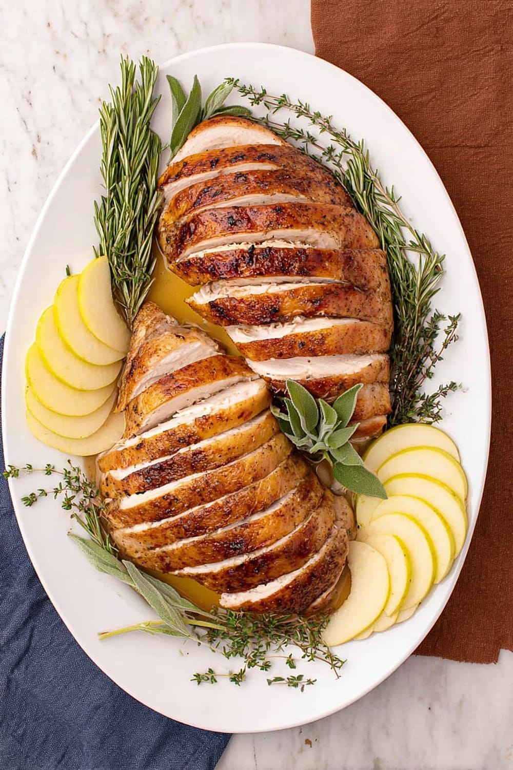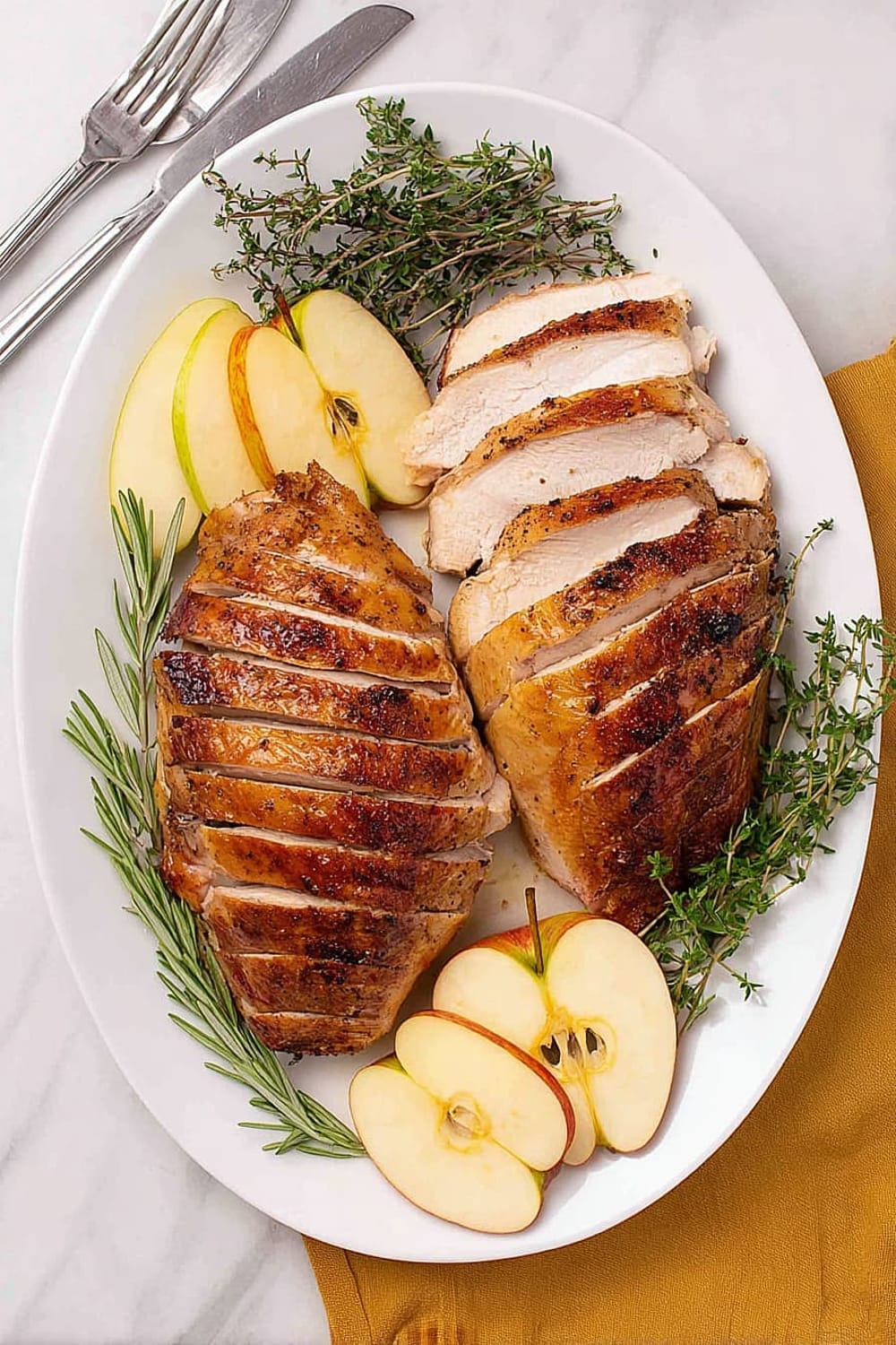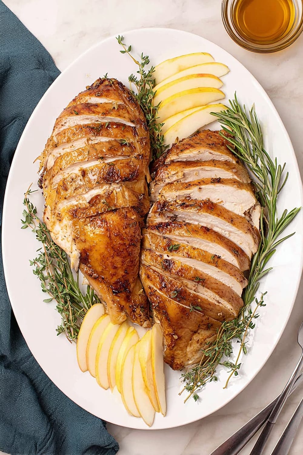 The aromatic spices and apple cider flavors in this turkey pair beautifully with medium-bodied white wines like Chardonnay or Viognier, which complement the herb butter without overwhelming the delicate turkey flavor. For red wine lovers, a light Pinot Noir or Beaujolais works wonderfully with the warm spice profile. Craft beer enthusiasts should try a Belgian witbier or amber ale that echoes the apple and spice notes. Non-alcoholic options include sparkling apple cider, cranberry juice mixed with ginger ale, or herbal teas like chamomile or sage.