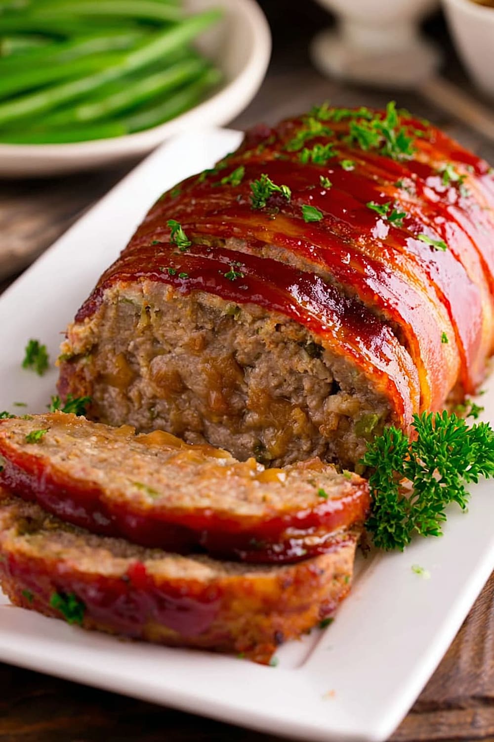 Start with a simple mixed greens salad with balsamic vinaigrette to awaken the palate, then serve the meatloaf with garlic mashed potatoes and honey-glazed carrots. For dessert, apple crisp or vanilla ice cream provides a sweet, comforting finish that matches the homestyle theme. This combination creates a restaurant-quality meal that feels both elegant and comforting.
