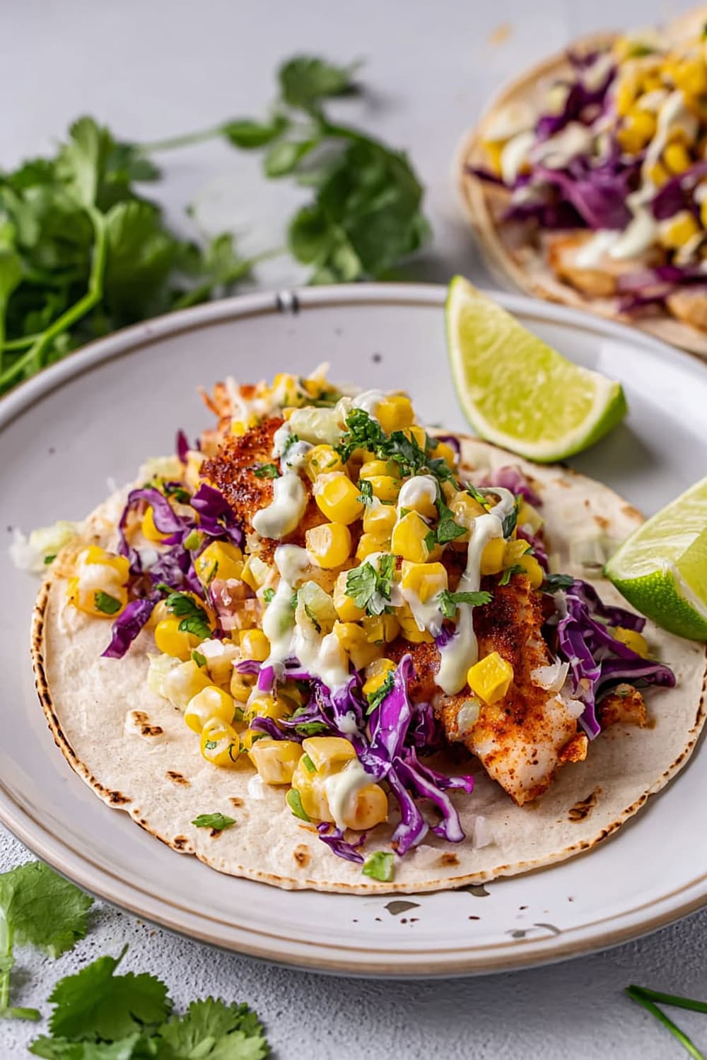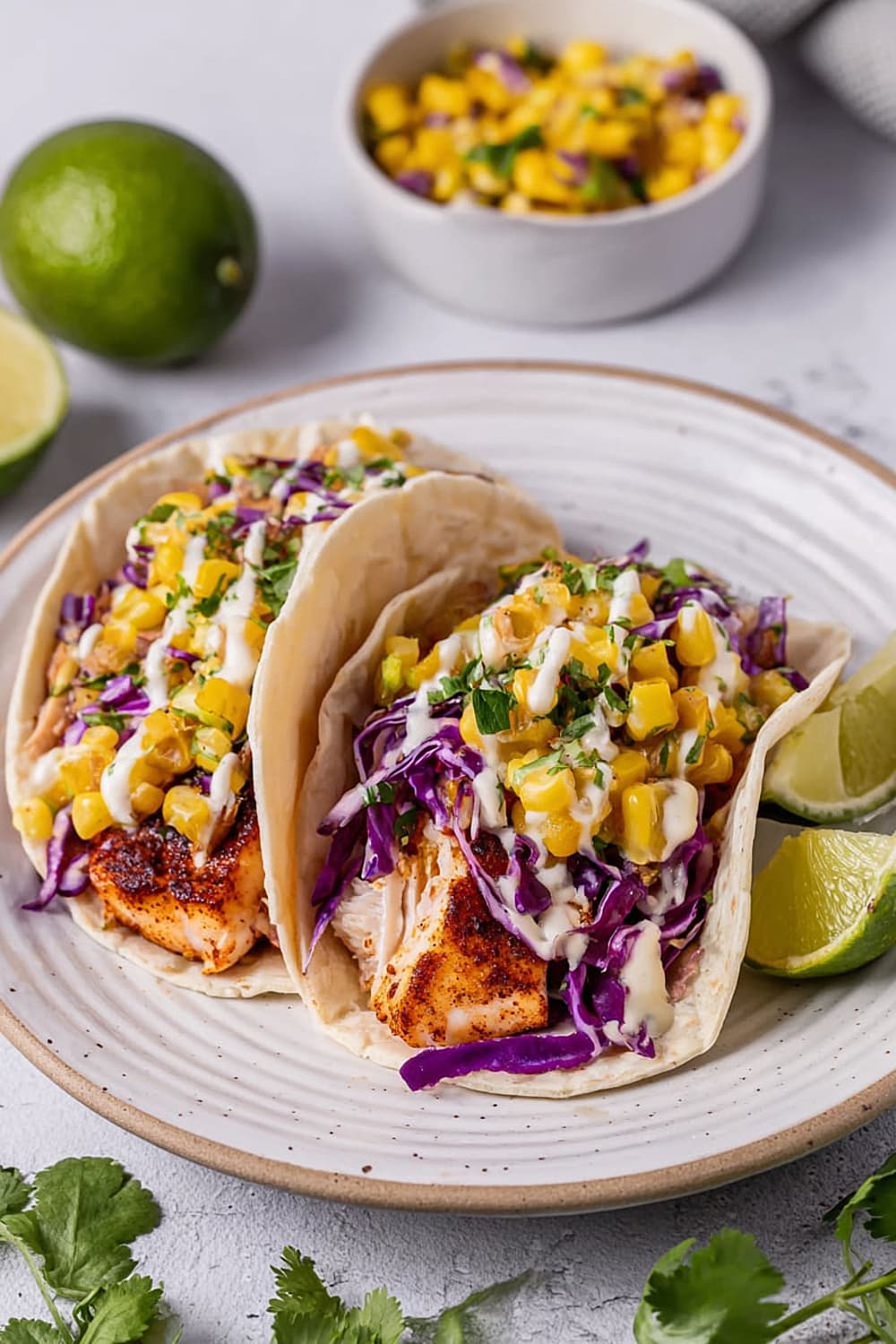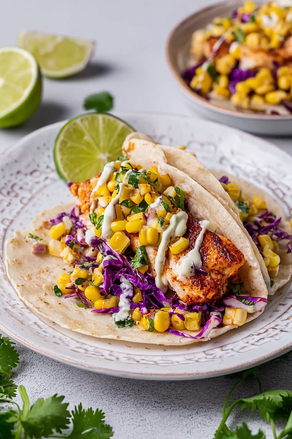 Mexican street corn (elote) adds creamy richness that balances the fish’s smoky heat, while black bean and quinoa salad provides plant-based protein and fiber. Jicama slaw offers additional crunch and cooling properties, and cilantro lime rice makes this into a more substantial meal. Grilled vegetables like zucchini, bell peppers, or asparagus add color and nutrients without competing flavors.