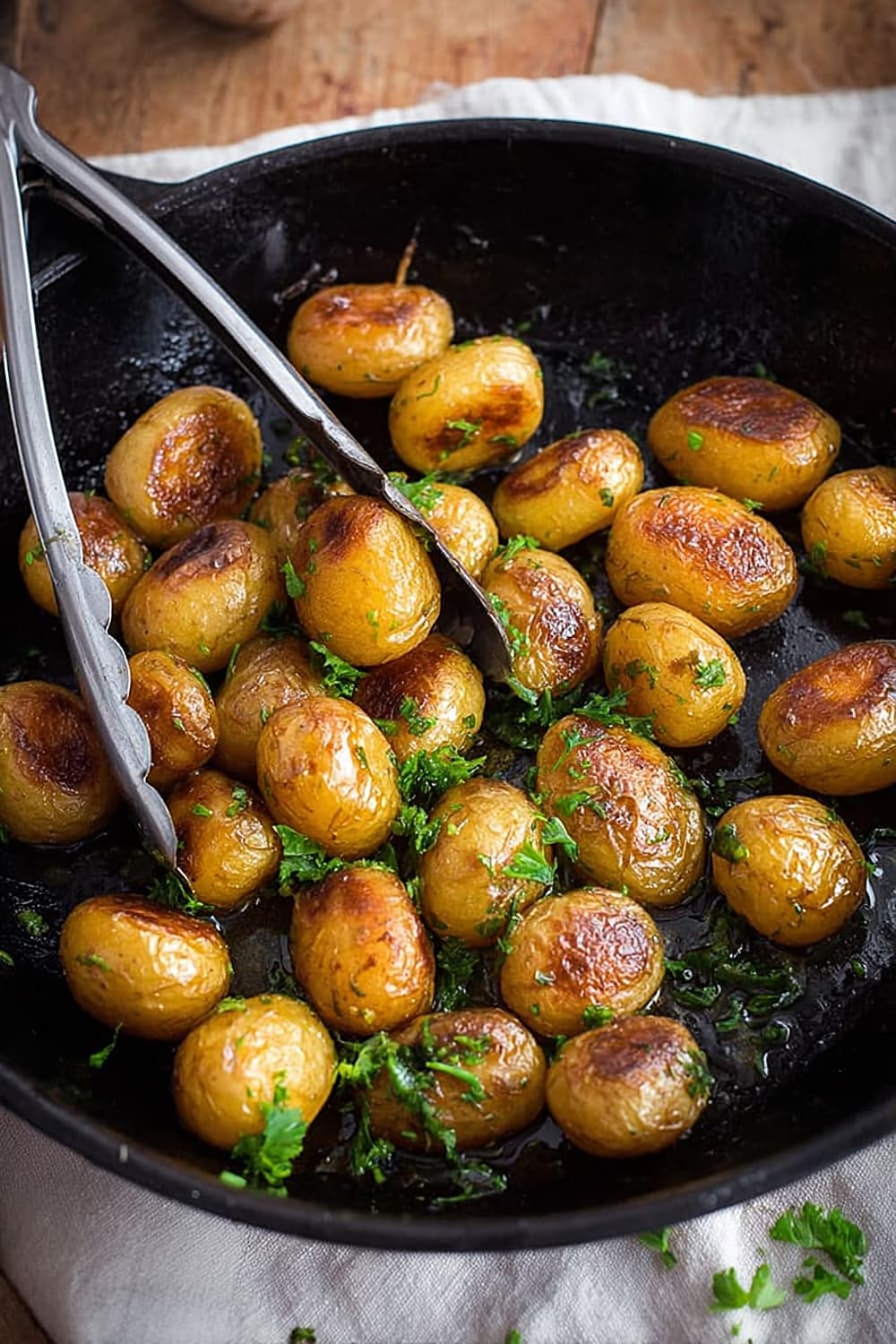 These potatoes shine alongside roasted chicken thighs, pan-seared salmon, or grilled lamb chops. The rich, buttery flavor pairs excellently with steamed asparagus, sautéed green beans, or a fresh arugula salad with lemon vinaigrette. For vegetarian meals, serve with roasted portobello mushrooms or grilled halloumi cheese.