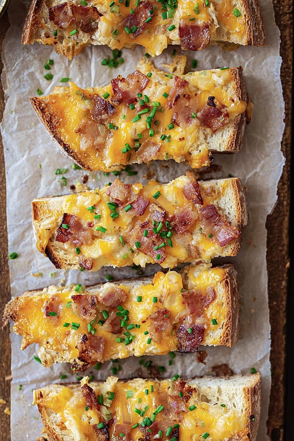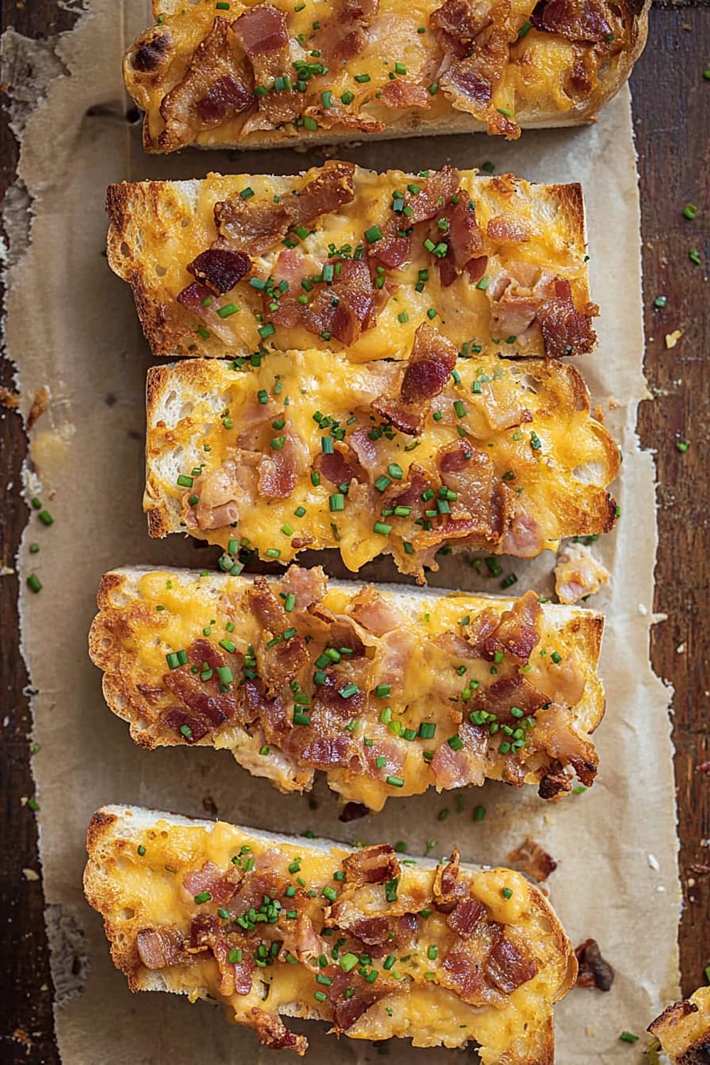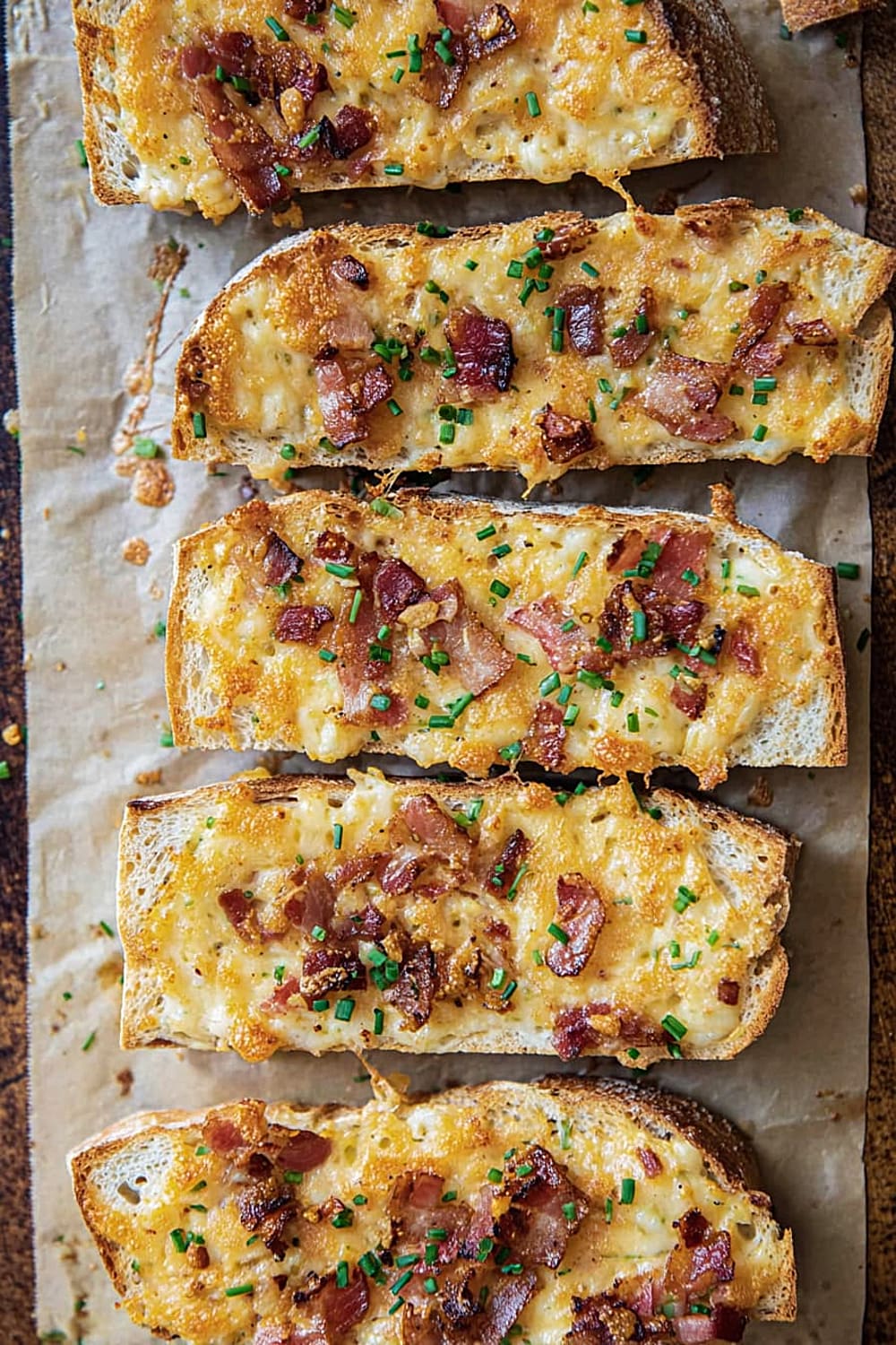 Picture this: crispy French bread topped with a creamy ranch-mayo mixture, loaded with melted cheddar cheese and crispy bacon bits, then baked until golden and bubbly.