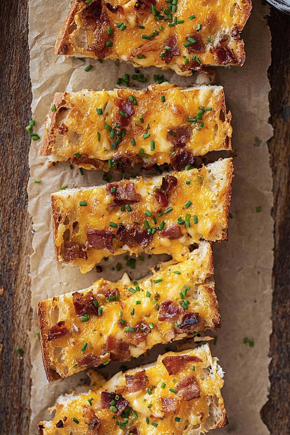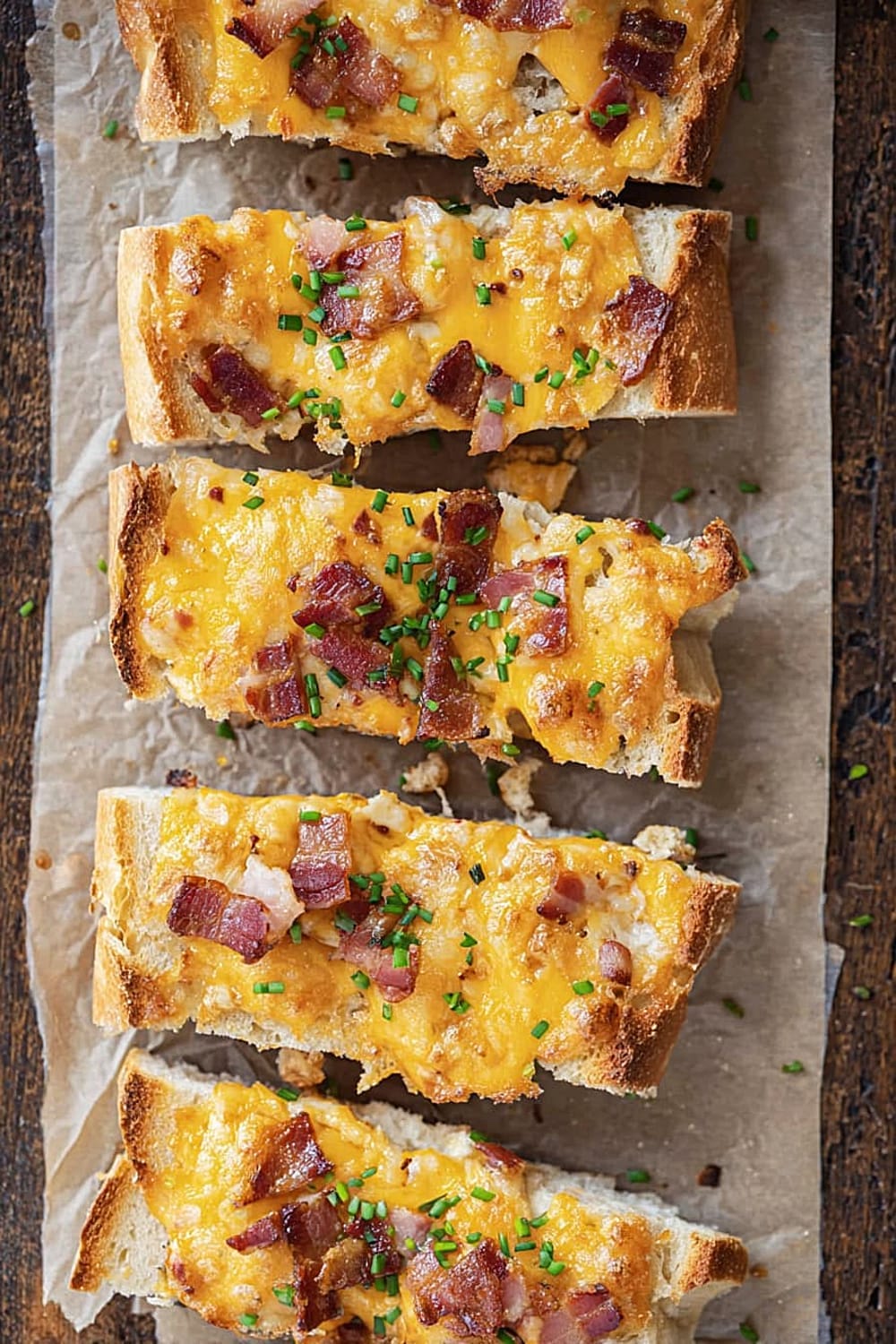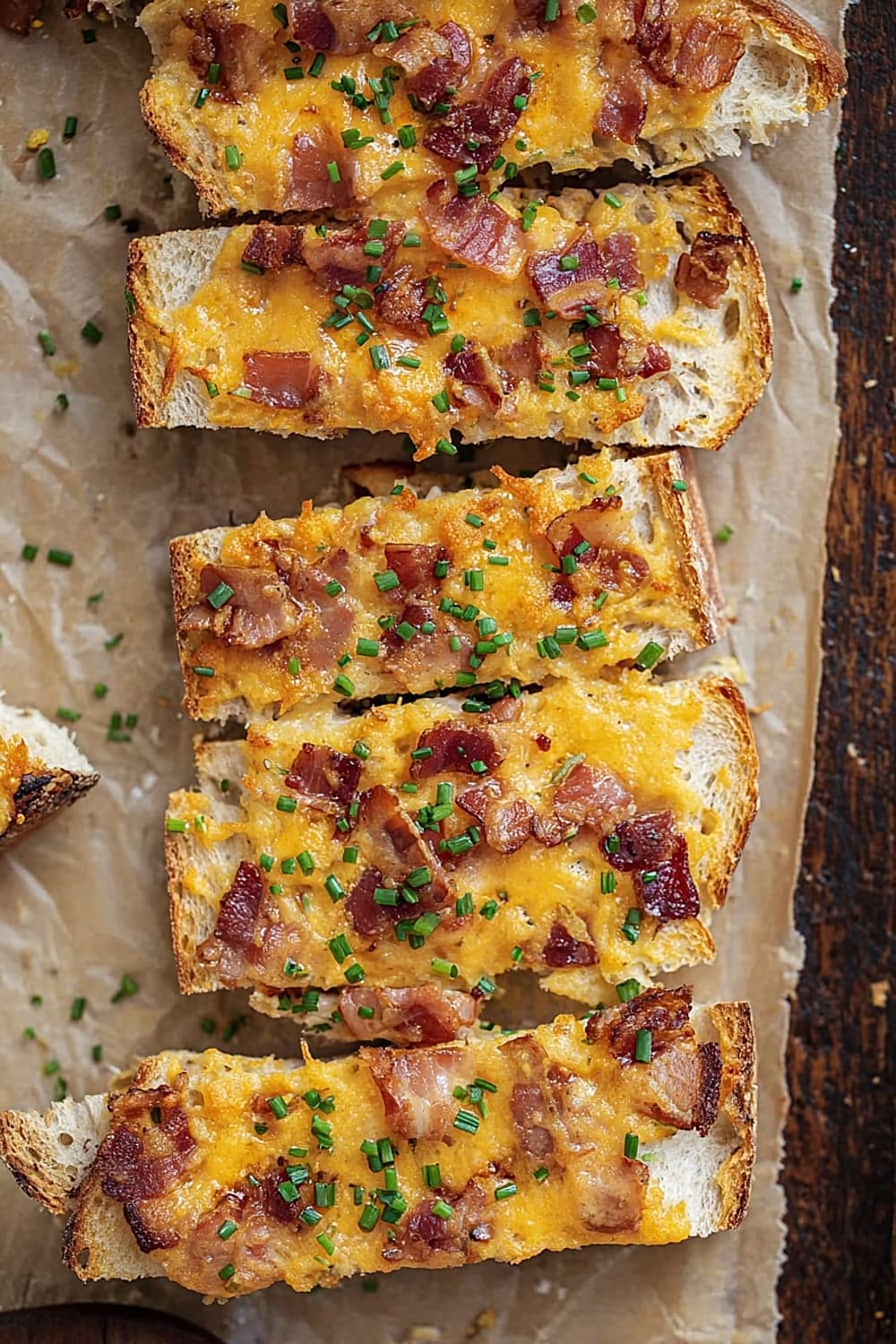 Picture this: crispy French bread topped with a creamy ranch-mayo mixture, loaded with melted cheddar cheese and crispy bacon bits, then baked until golden and bubbly.