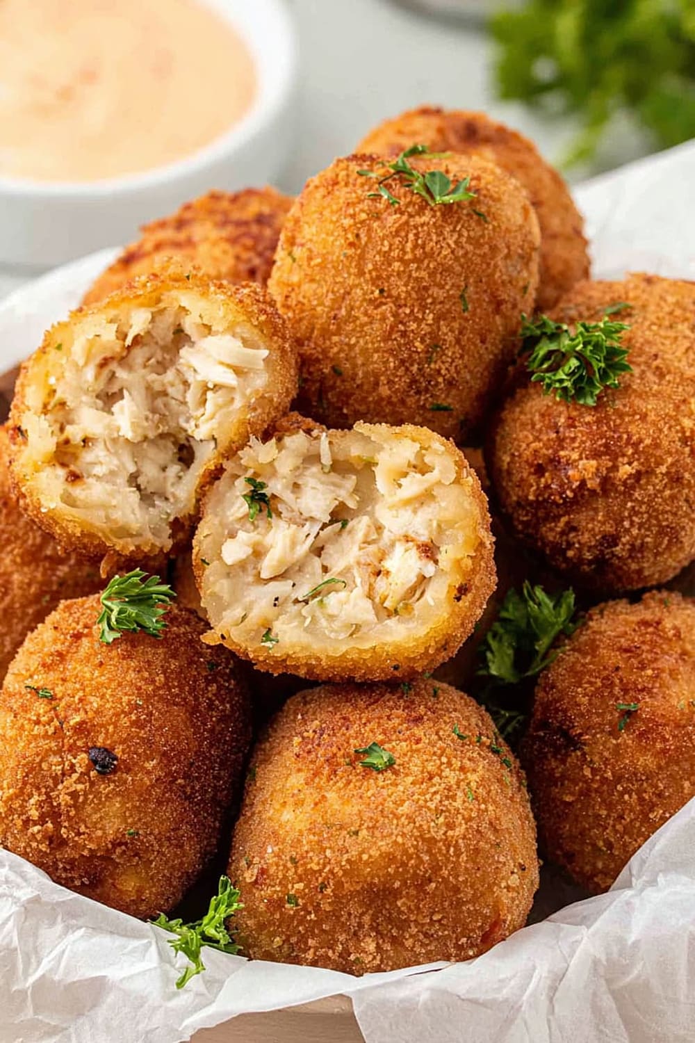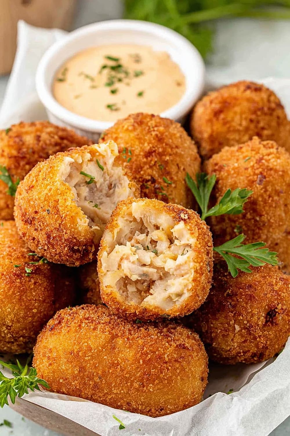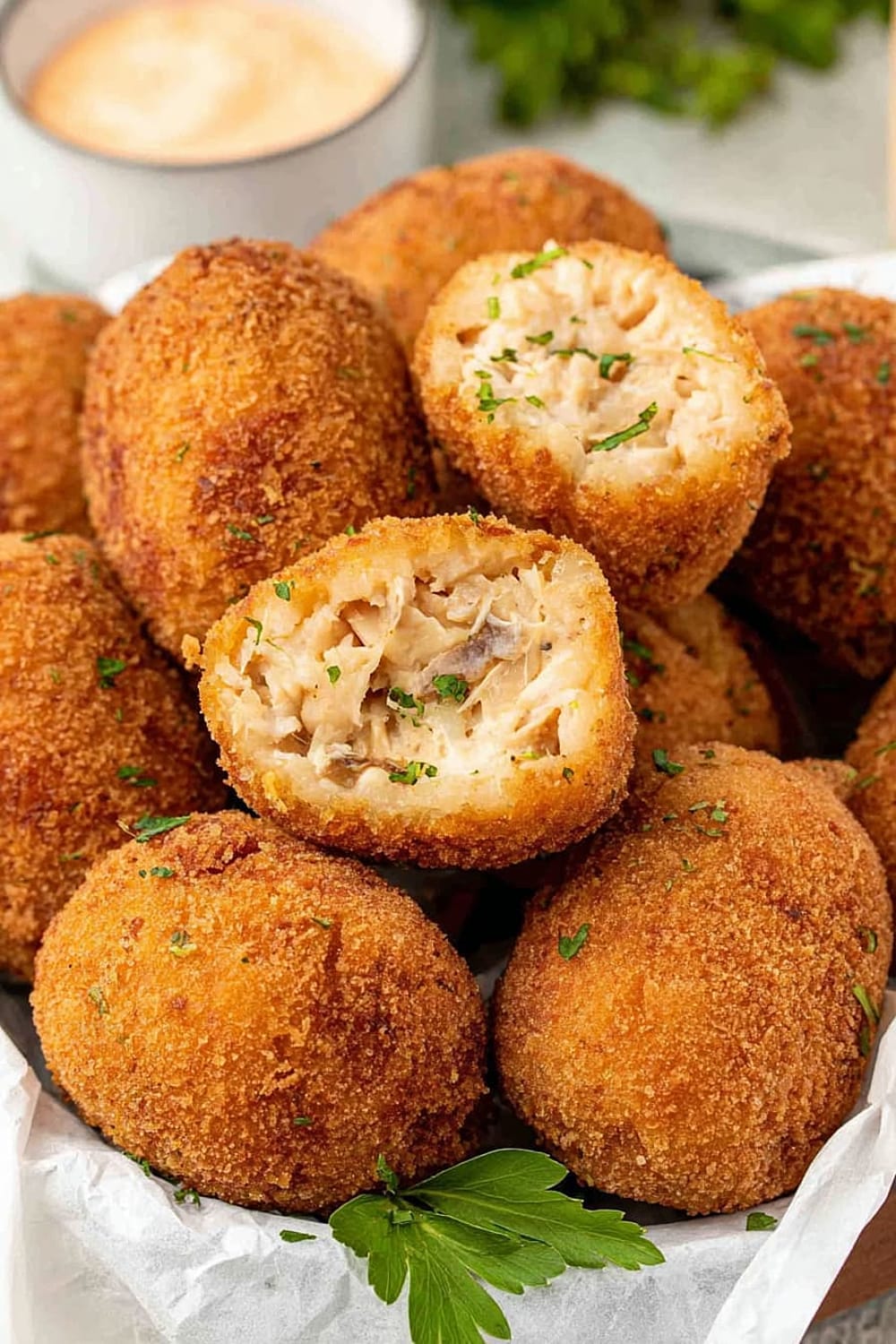 Each croquette packs serious flavor with aromatic thyme, garlic, and green onions, all bound together in a silky sauce that’s pure comfort in every bite.