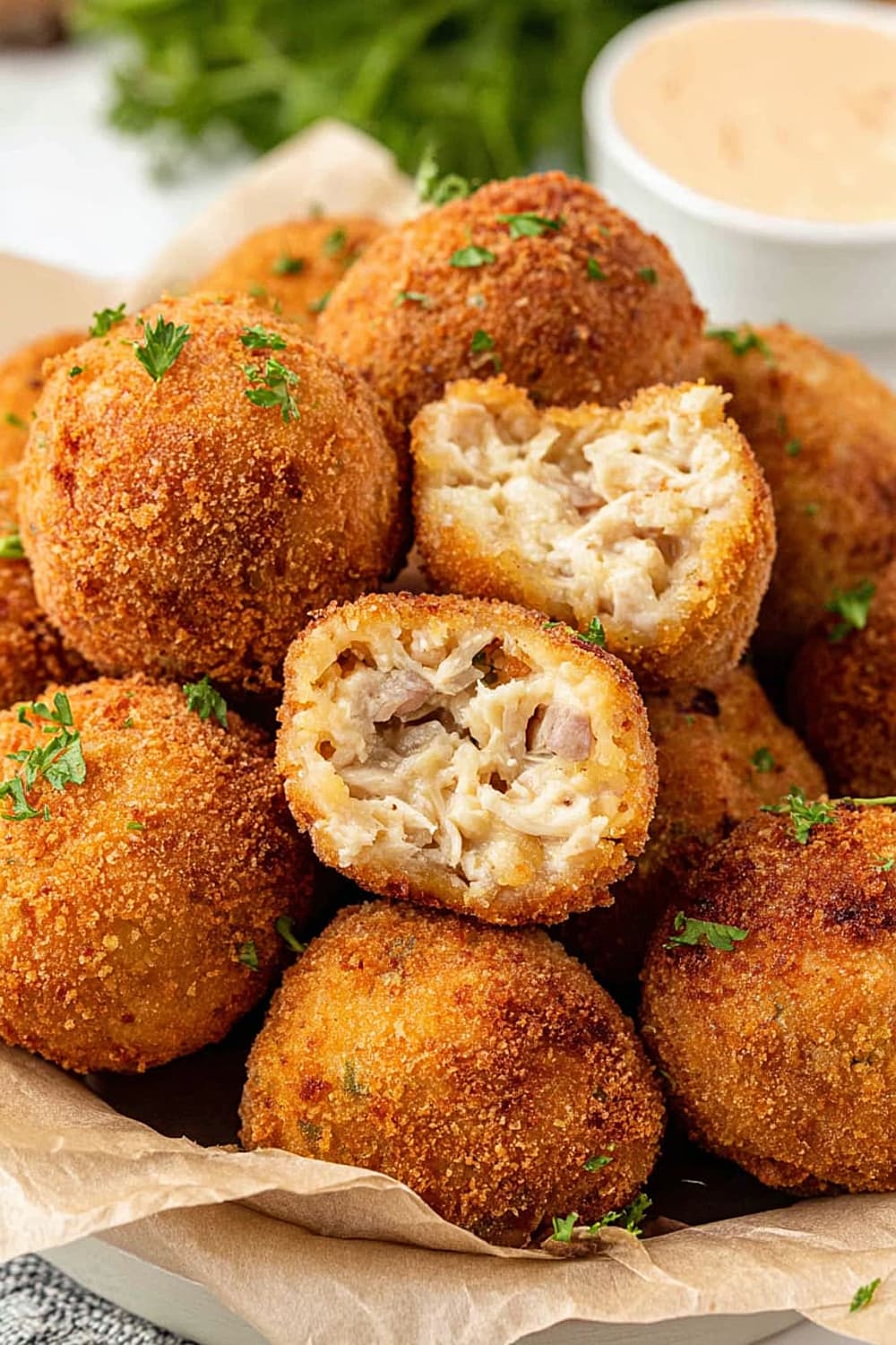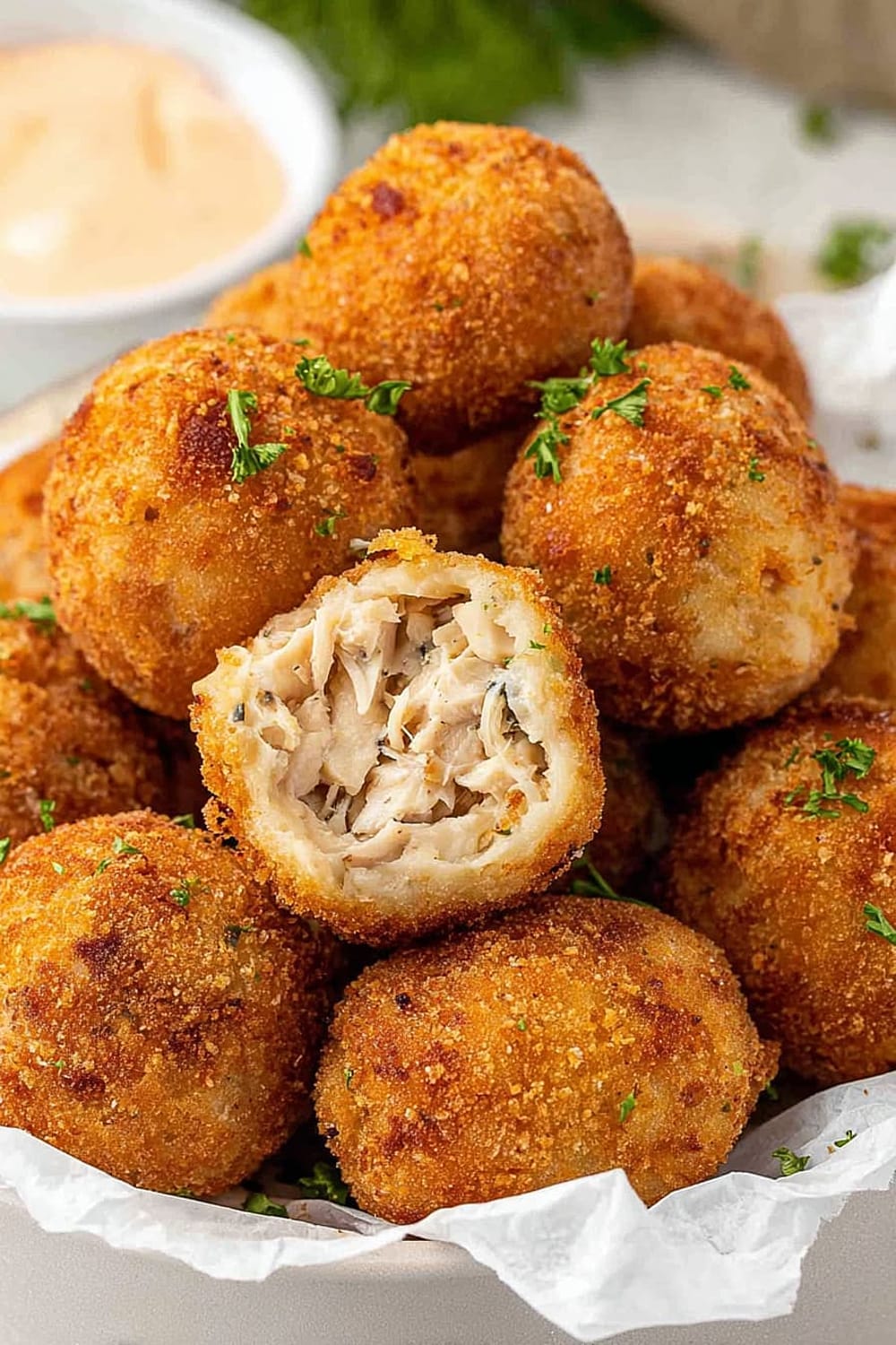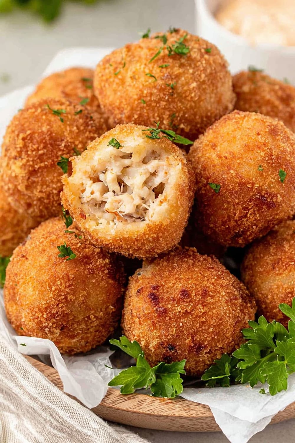 Each croquette packs serious flavor with aromatic thyme, garlic, and green onions, all bound together in a silky sauce that’s pure comfort in every bite.