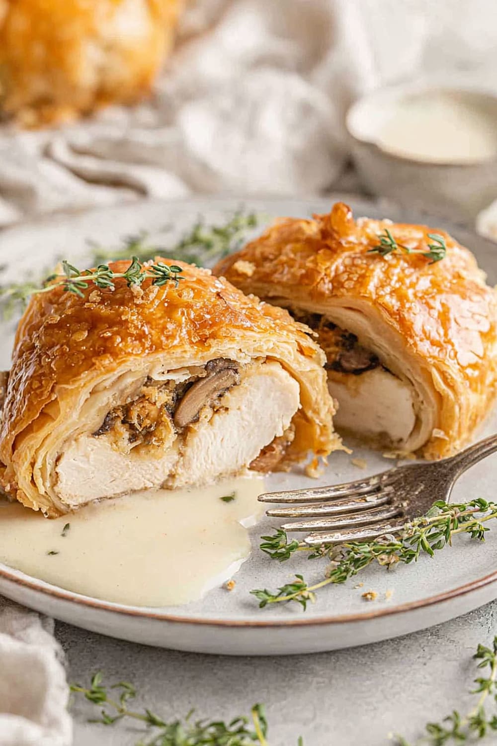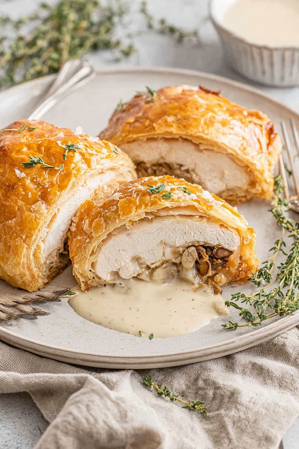 Picture this: flaky, golden puff pastry crackling under your fork to reveal perfectly seasoned chicken breast nestled in a savory mushroom duxelles that’s been cooked down to concentrated umami perfection.