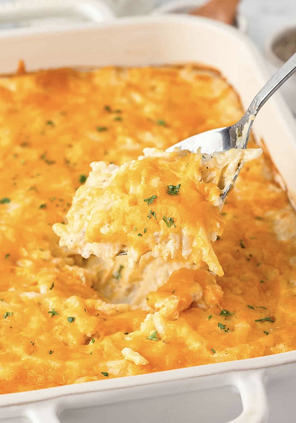 The secret lies in the perfect balance of cream of chicken soup and sour cream, creating that signature creamy texture while the cheese melts into golden, bubbly perfection on top.