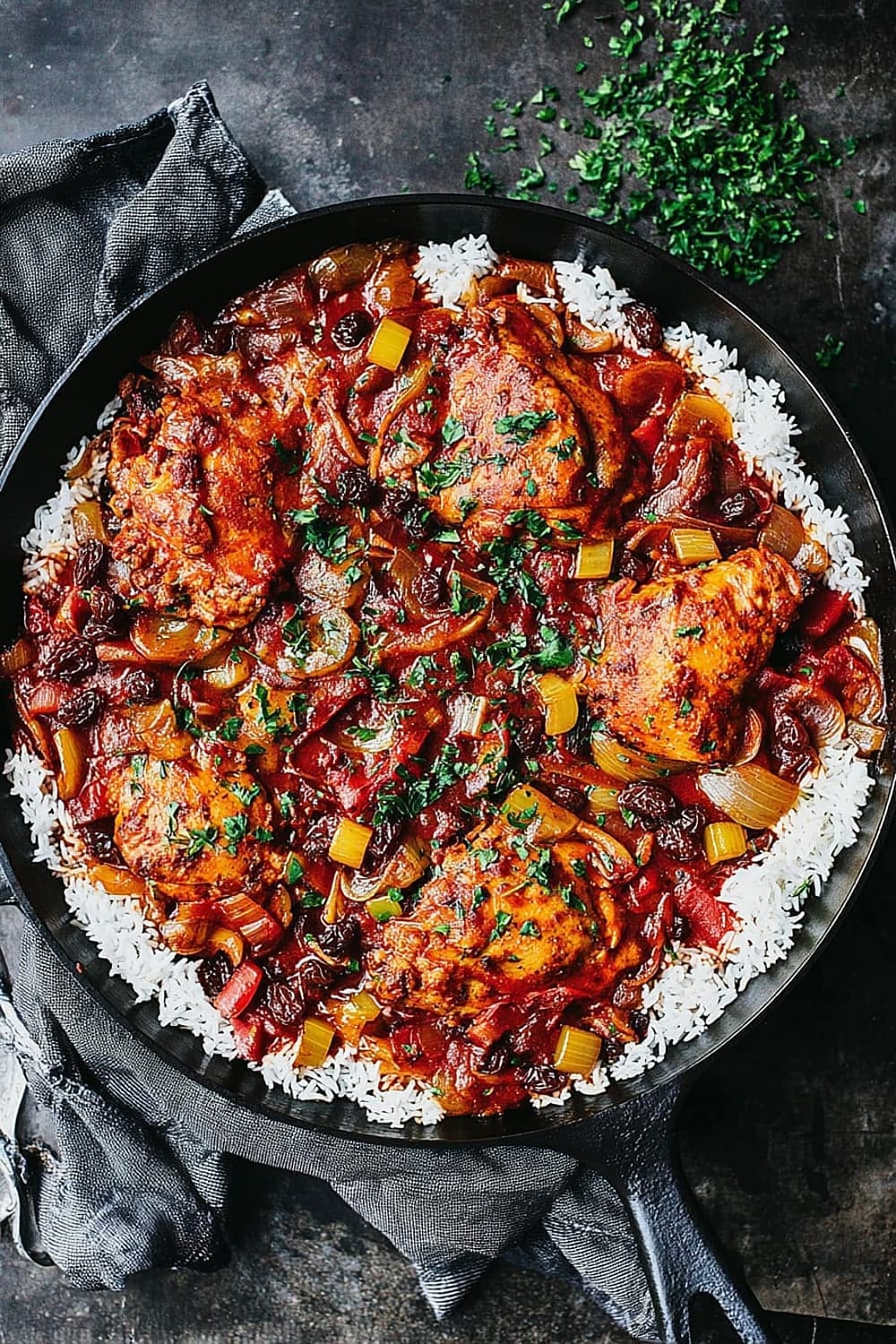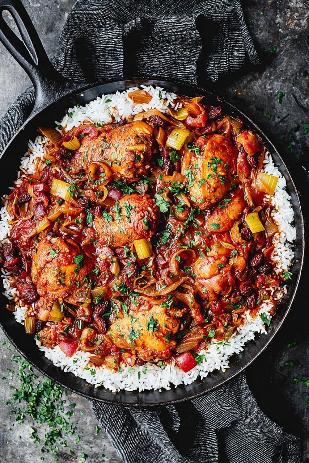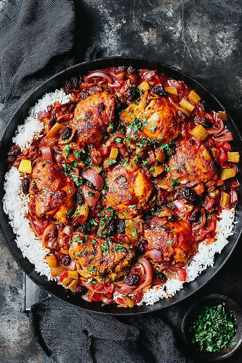 Start with a light arugula salad with citrus vinaigrette to cleanse the palate, then follow with the Country Captain’s Chicken as your centerpiece. For dessert, coconut rice pudding or spiced poached pears continue the warm spice theme without overwhelming. This creates a cohesive menu that flows from light and fresh to rich and satisfying.