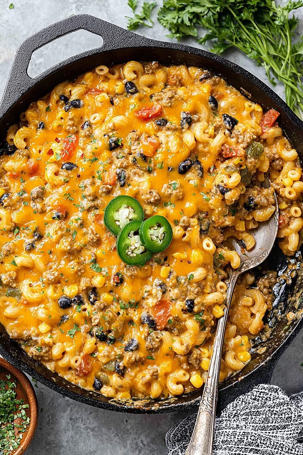 Every forkful delivers the perfect balance of creamy, cheesy comfort with just enough heat from the jalapeños and chili powder to keep things interesting without overwhelming your palate.