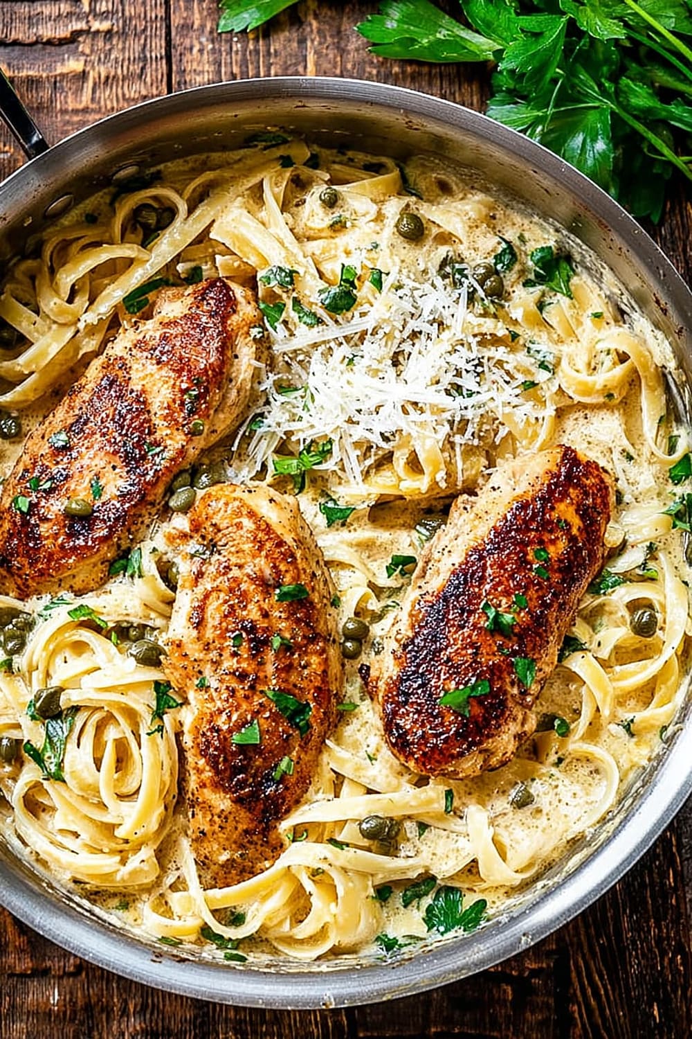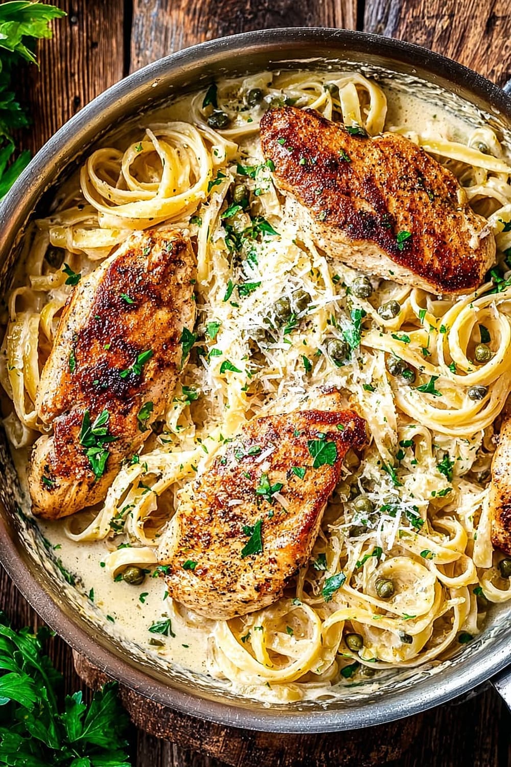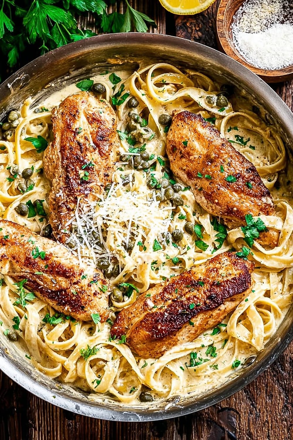 Creamy Lemon Chicken Piccata Fettuccine
