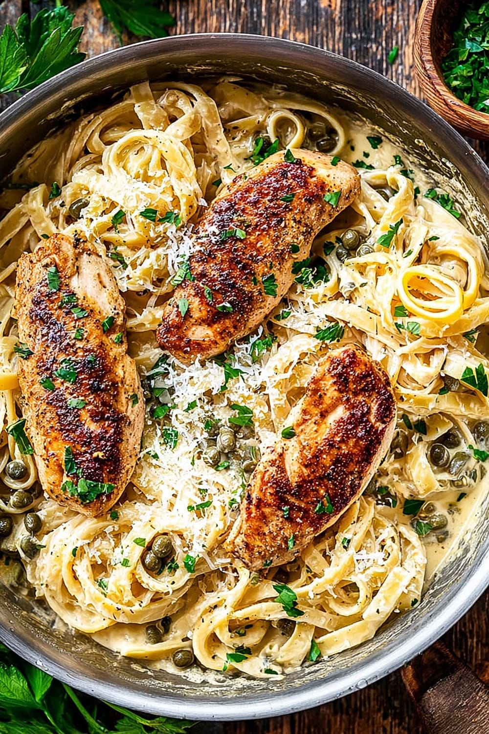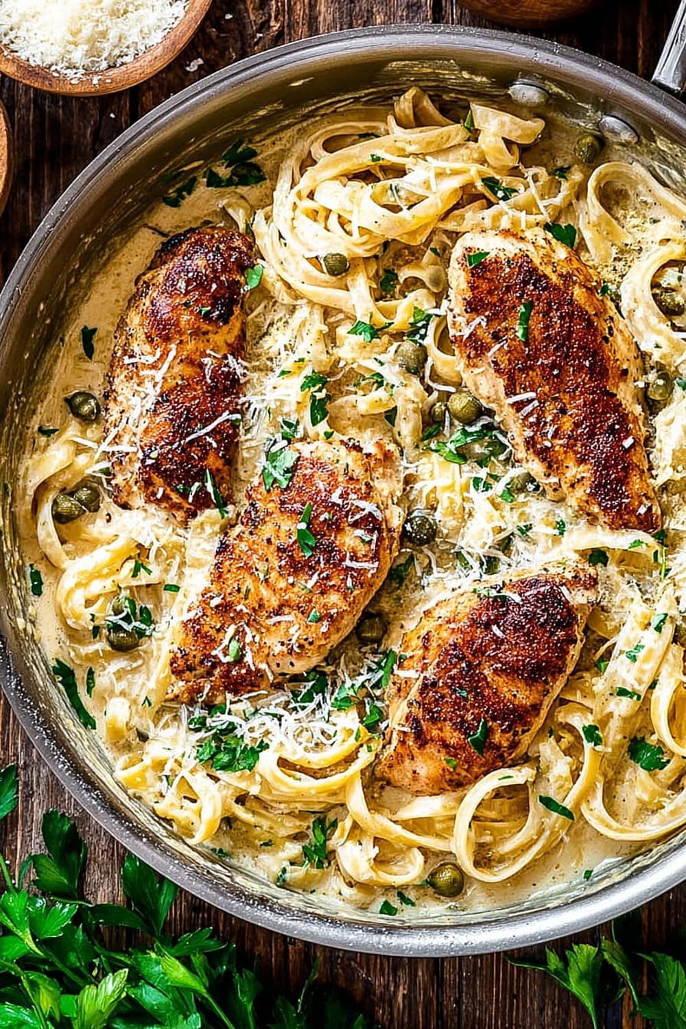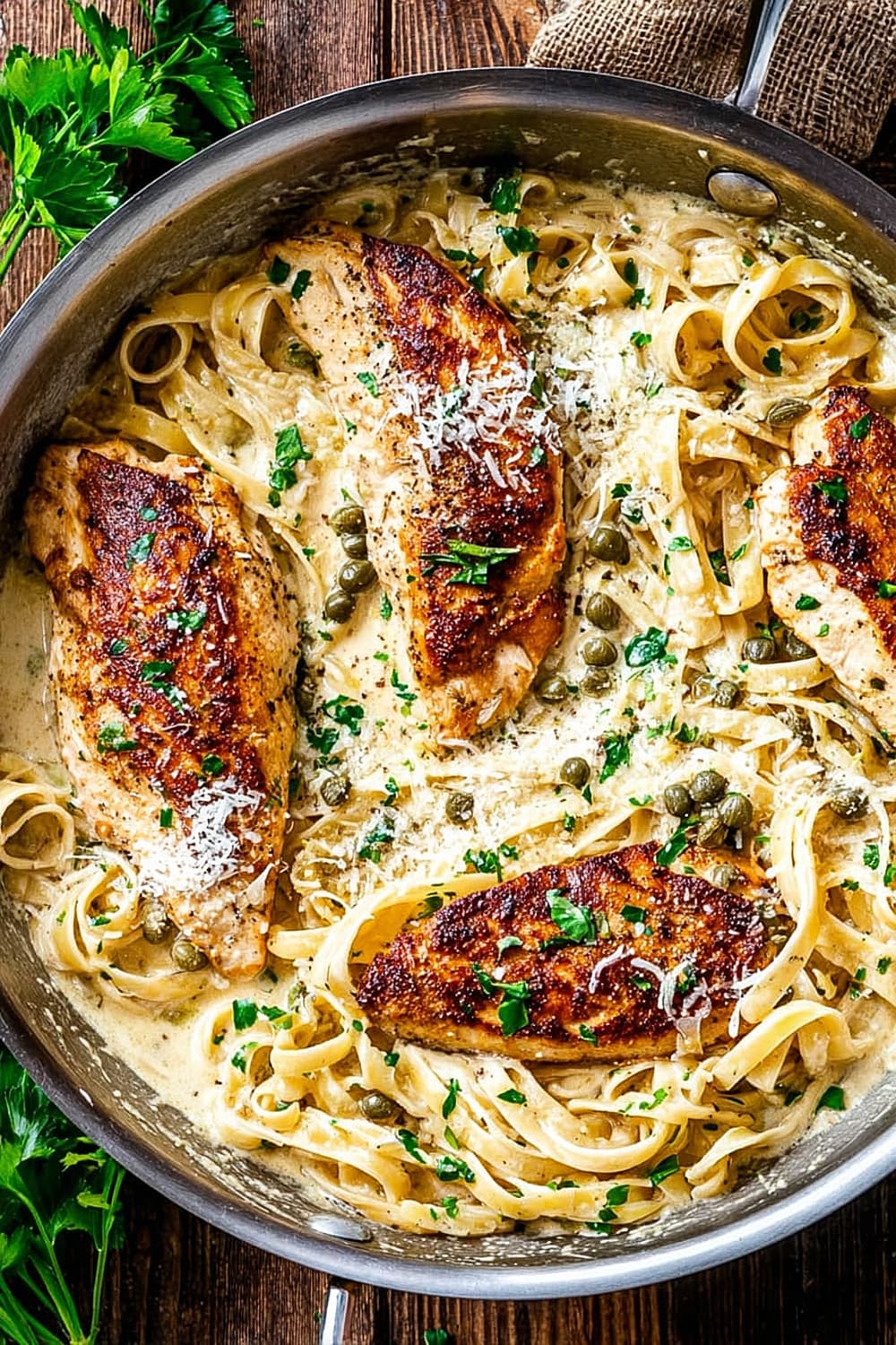 Creamy Lemon Chicken Piccata Fettuccine