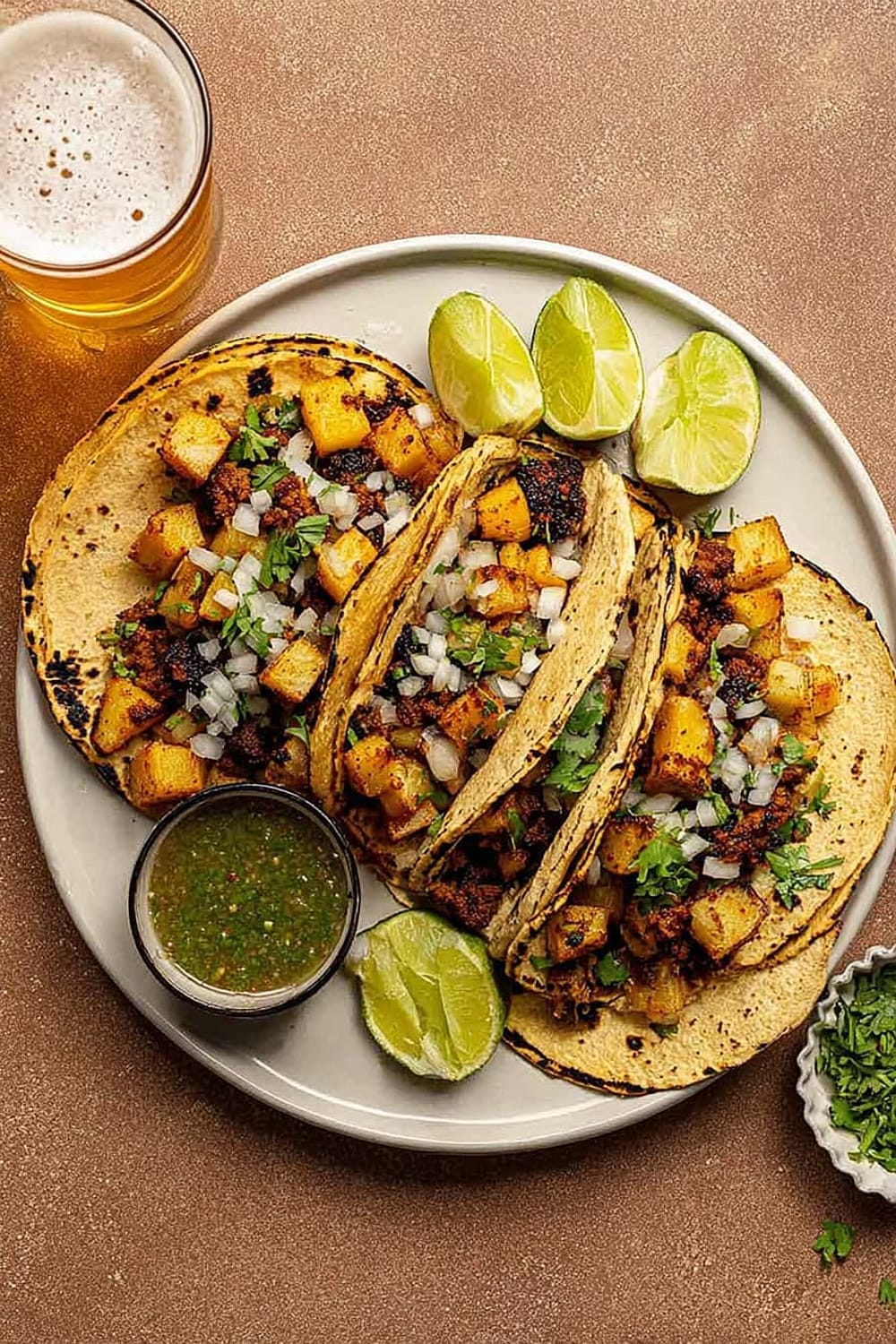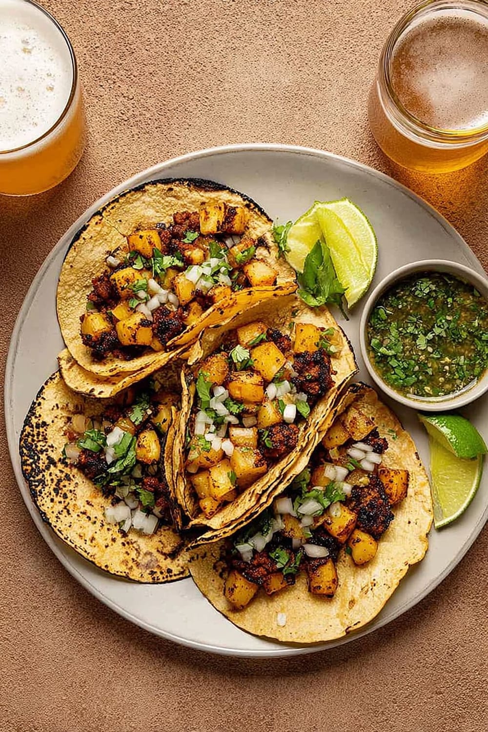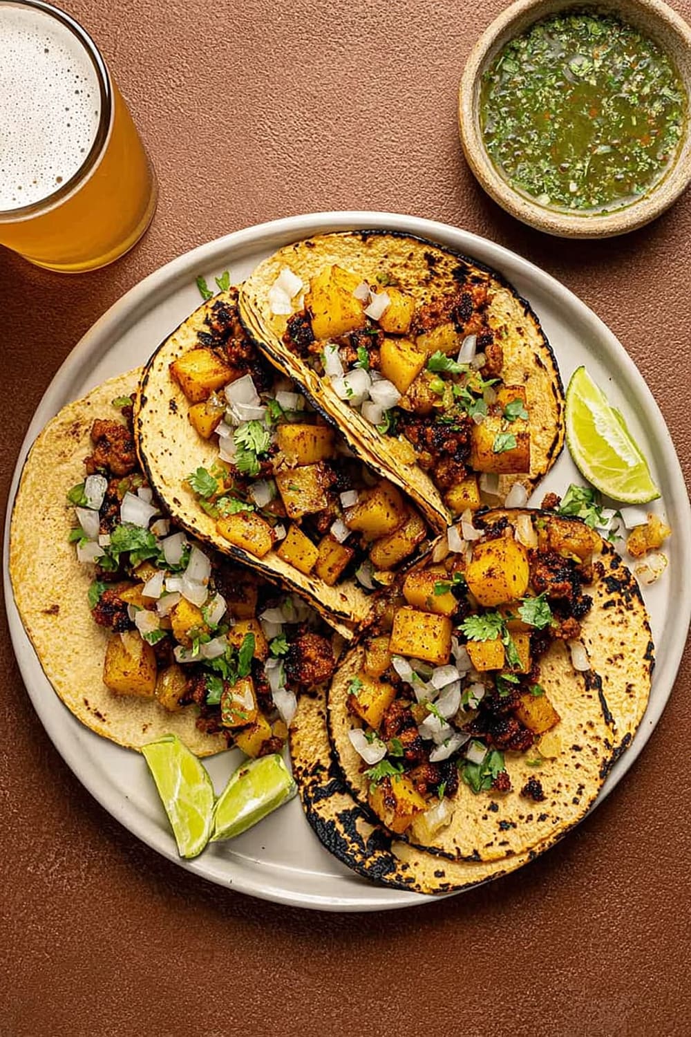 Mexican lagers like Corona or Dos Equis complement the spicy chorizo beautifully, while their crisp, clean finish cuts through the richness of the potatoes. For wine lovers, a Spanish Tempranillo or Garnacha pairs wonderfully with chorizo’s smoky spices. Non-alcoholic options include horchata, which provides creamy coolness, or fresh lime agua fresca to enhance the citrus notes already present in the dish.