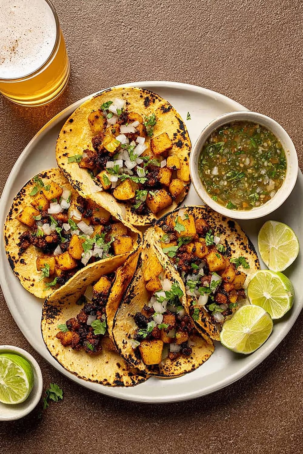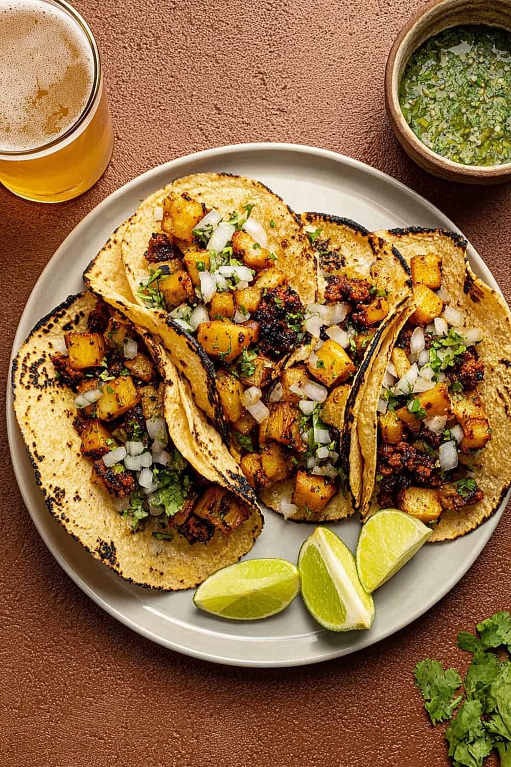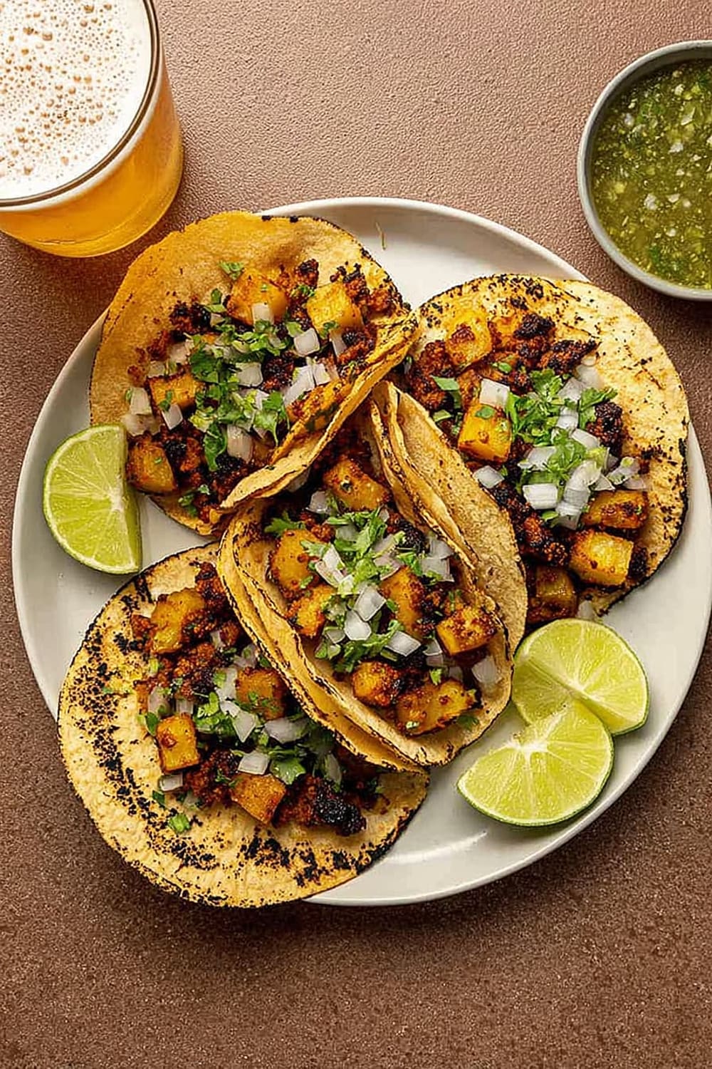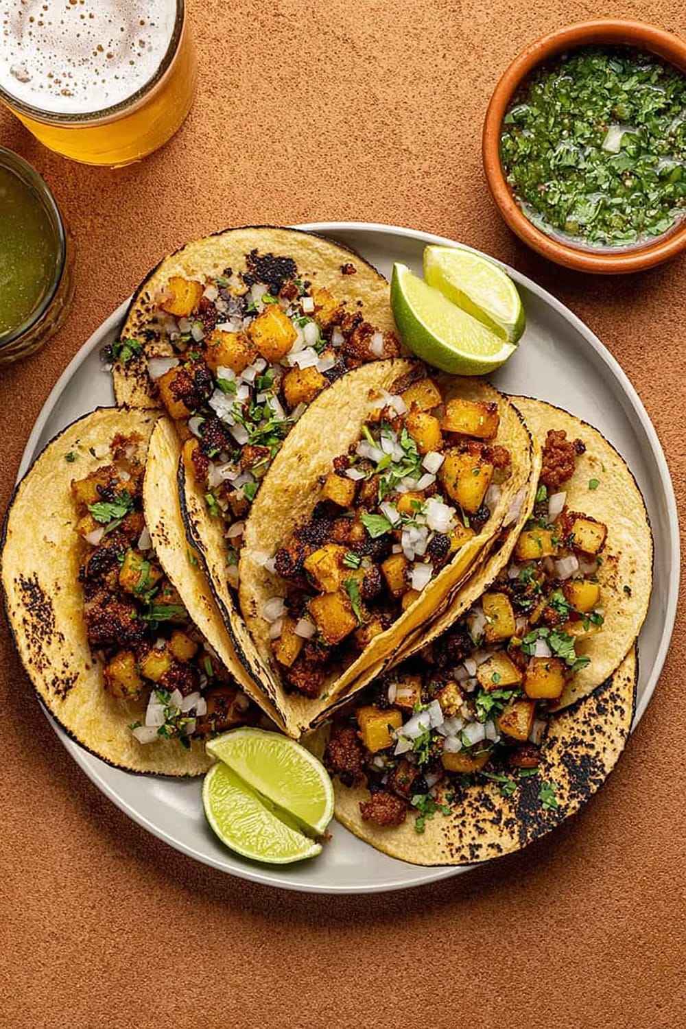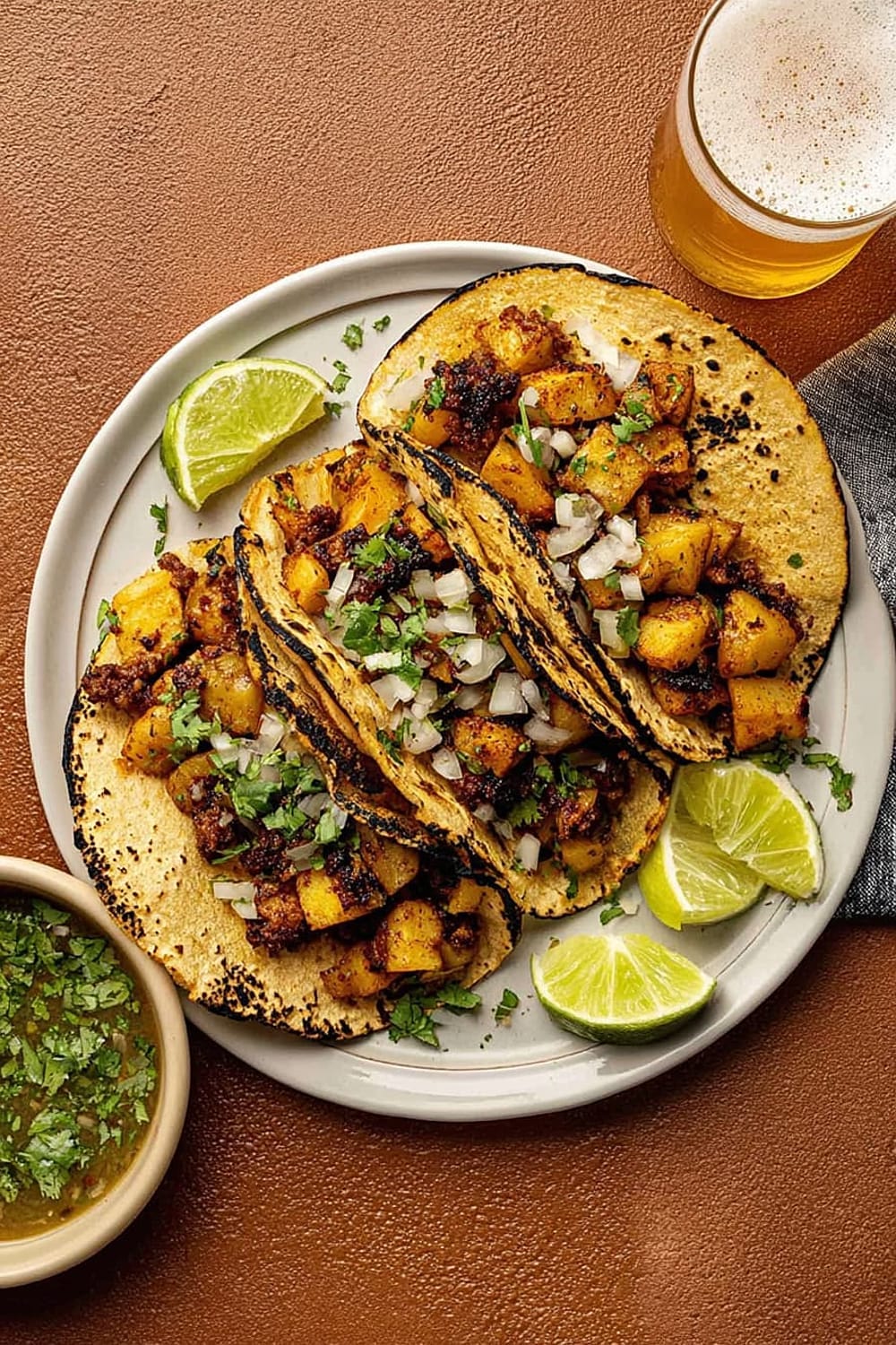 The secret to these incredible tacos lies in the technique – we’re parboiling the potatoes first to get them fluffy inside, then crisping them to golden perfection in a cast iron skillet until they’re absolutely irresistible.