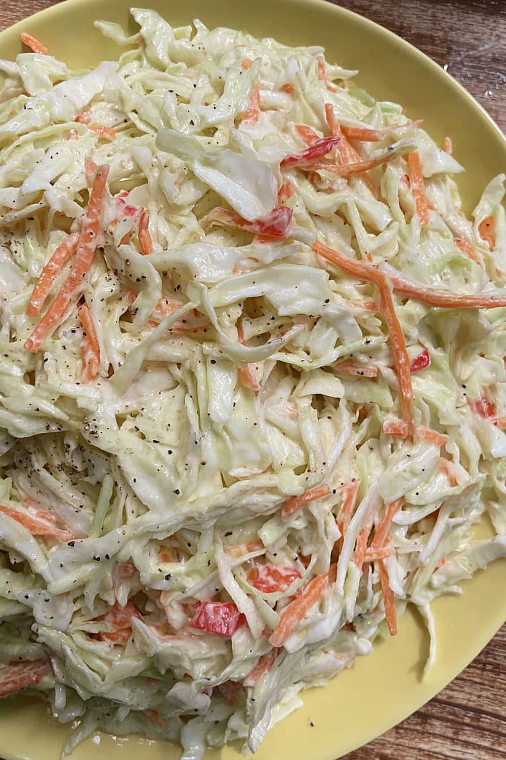 Build a backyard barbecue menu featuring this slaw with smoked ribs, mac and cheese, and watermelon salad. For casual entertaining, pair with fried chicken sandwiches, sweet potato fries, and peach cobbler. The slaw works beautifully in picnic spreads alongside deviled eggs, potato salad, and fresh fruit.