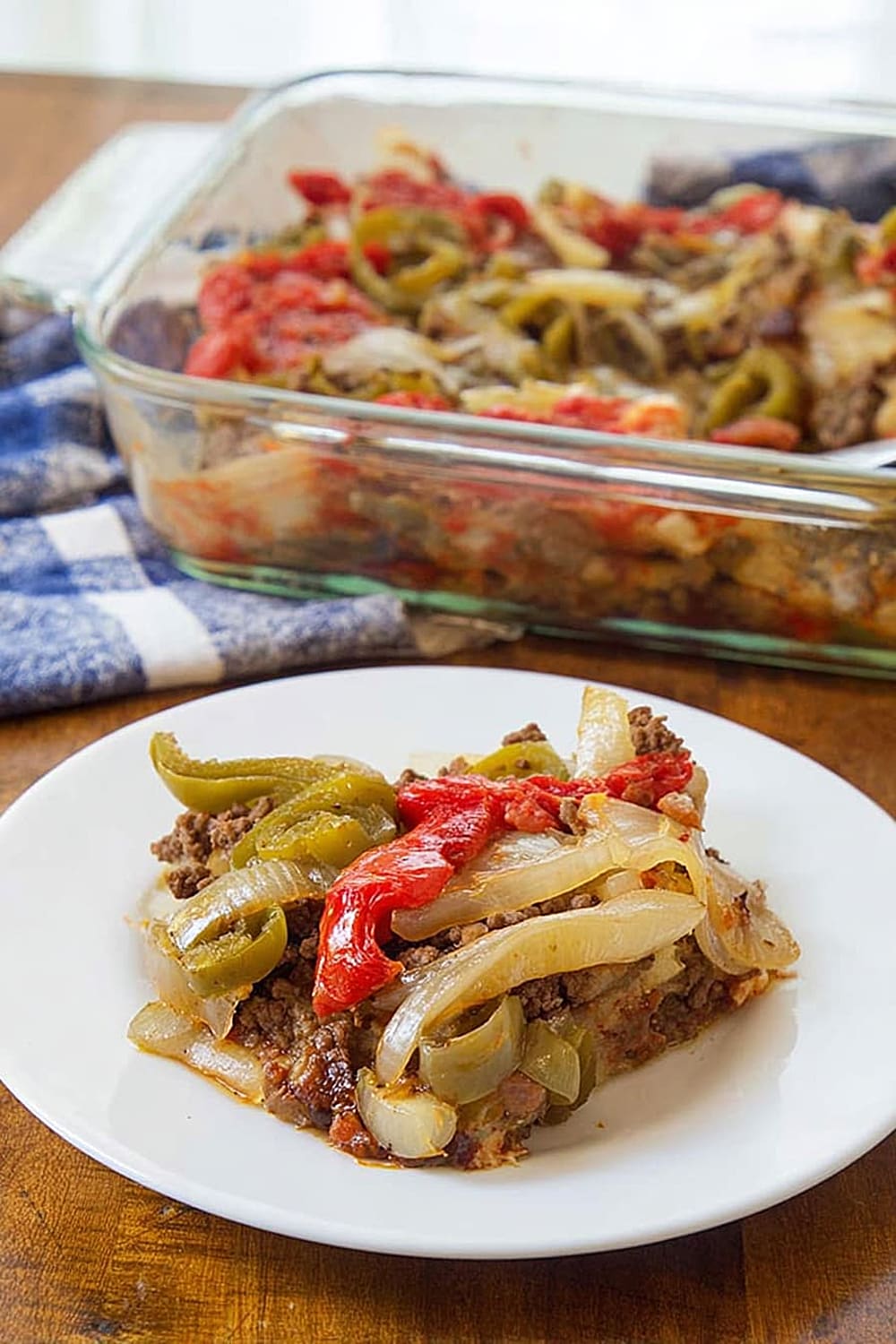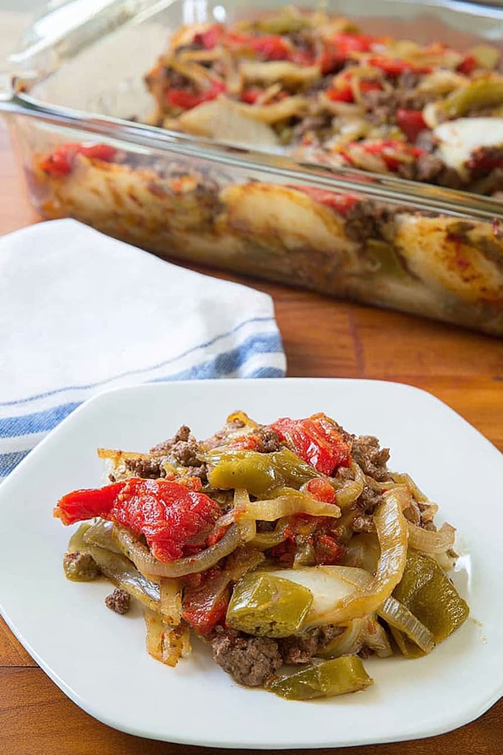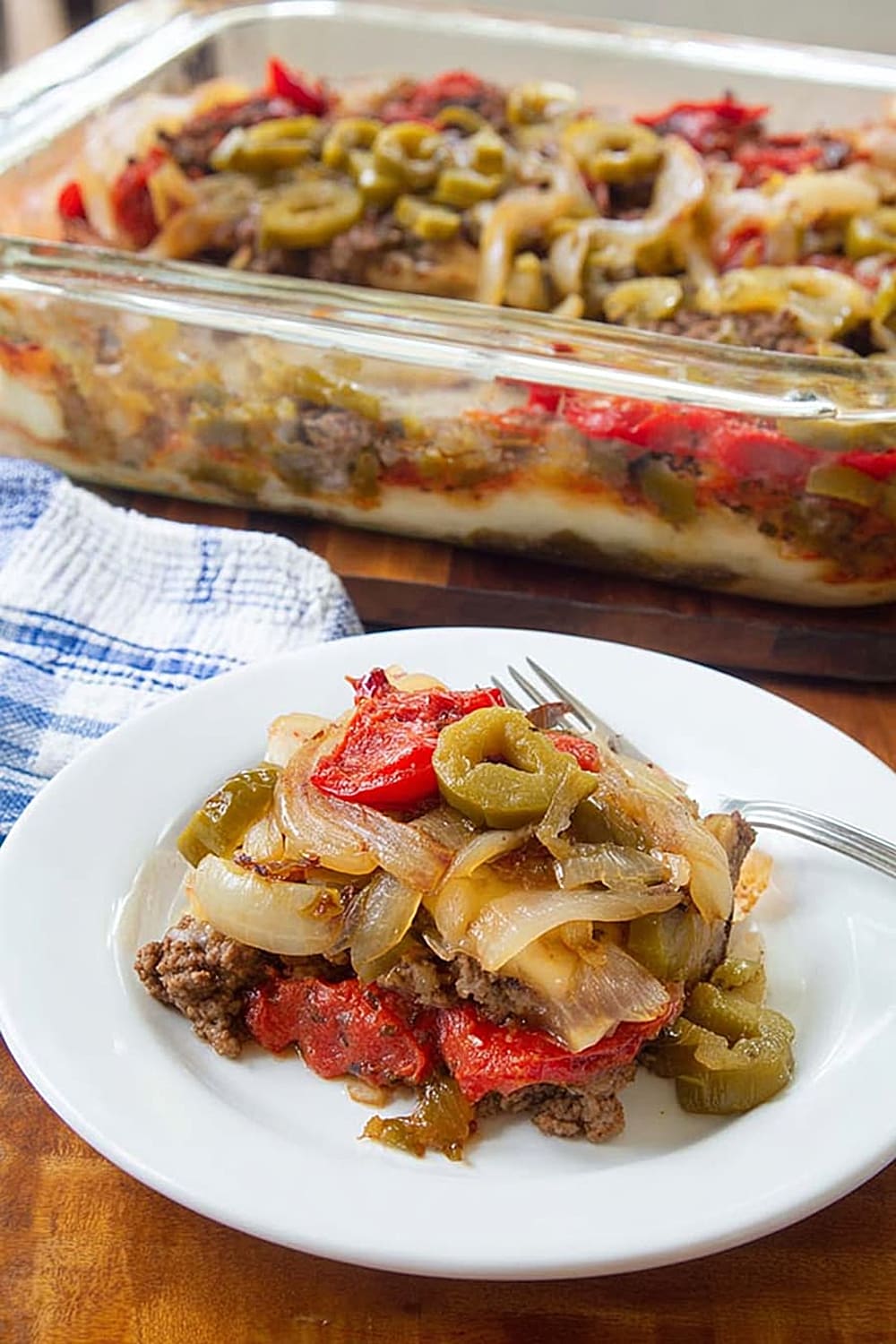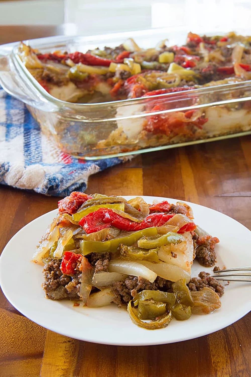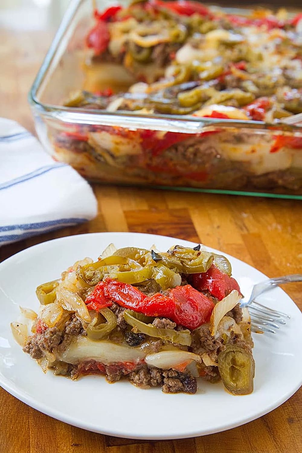 Picture layers of tender russet potatoes, savory ground beef, sweet onions, juicy tomatoes, and crisp bell peppers all mingling together in perfect harmony while your kitchen fills with the most incredible aroma.