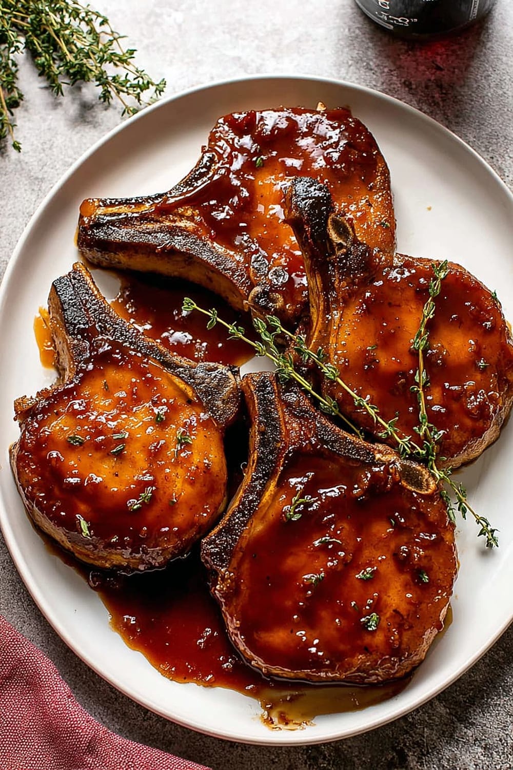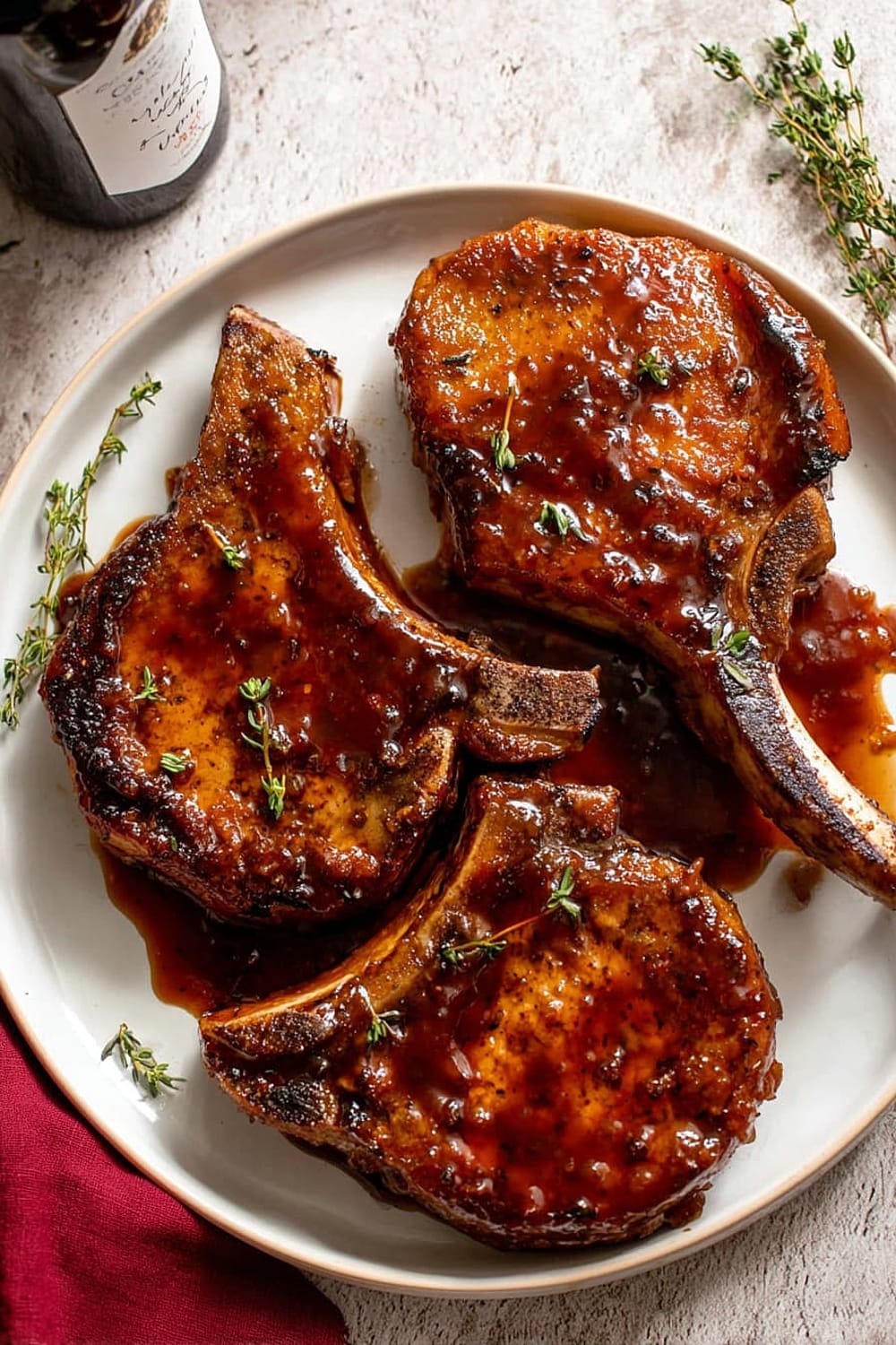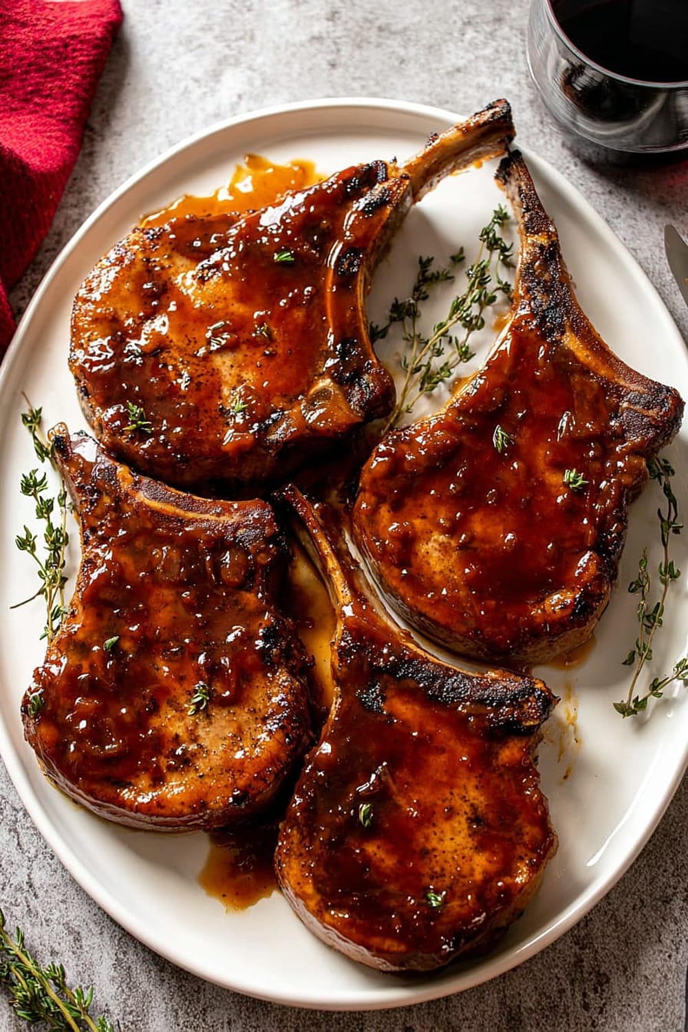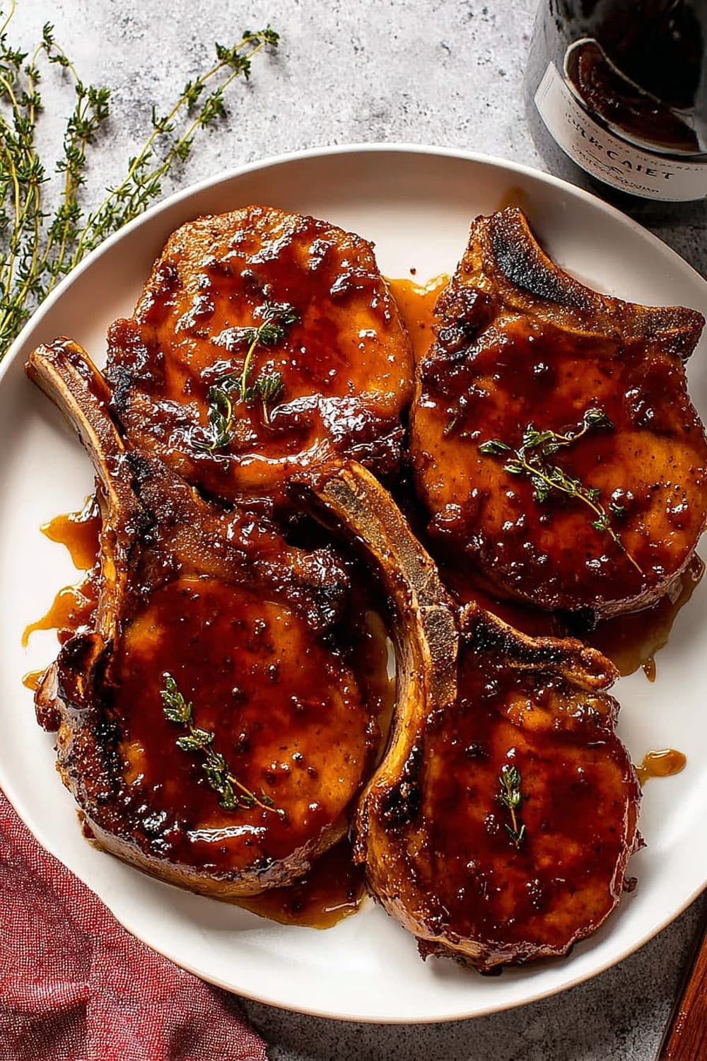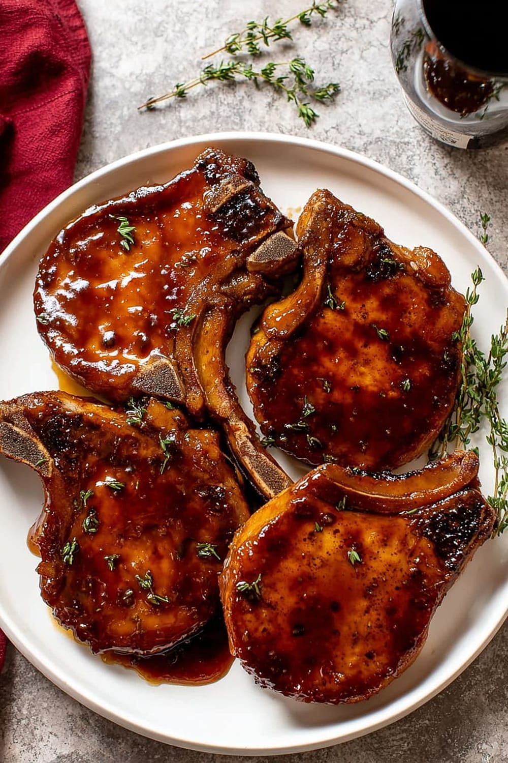 - 13 Cook for an additional 1 minute, allowing the glaze to caramelize slightly and adhere to the pork chops.