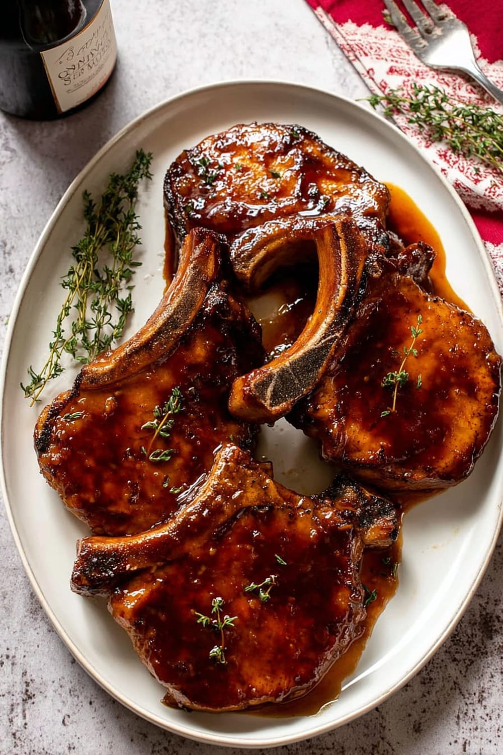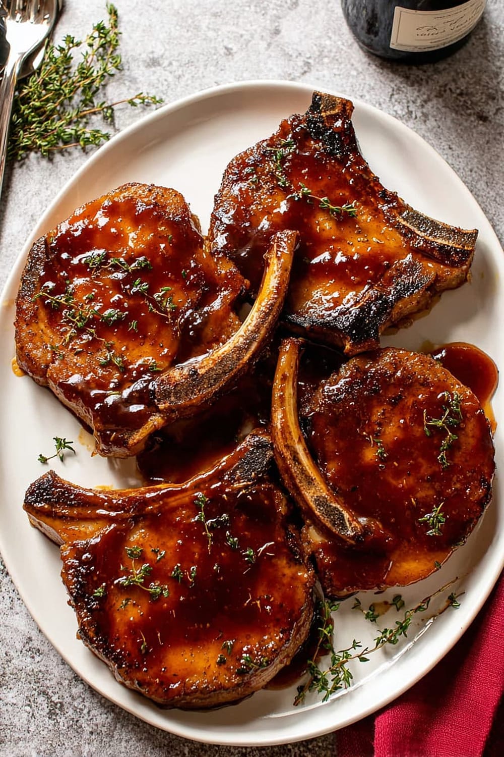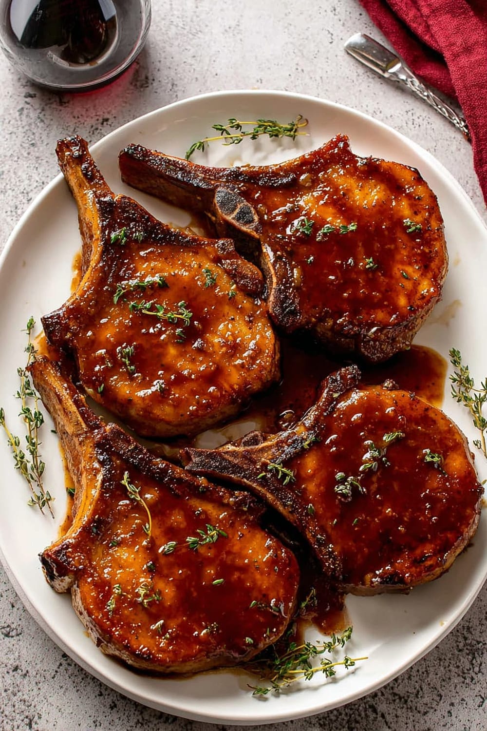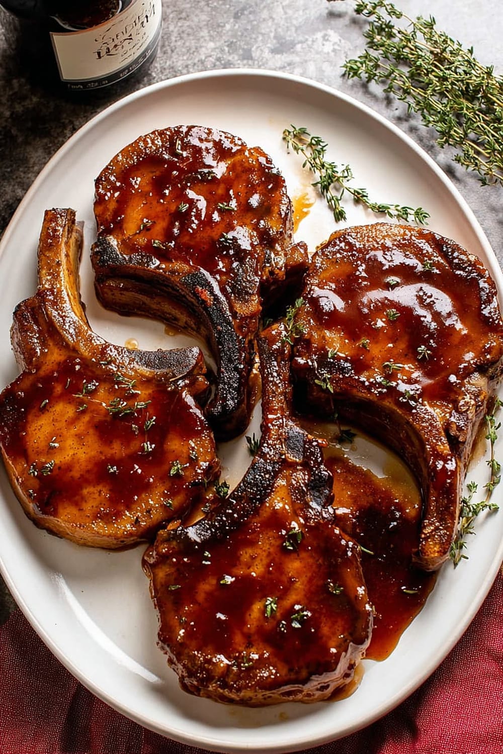 - 13 Cook for an additional 1 minute, allowing the glaze to caramelize slightly and adhere to the pork chops.