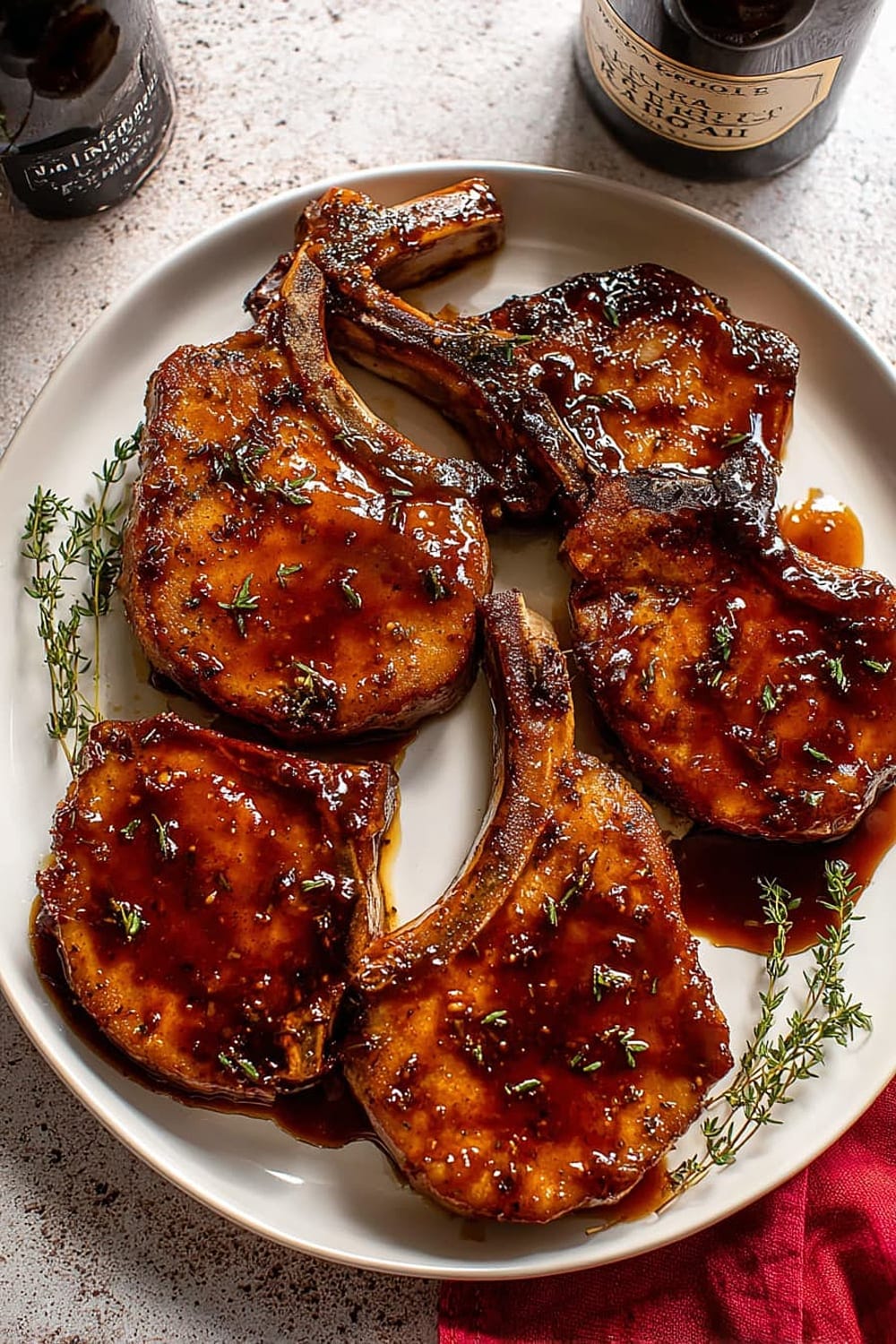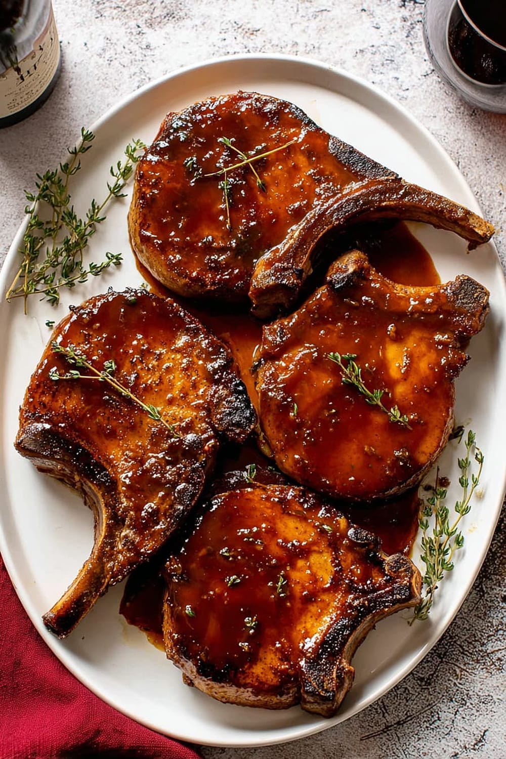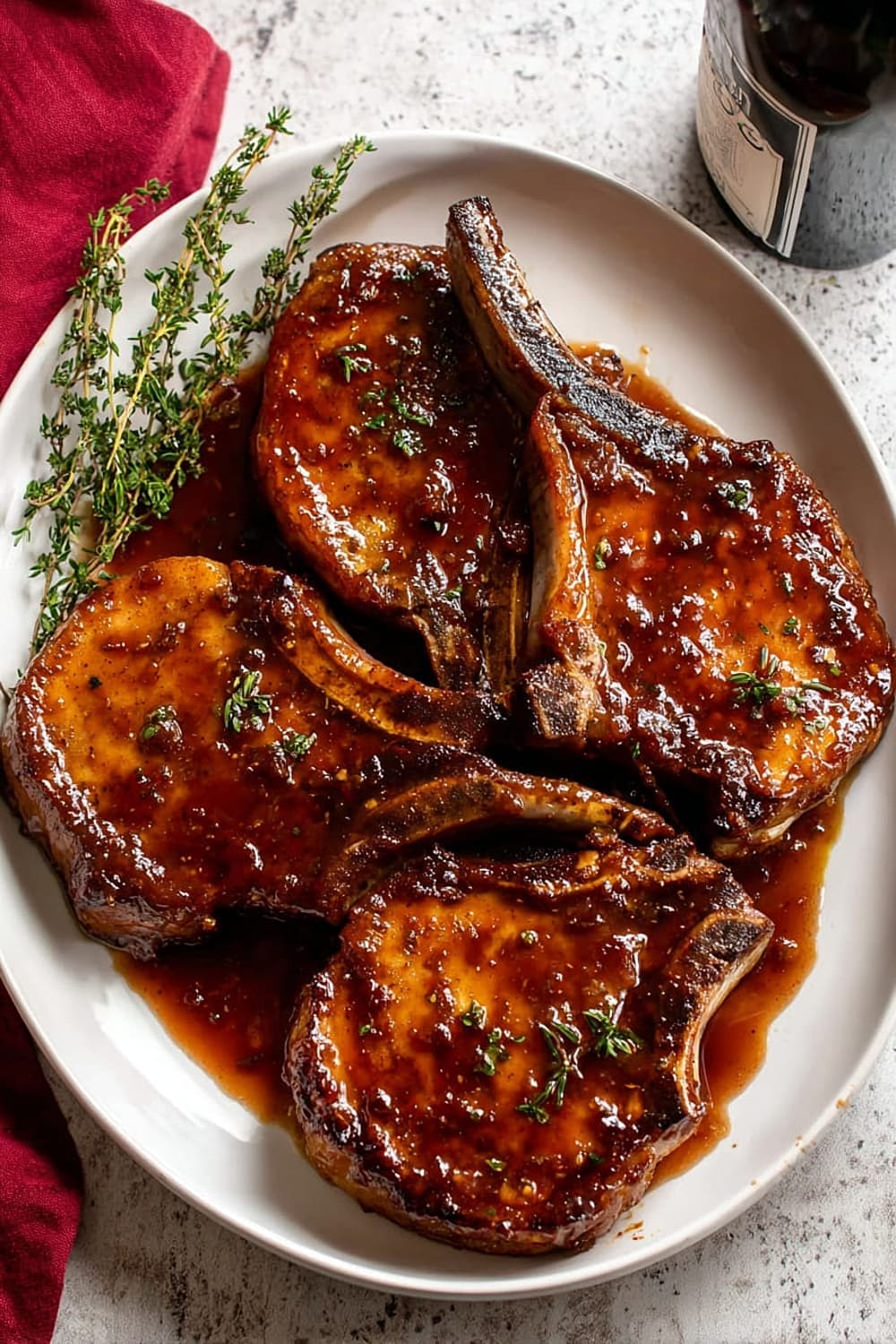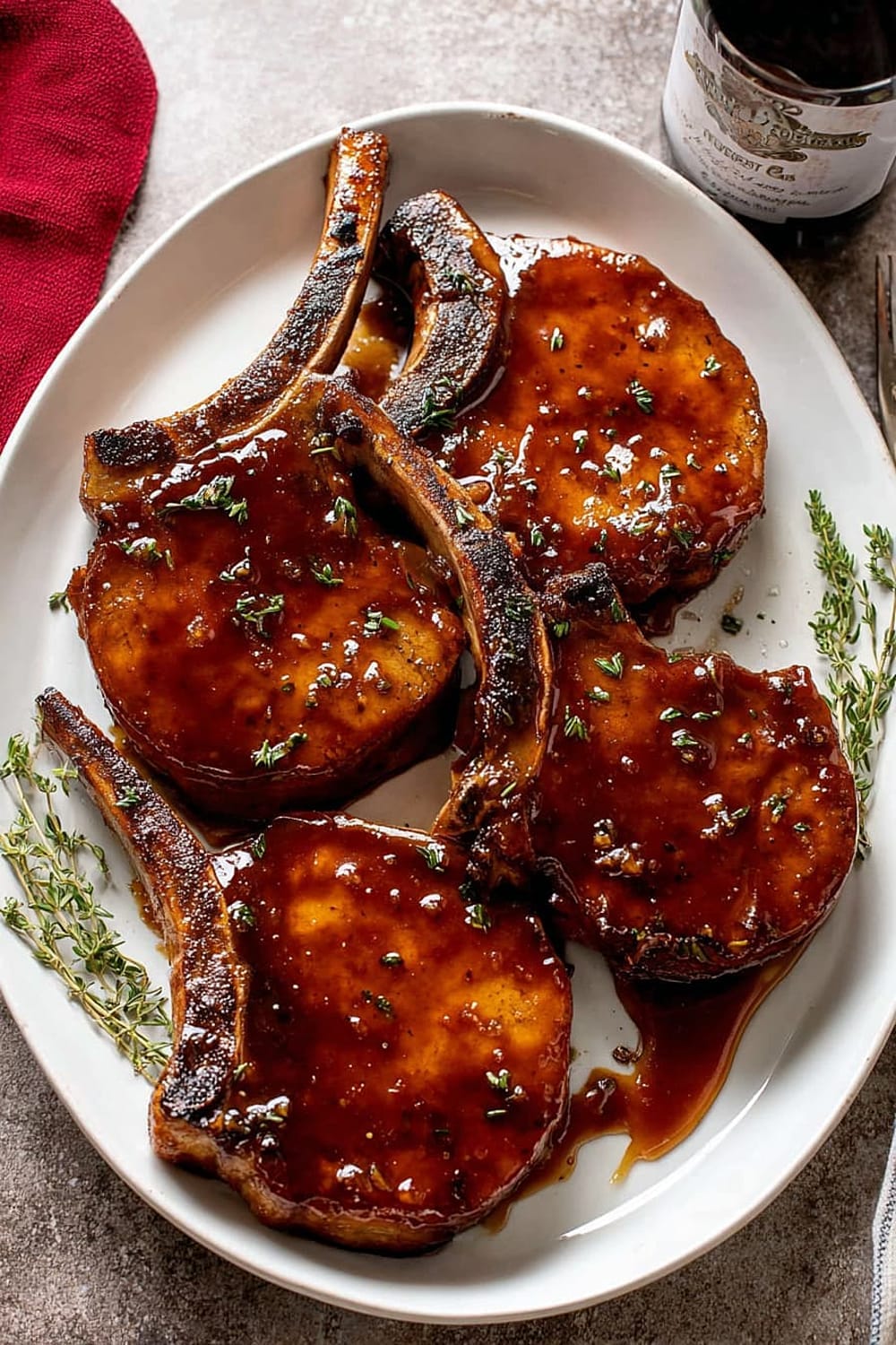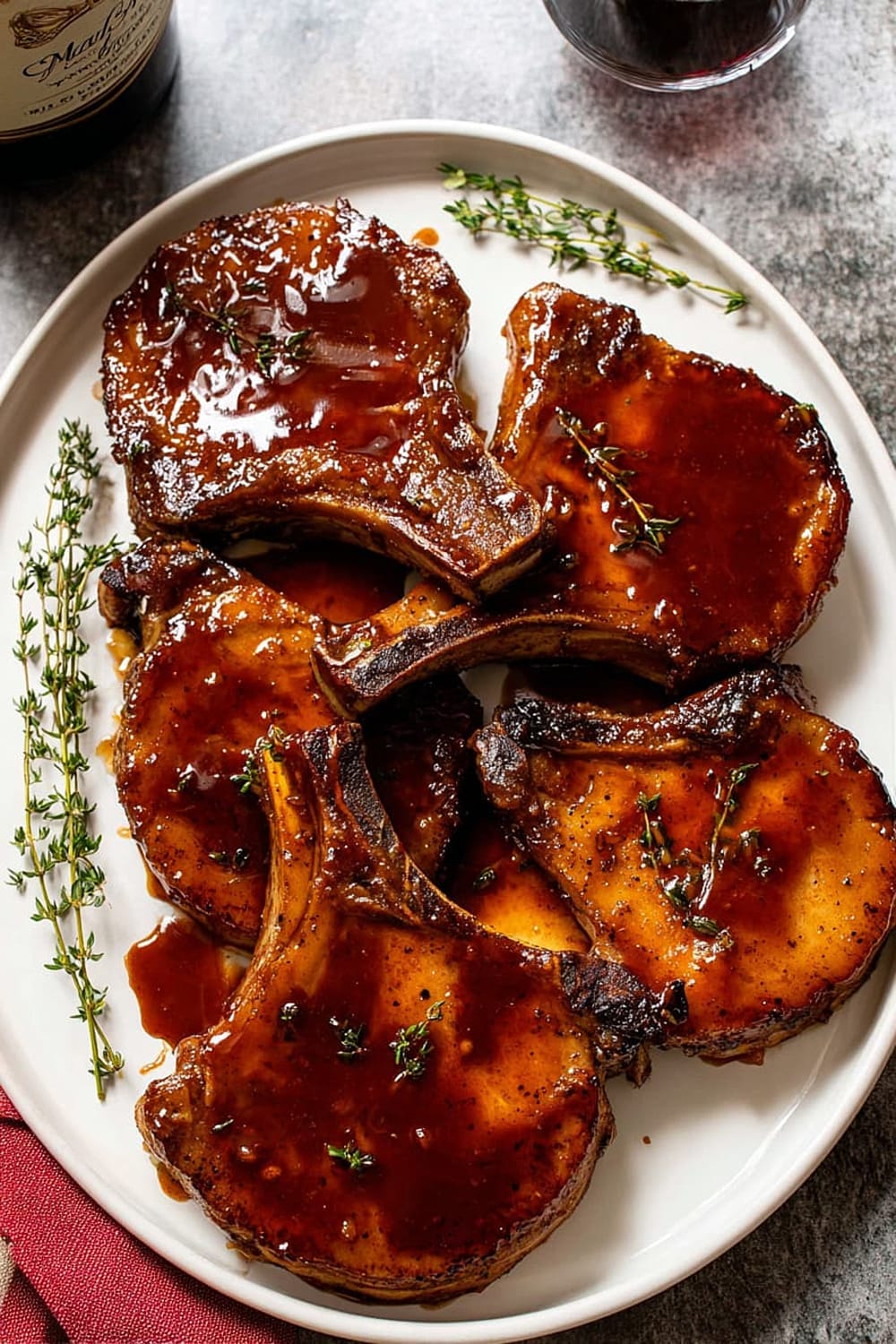 - 13 Cook for an additional 1 minute, allowing the glaze to caramelize slightly and adhere to the pork chops.