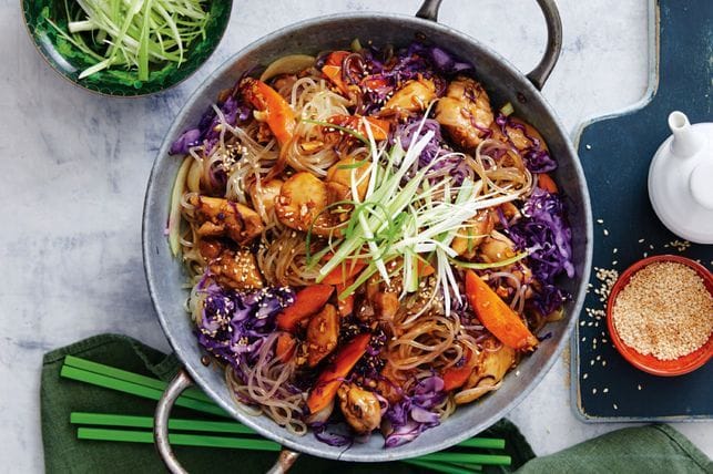 For something a little different, how about a Korean chicken and sweet potato noodle stir-fry?