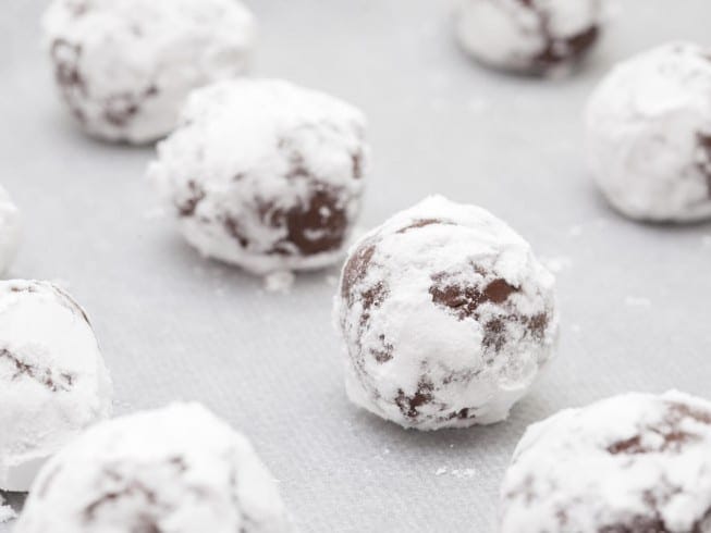 To mix it up, try rolling these chocolate bites in powdered sugar. It makes them sweet and pretty.
