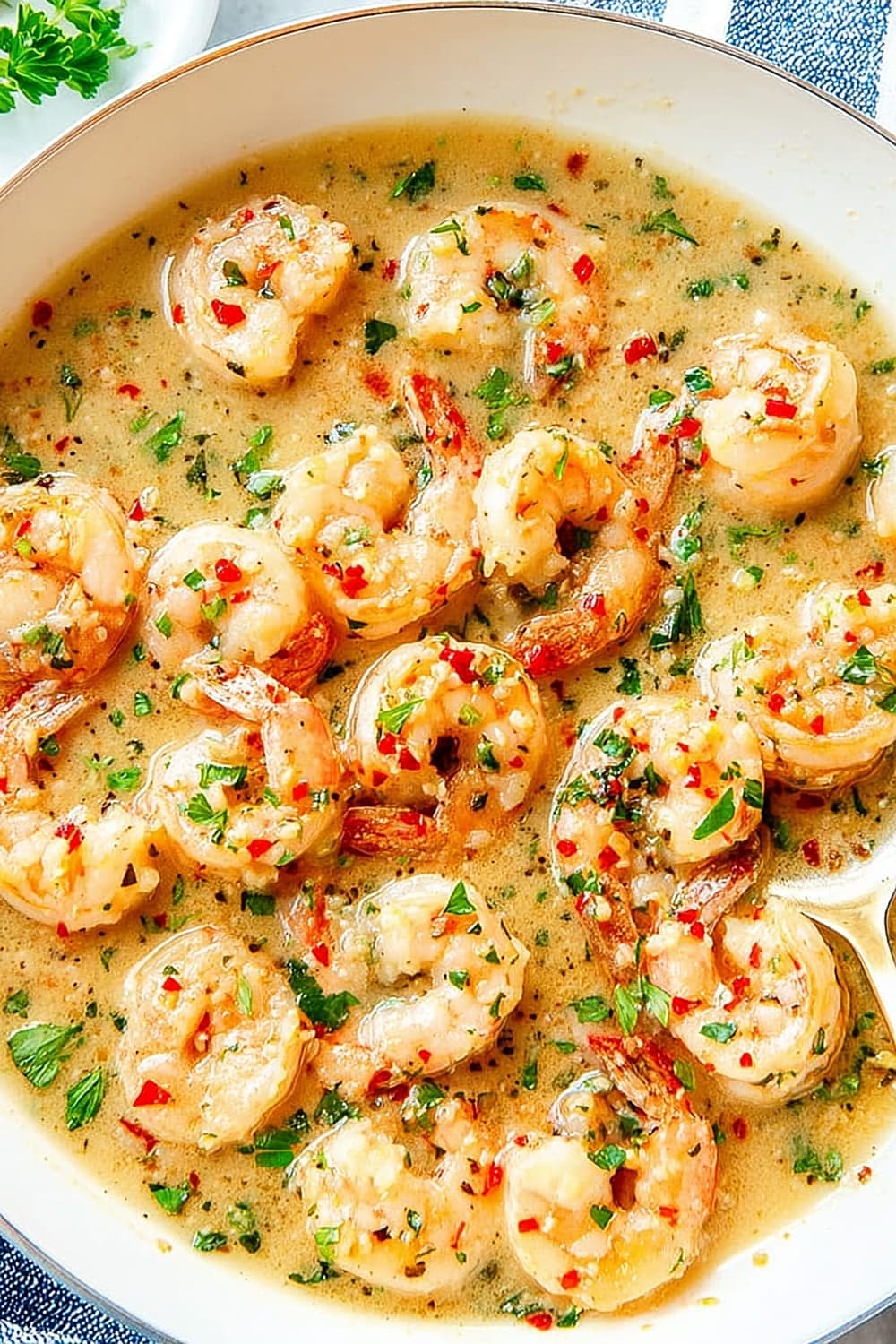 - 7 Remove the skillet from heat and immediately stir in the remaining 2 tablespoons of butter, fresh lemon juice, and chopped parsley. The residual heat will melt the butter and create a silky, emulsified sauce that coats the shrimp beautifully.