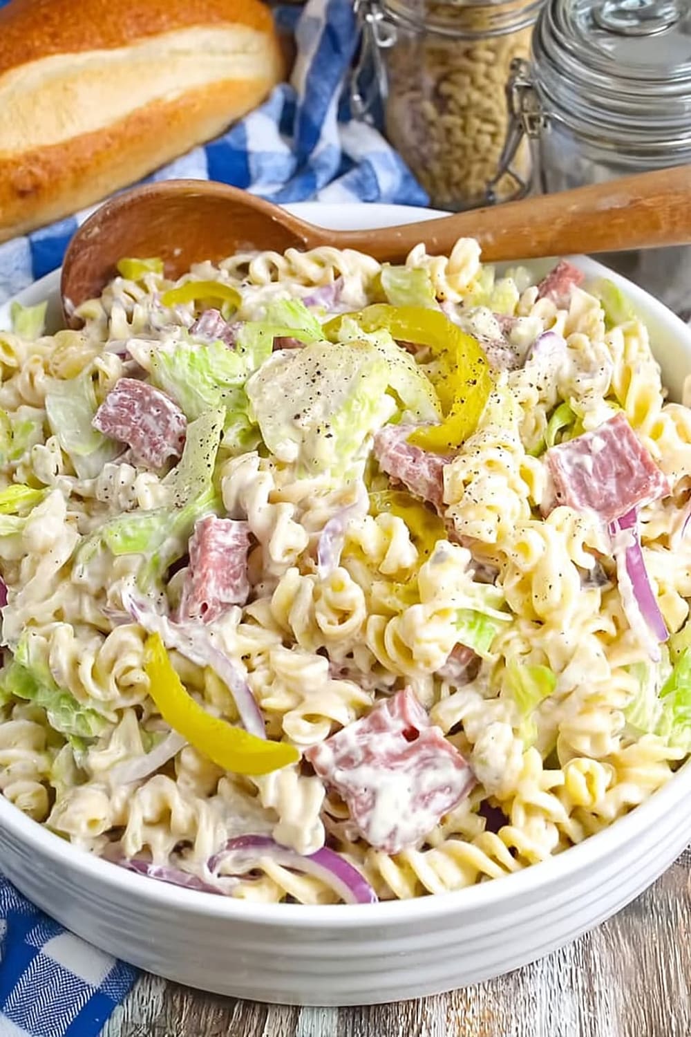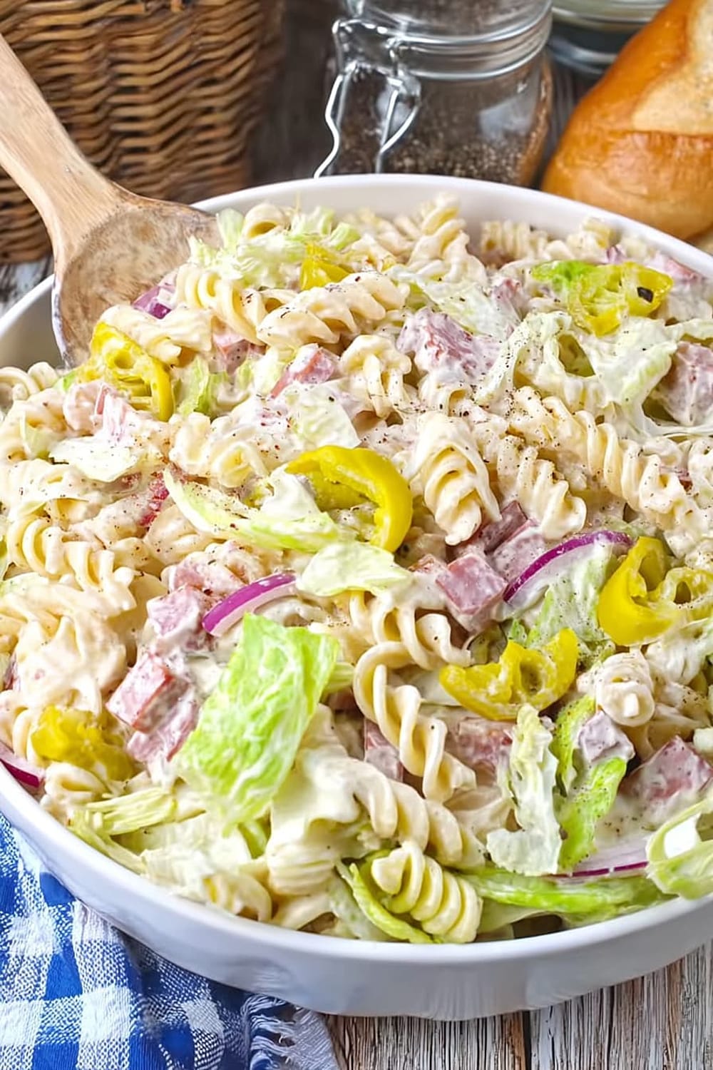 This pasta salad is basically what happens when your favorite Italian deli sandwich decides to crash a potluck and steal the show.
