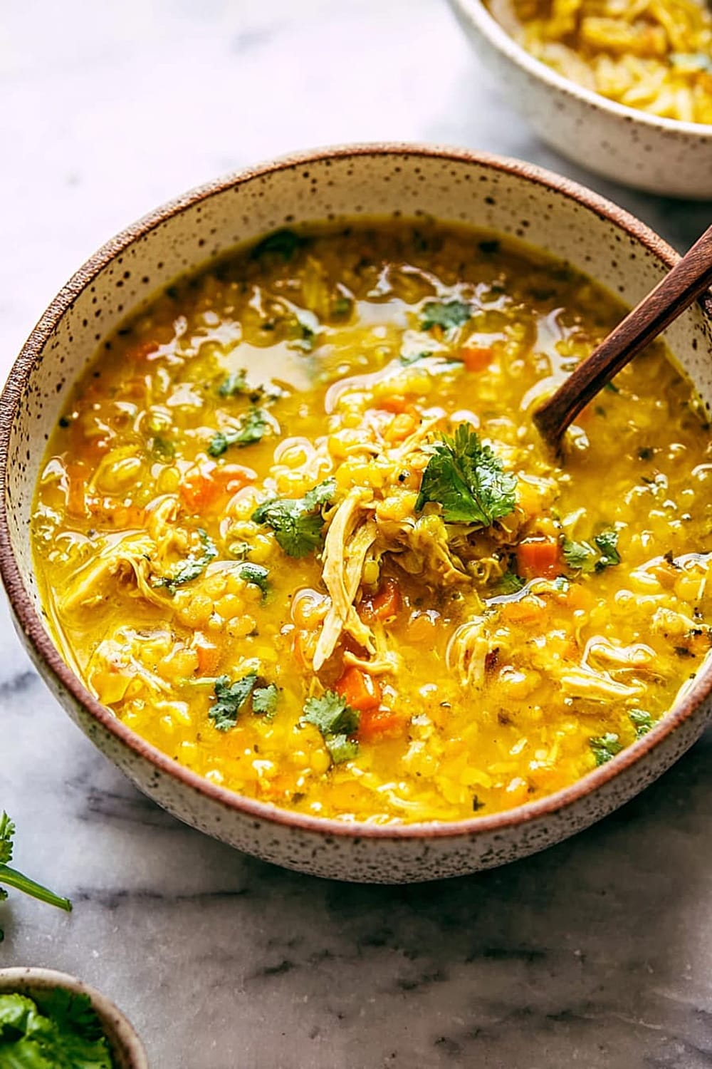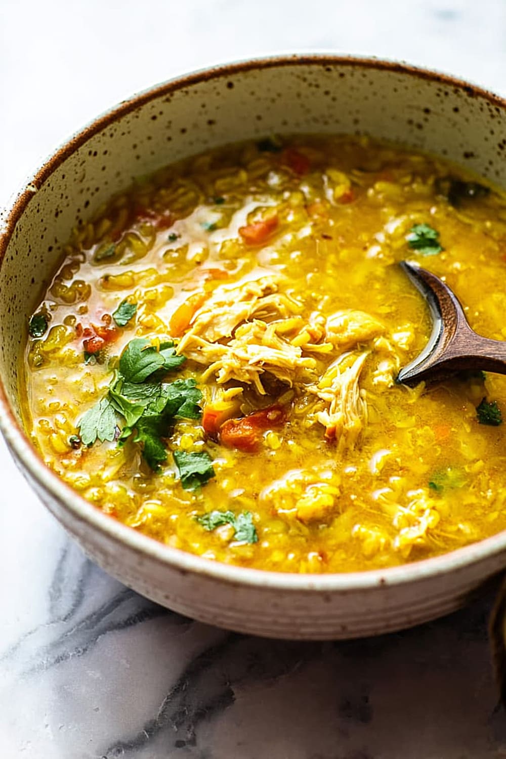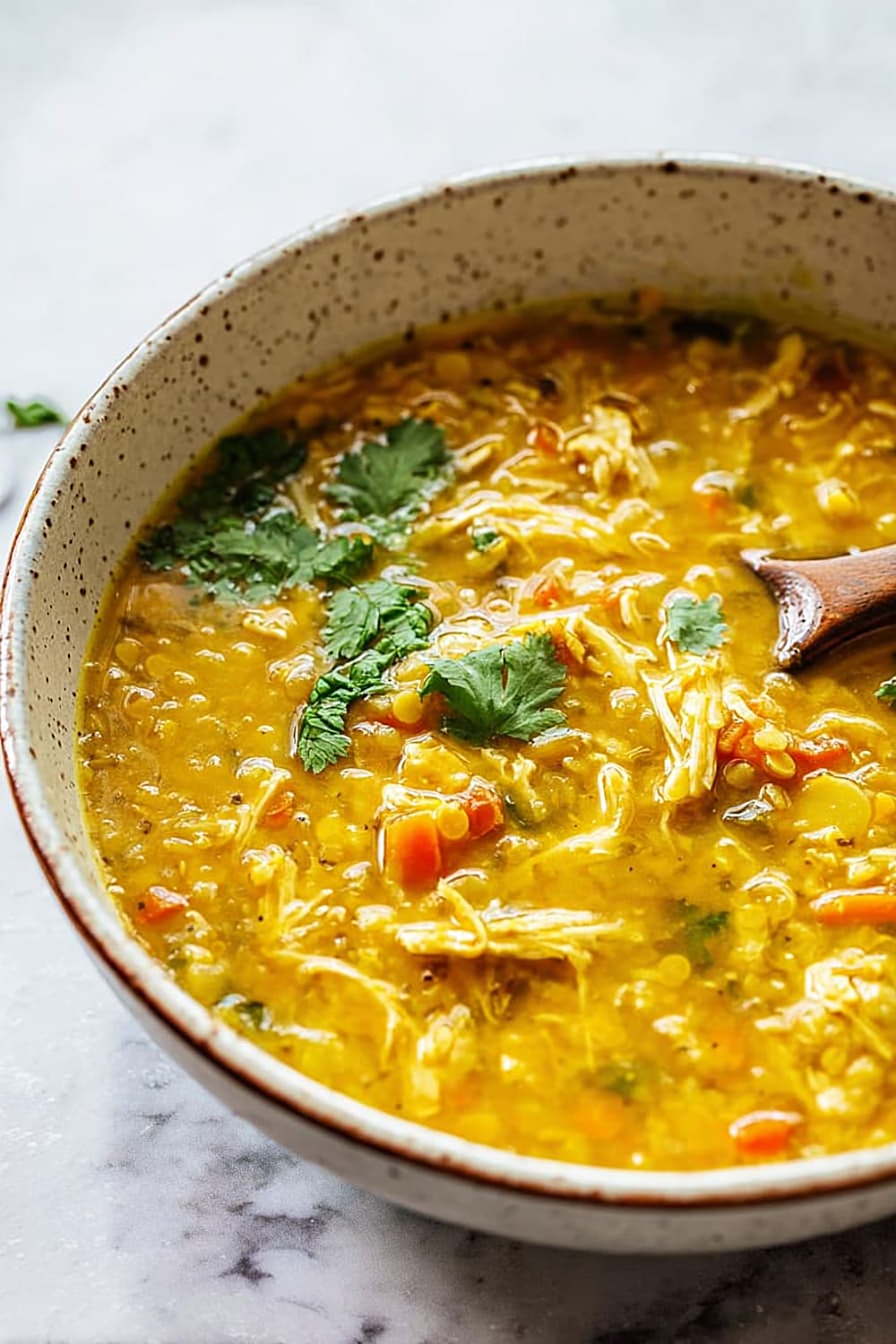This isn’t just any ordinary soup – it’s a fragrant, soul-warming bowl of pure comfort that combines the best of Indian spices with hearty chicken, tender lentils, and perfectly cooked basmati rice.