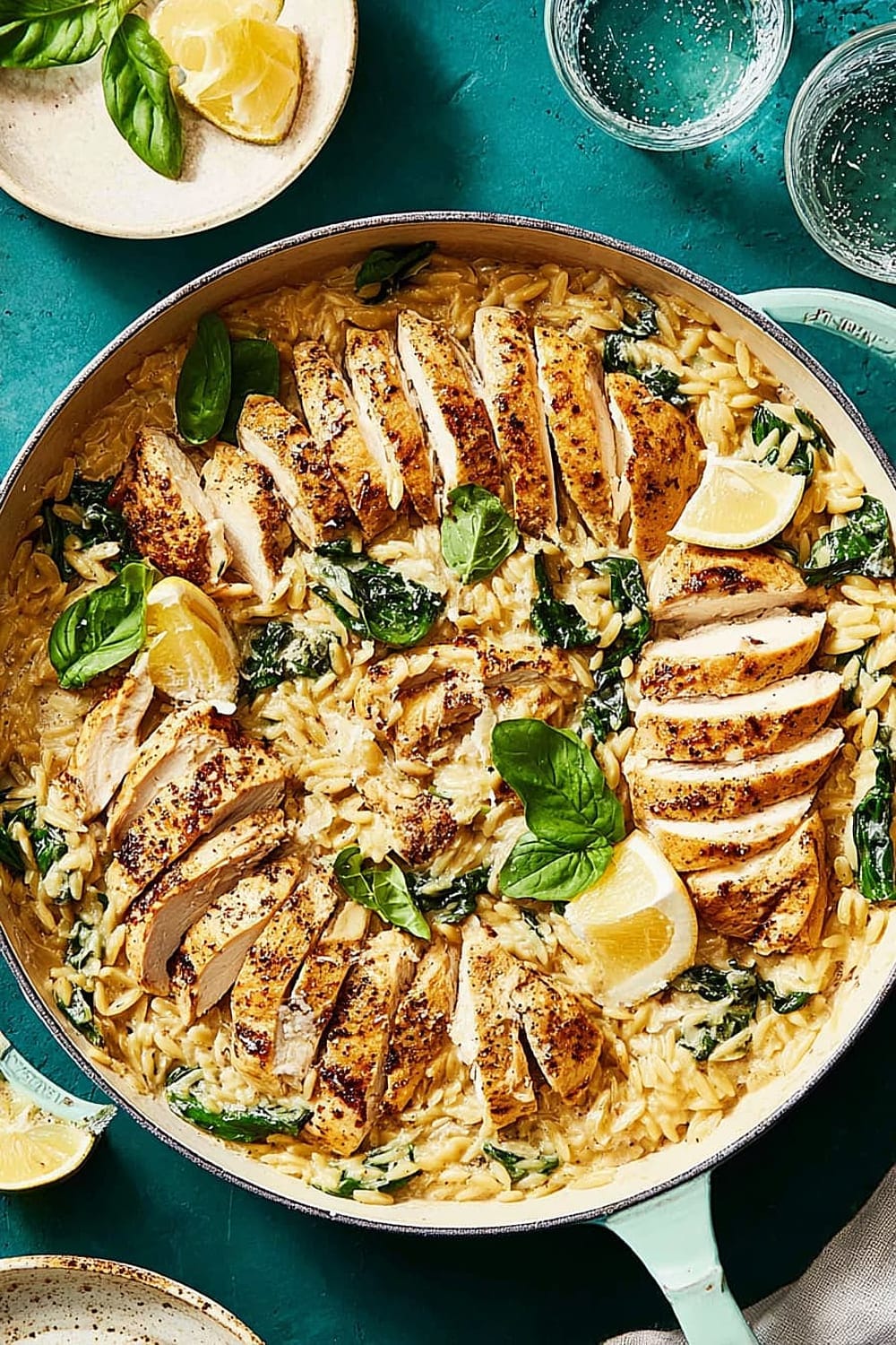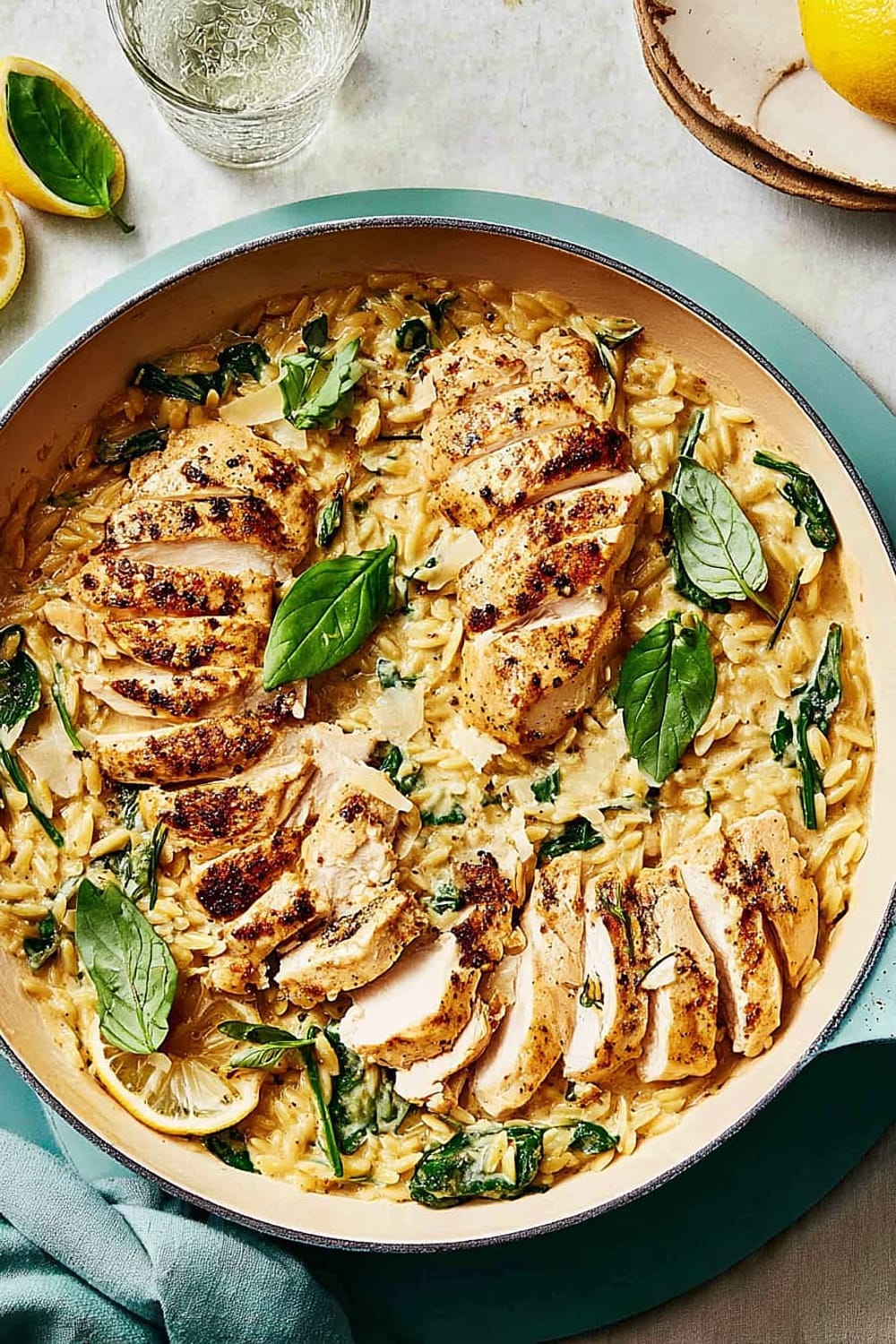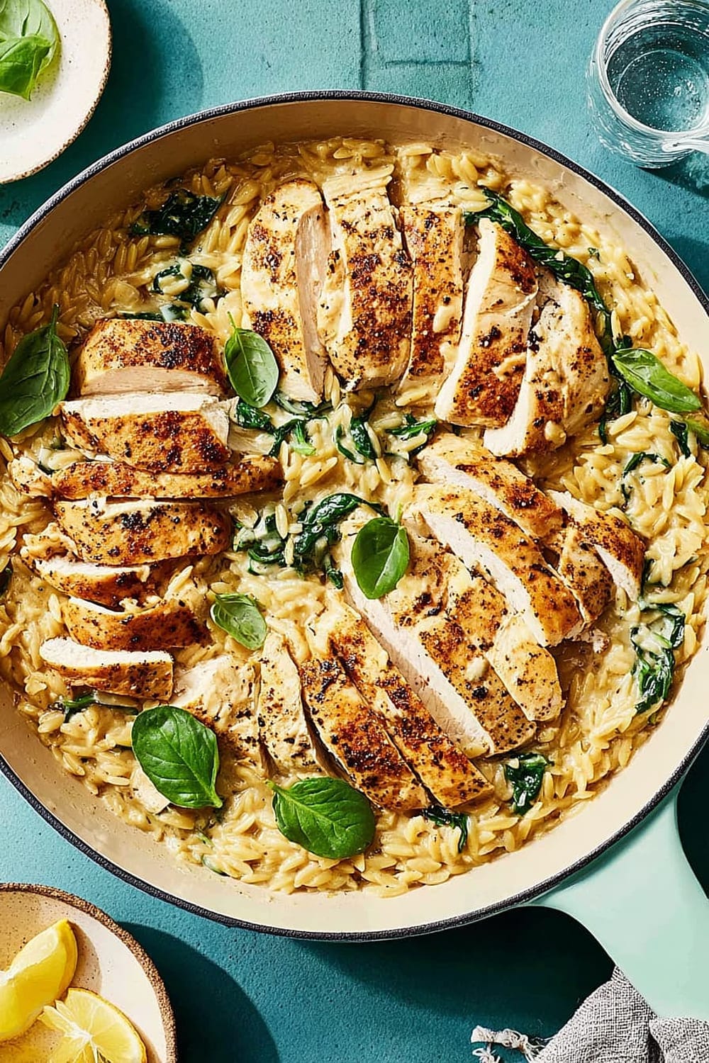 Start with bruschetta topped with fresh tomatoes and basil to set the Italian tone, then serve this orzo as your satisfying main course. Finish with fresh berries and a drizzle of honey or lemon panna cotta for a light, refreshing end to the meal. For entertaining, antipasto platters with olives, cured meats, and cheese create an elegant progression.