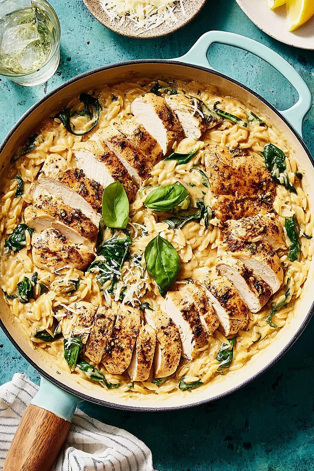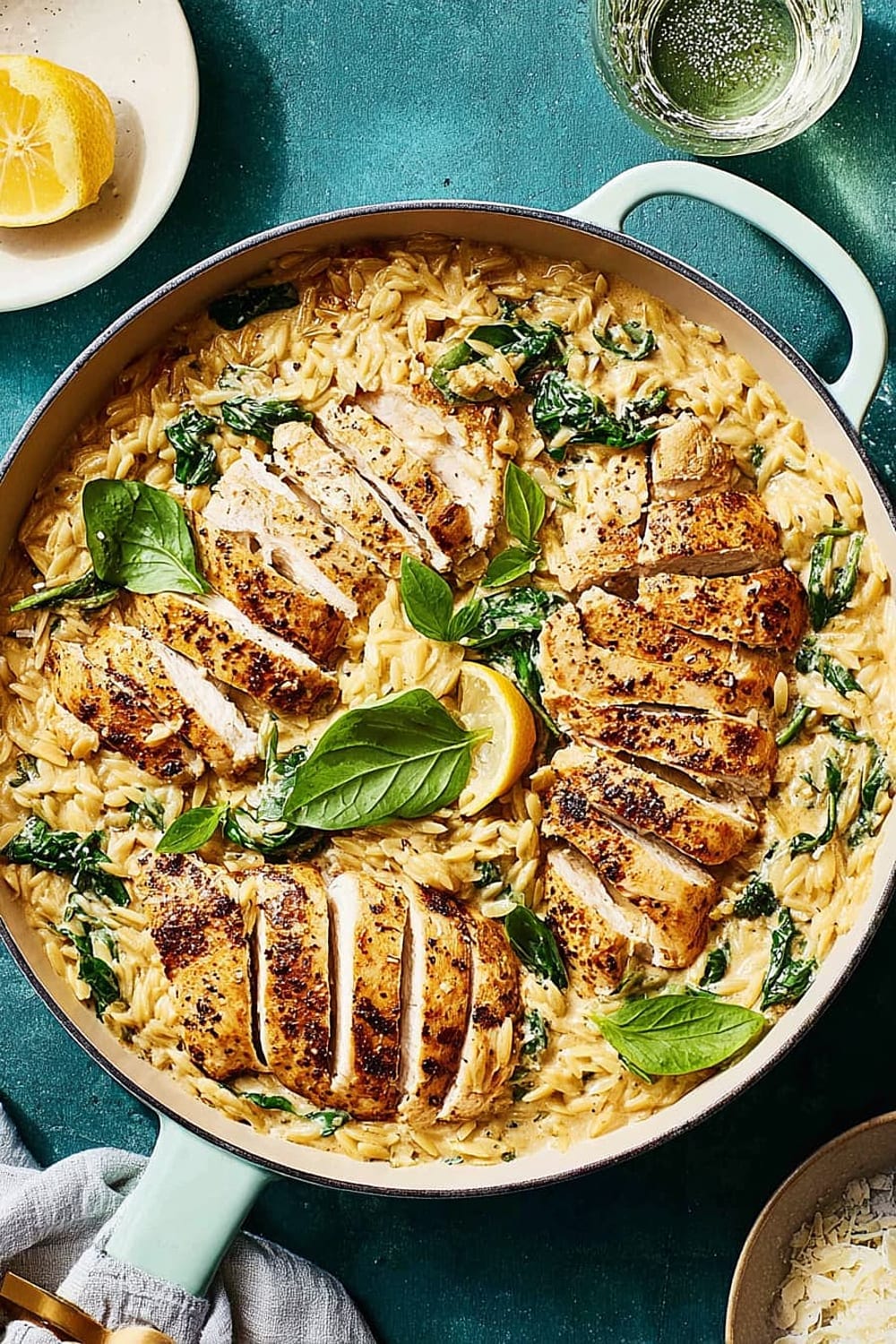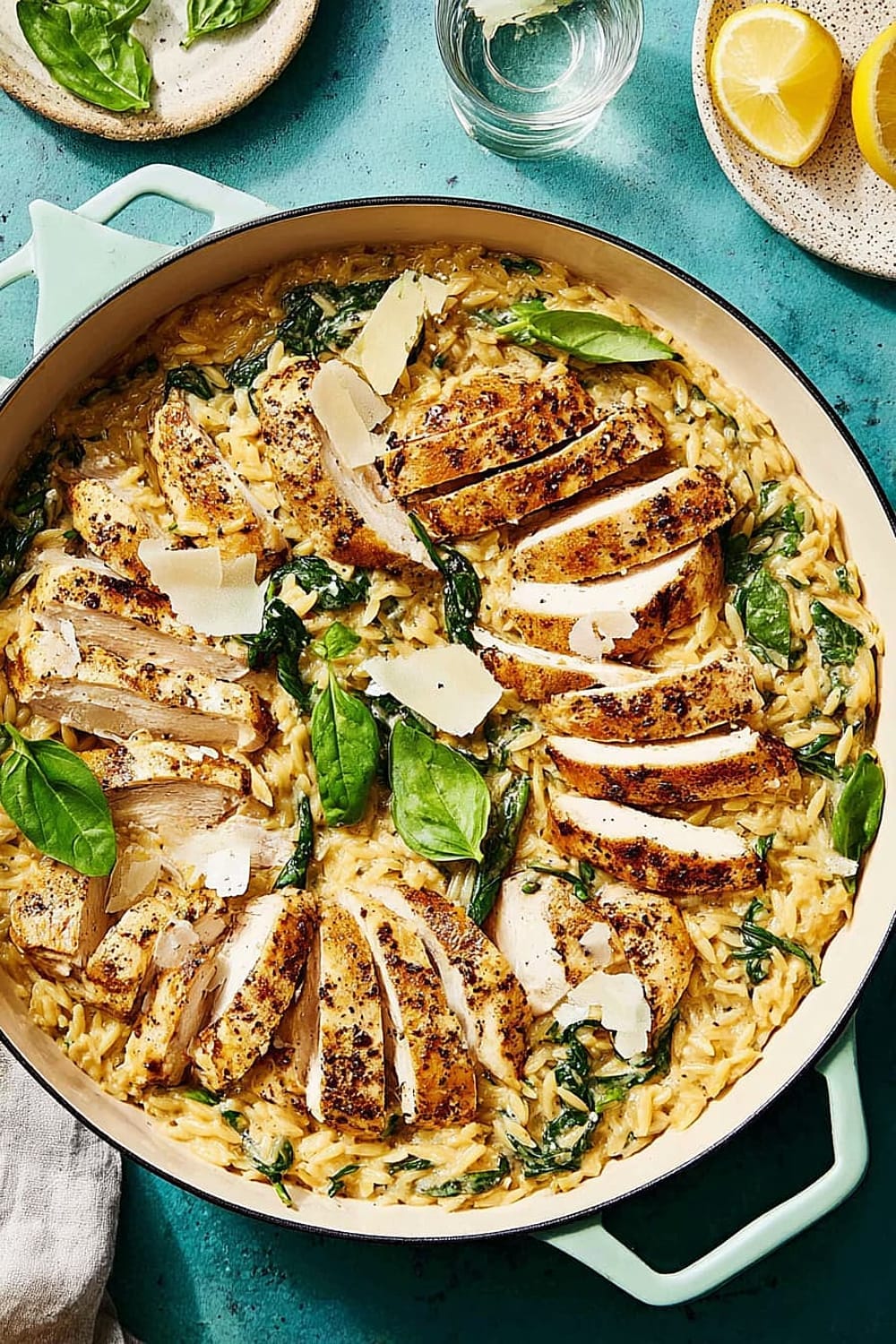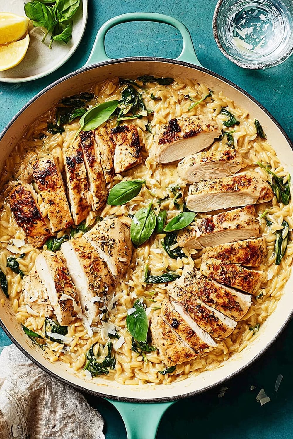 Start with bruschetta topped with fresh tomatoes and basil to set the Italian tone, then serve this orzo as your satisfying main course. Finish with fresh berries and a drizzle of honey or lemon panna cotta for a light, refreshing end to the meal. For entertaining, antipasto platters with olives, cured meats, and cheese create an elegant progression.