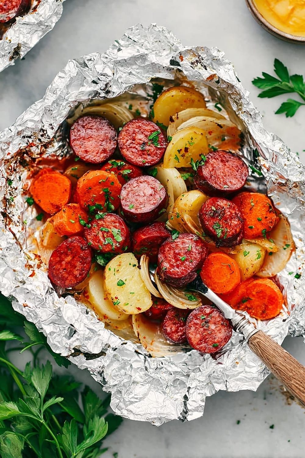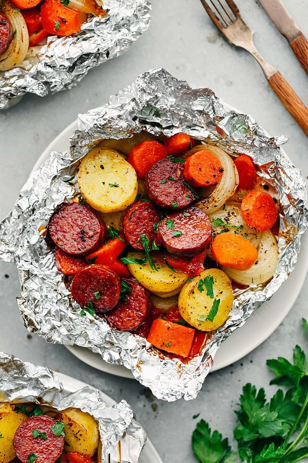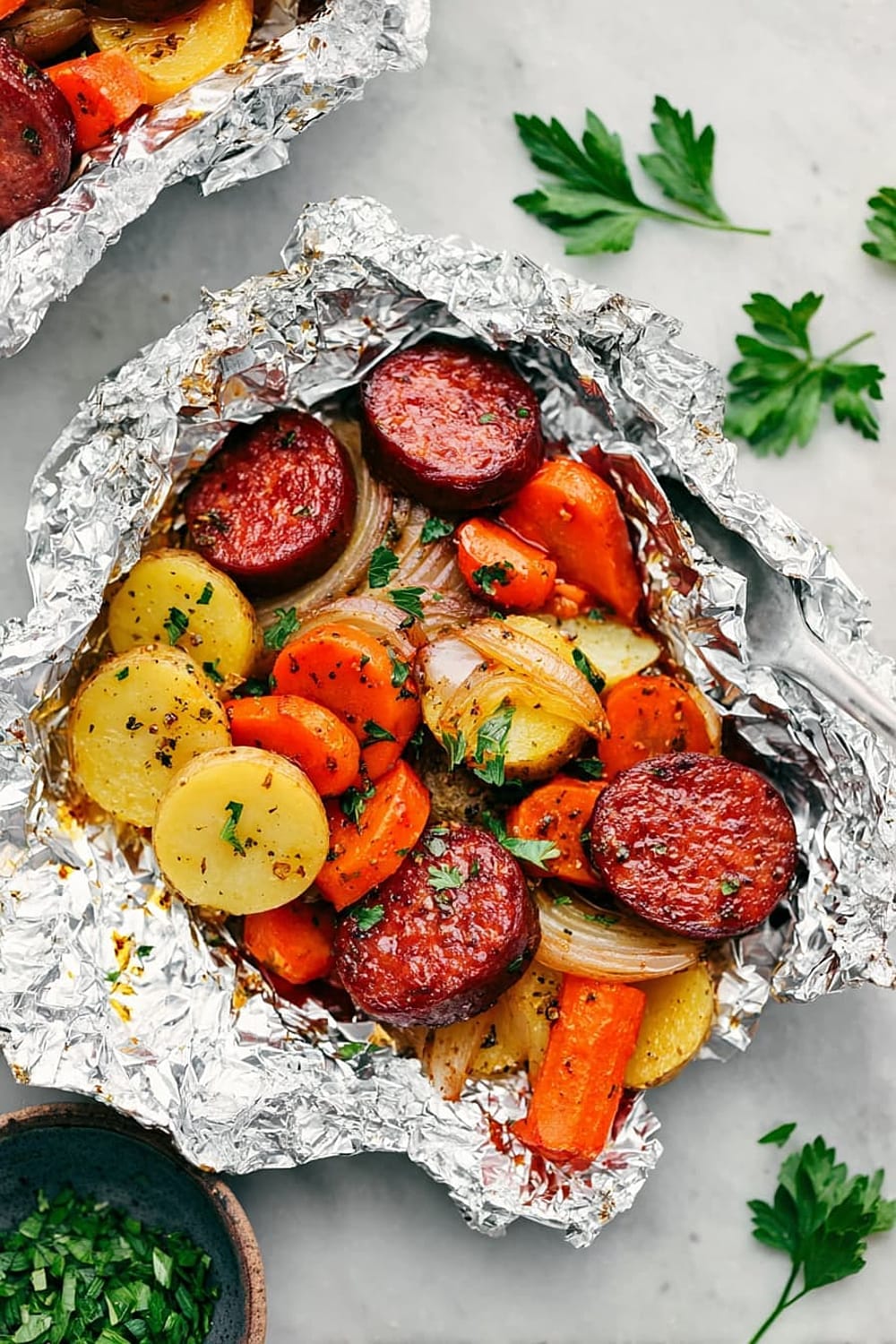 Picture this: tender potatoes, smoky sausage, and perfectly seasoned vegetables all steaming together in their own little aluminum cocoon, creating the most satisfying one-packet meal you’ve ever experienced.