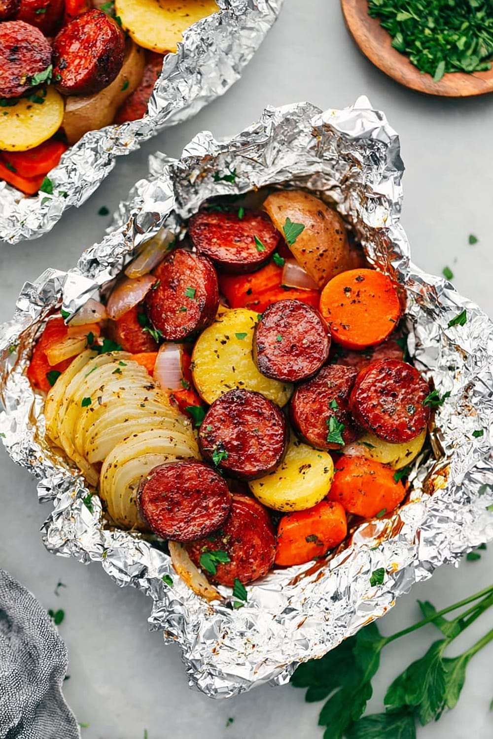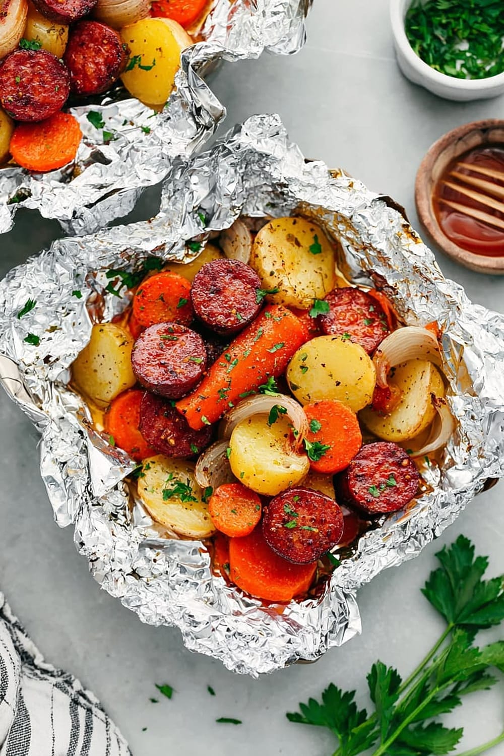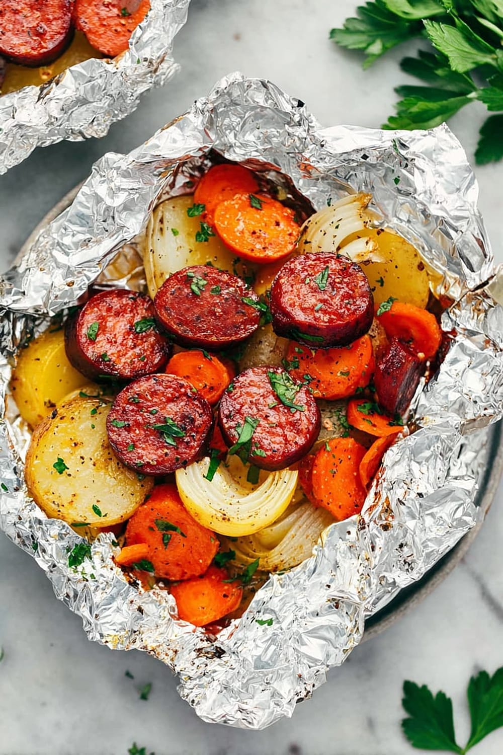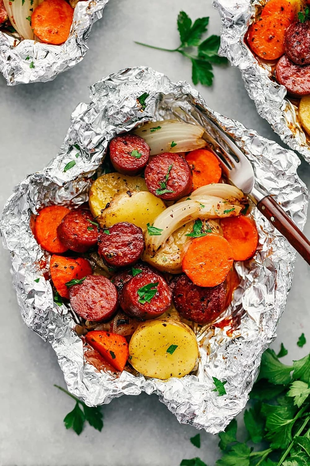 Picture this: tender potatoes, smoky sausage, and perfectly seasoned vegetables all steaming together in their own little aluminum cocoon, creating the most satisfying one-packet meal you’ve ever experienced.