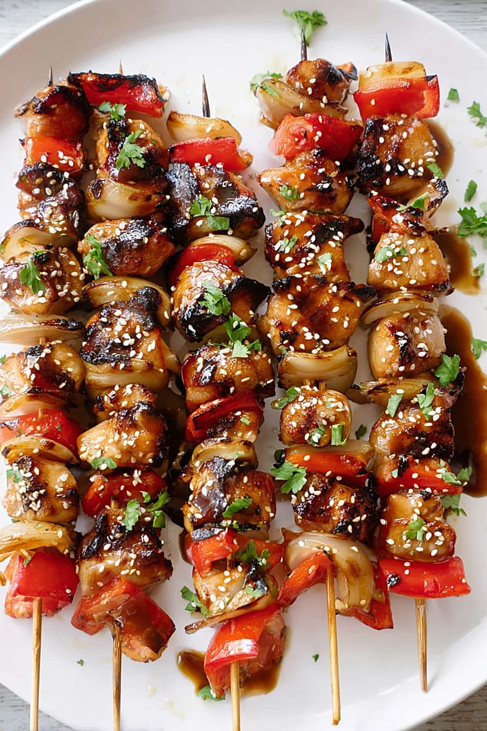 What makes these skewers truly special is how the marinade penetrates every piece of chicken, while the colorful bell peppers and onions add the perfect crunch and sweetness to complement the glazed chicken.