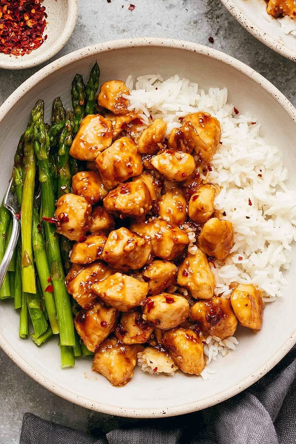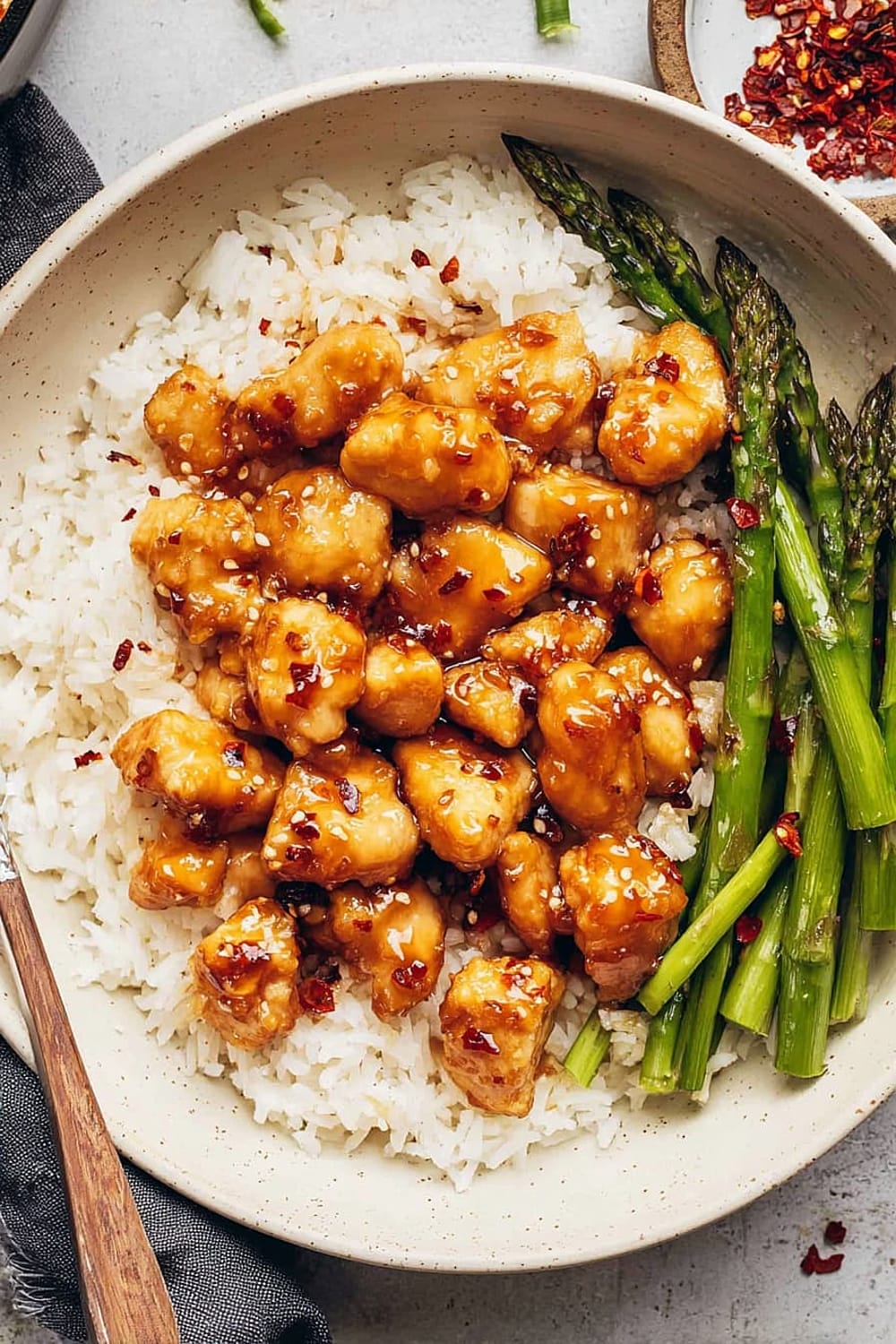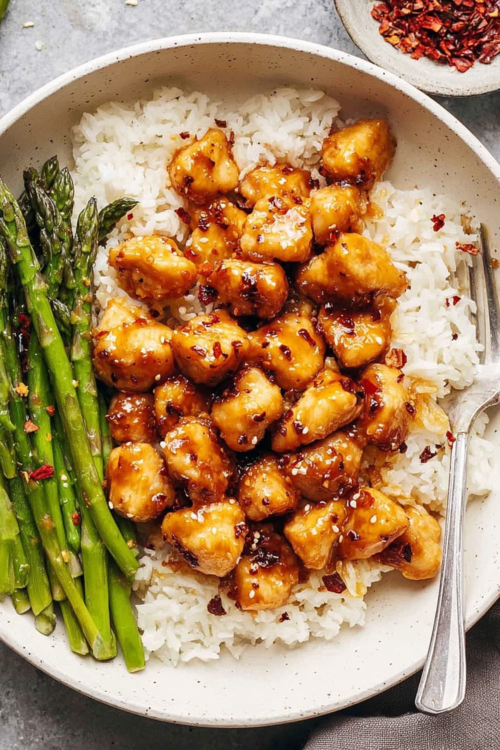 This honey sriracha chicken is basically what happens when sweet meets heat in the most delicious way possible, creating a glossy, sticky coating that clings to every piece of tender chicken.