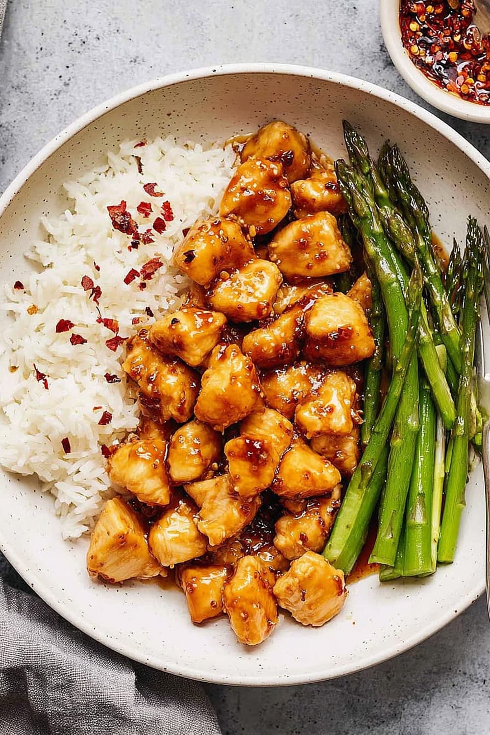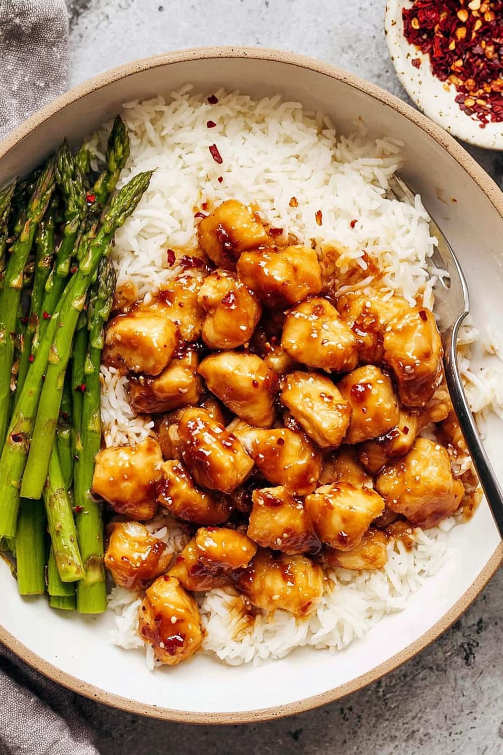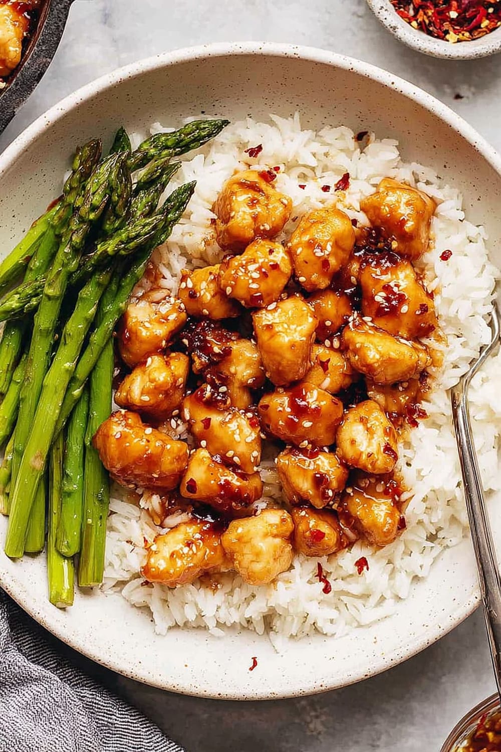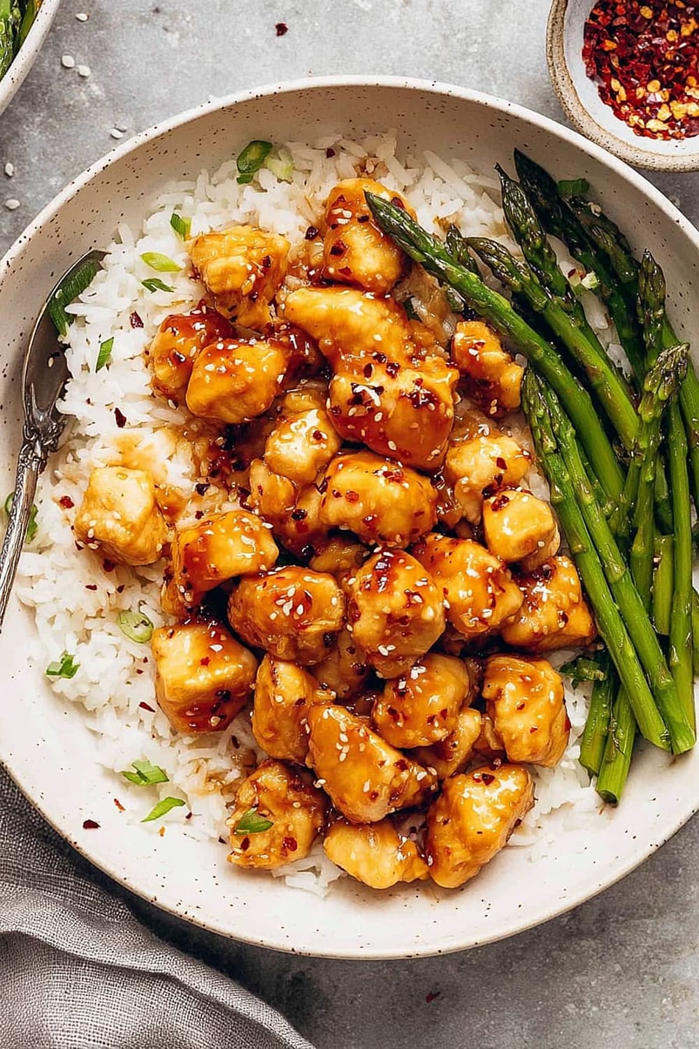 This honey sriracha chicken is basically what happens when sweet meets heat in the most delicious way possible, creating a glossy, sticky coating that clings to every piece of tender chicken.