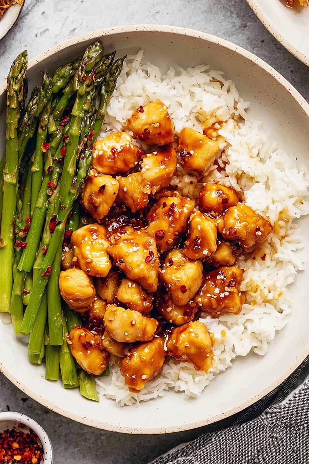 - 10 Sprinkle with crushed red pepper flakes if you want extra heat, and serve immediately over warm rice to soak up every drop of that incredible sauce.
