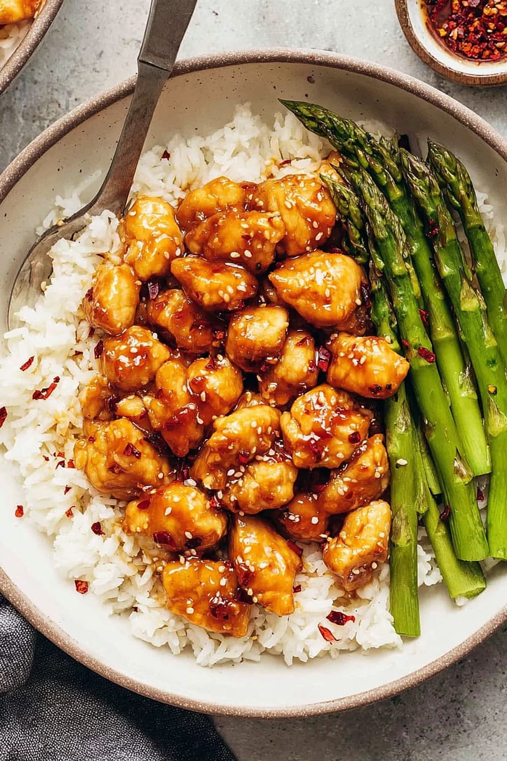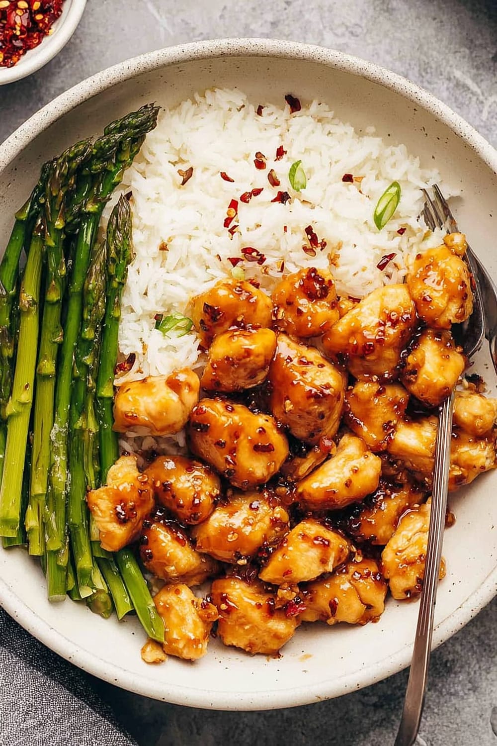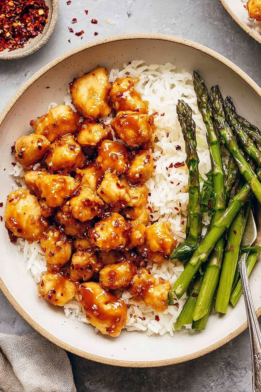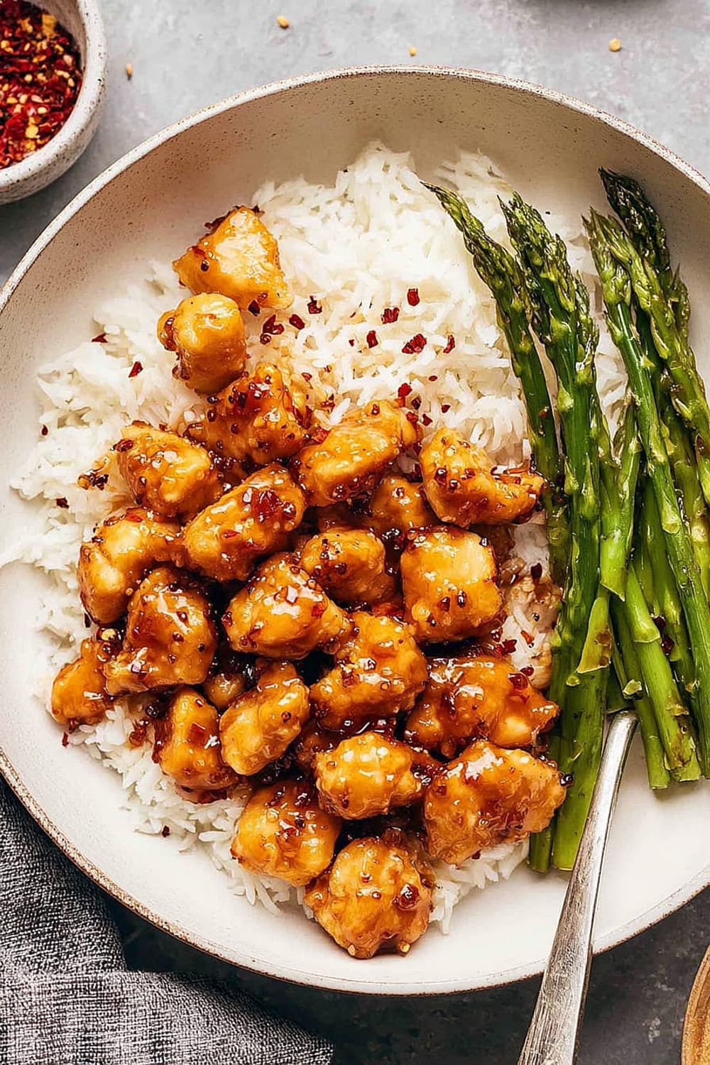 Steamed jasmine rice is the classic choice for soaking up every drop of sauce, but coconut rice adds tropical richness that complements the honey sweetness. Asian cucumber salad with rice vinegar provides cooling crunch that contrasts beautifully with the sticky chicken, while stir-fried bok choy or snow peas add fresh, crisp vegetables without overwhelming the main dish. Sesame roasted broccoli brings nutty earthiness that grounds the sweet-spicy flavors perfectly.