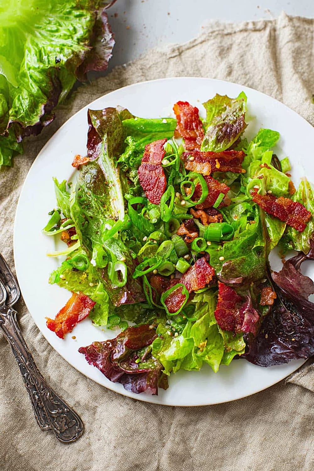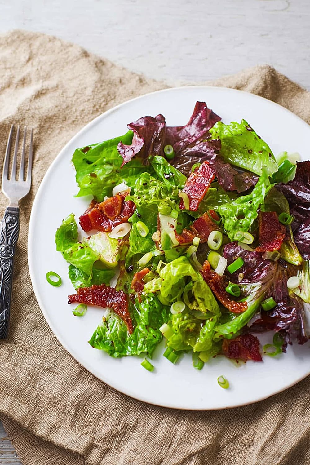 Never let the lettuce sit with dressing – it becomes soggy within minutes. If your bacon doesn’t render enough fat, resist adding oil until after removing the bacon, then add 1-2 tablespoons neutral oil to the pan. Don’t skip the sugar – it balances the vinegar’s acidity and helps create the signature sweet-tangy flavor profile. Wet lettuce is the enemy – even small amounts of water will dilute the dressing and create a watery mess.