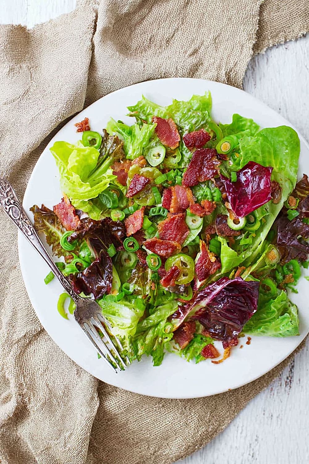 Unfortunately, killed lettuce doesn’t store well due to its delicate nature. However, you can prep components ahead: cook bacon and store covered (reheat before making dressing), wash and dry lettuce (store in refrigerator), and slice onions (keep covered). The dressing can be made and kept warm in the pan for up to 10 minutes before serving. For entertaining, prepare everything up to the final tossing step, then finish just before serving.