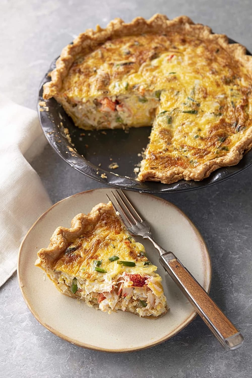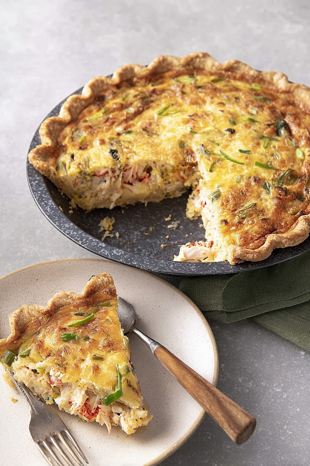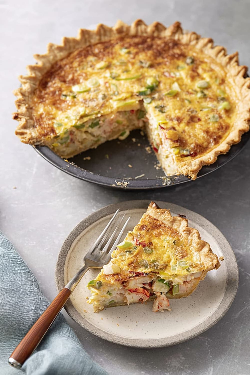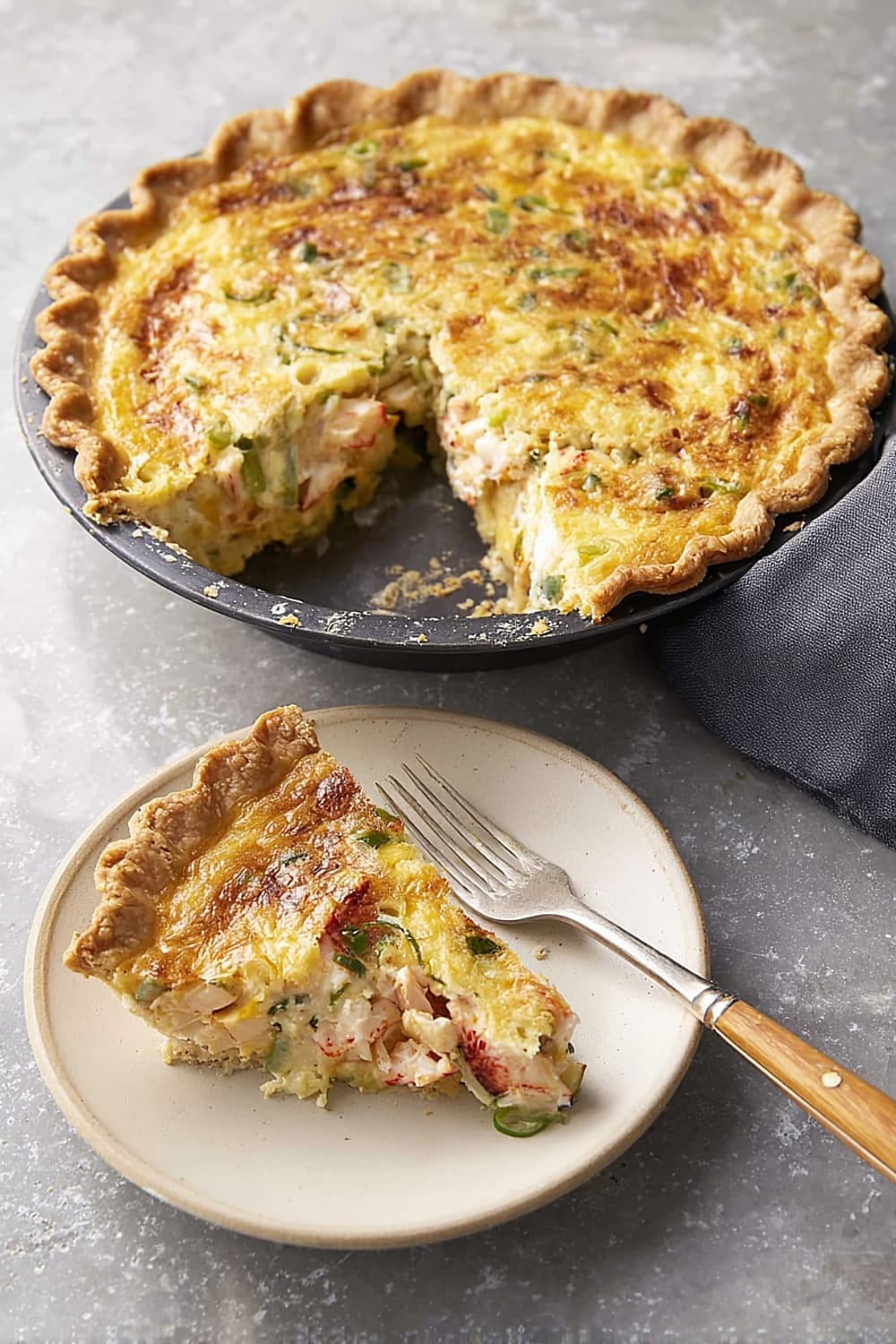 - 4 Repeat with the remaining lobster and scallions, but save the remaining cheese for the final topping. This creates beautiful layers throughout the quiche while reserving cheese for that gorgeous golden top.