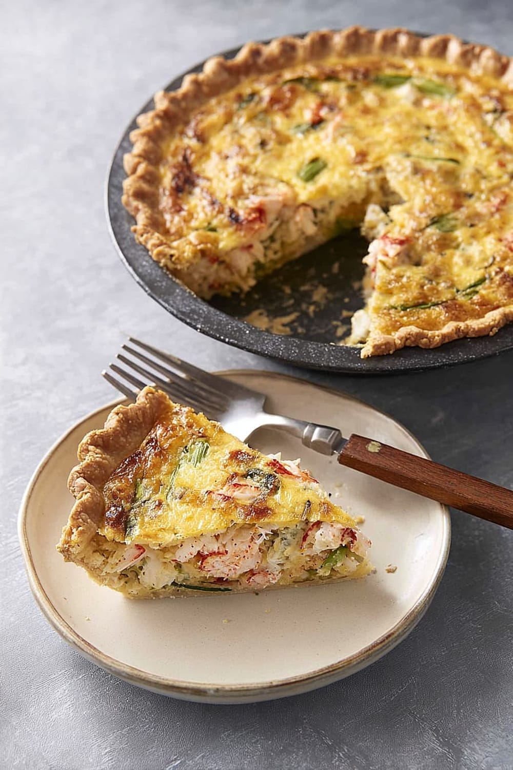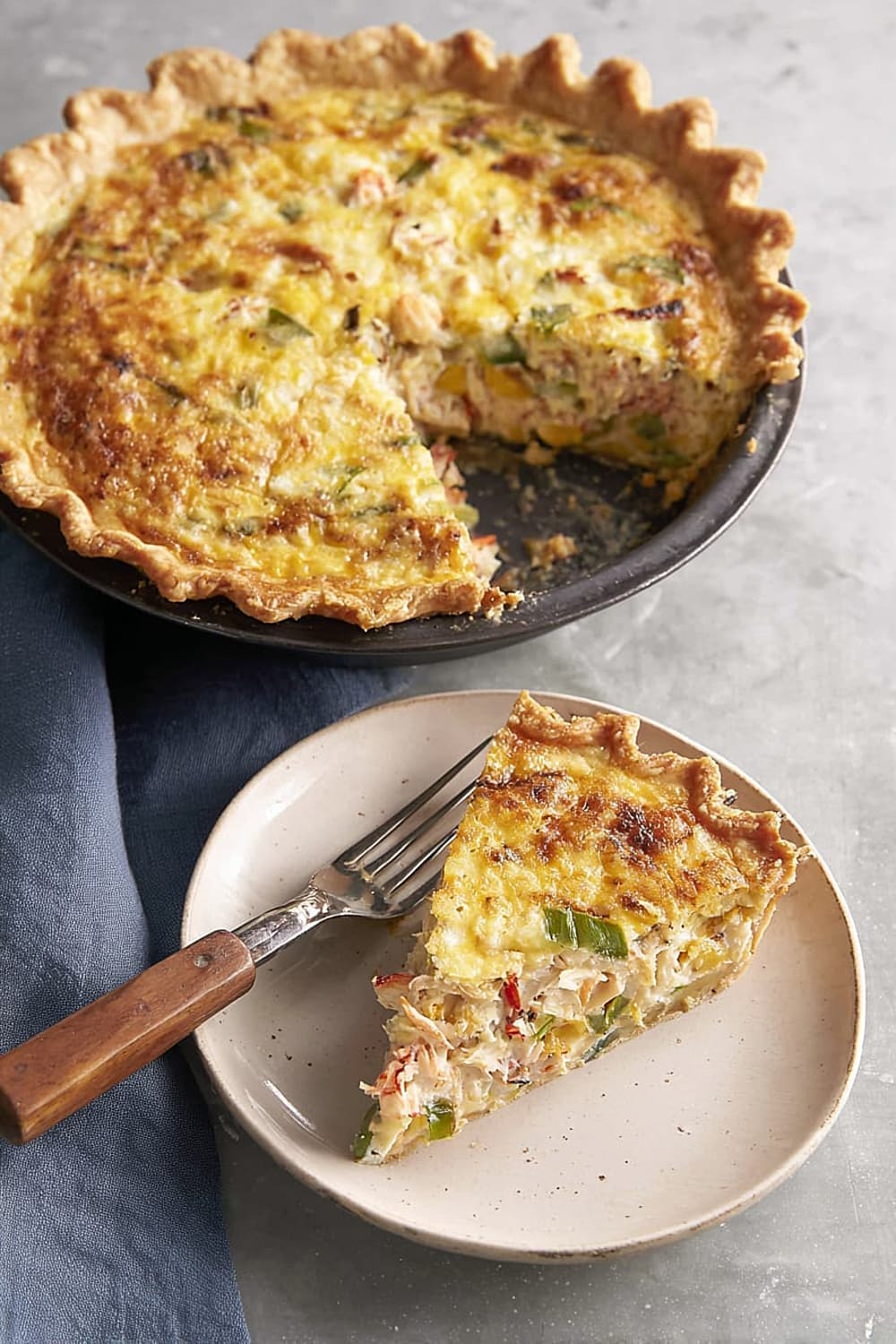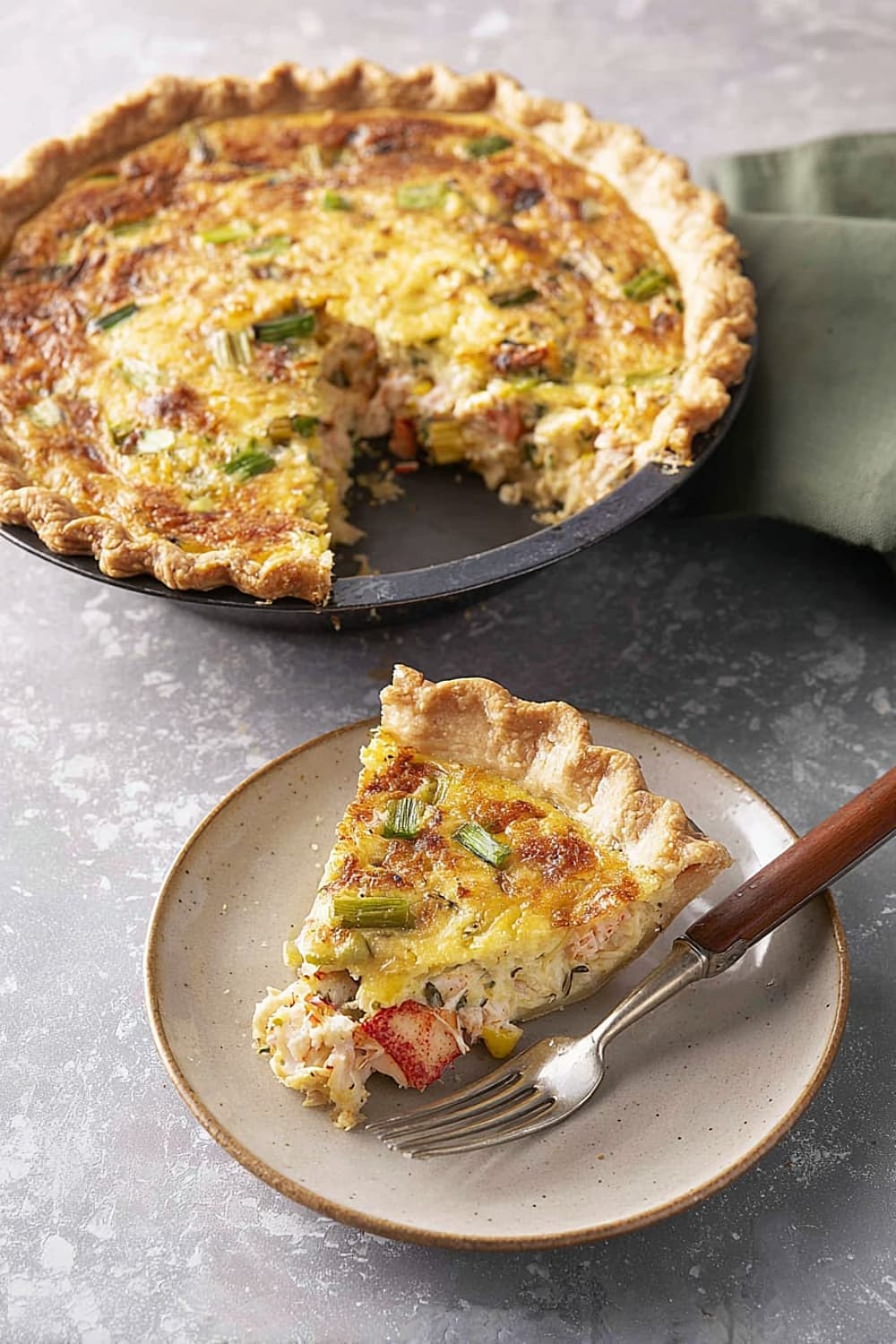 - 4 Repeat with the remaining lobster and scallions, but save the remaining cheese for the final topping. This creates beautiful layers throughout the quiche while reserving cheese for that gorgeous golden top.