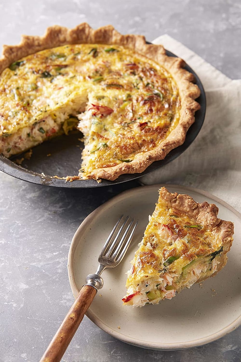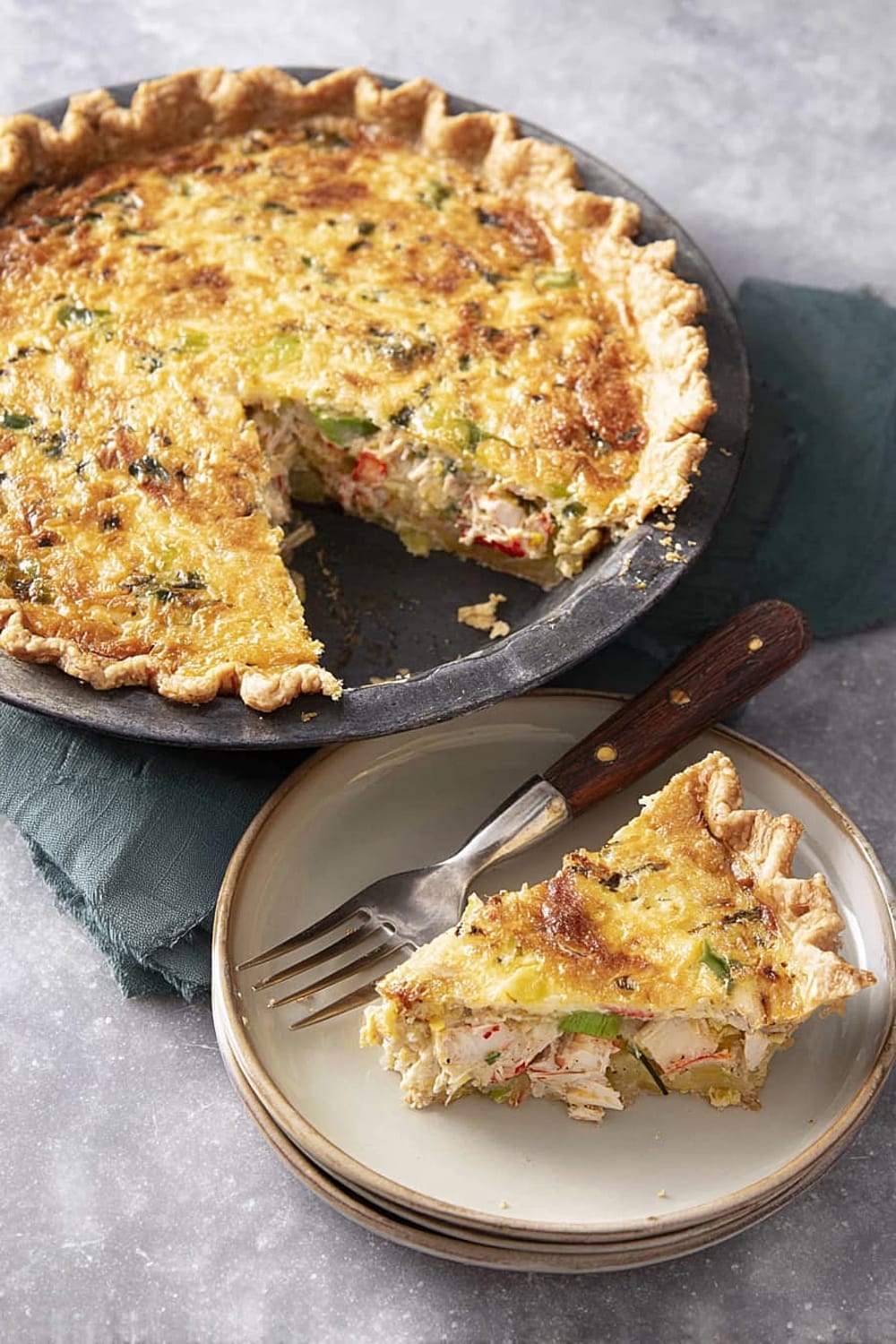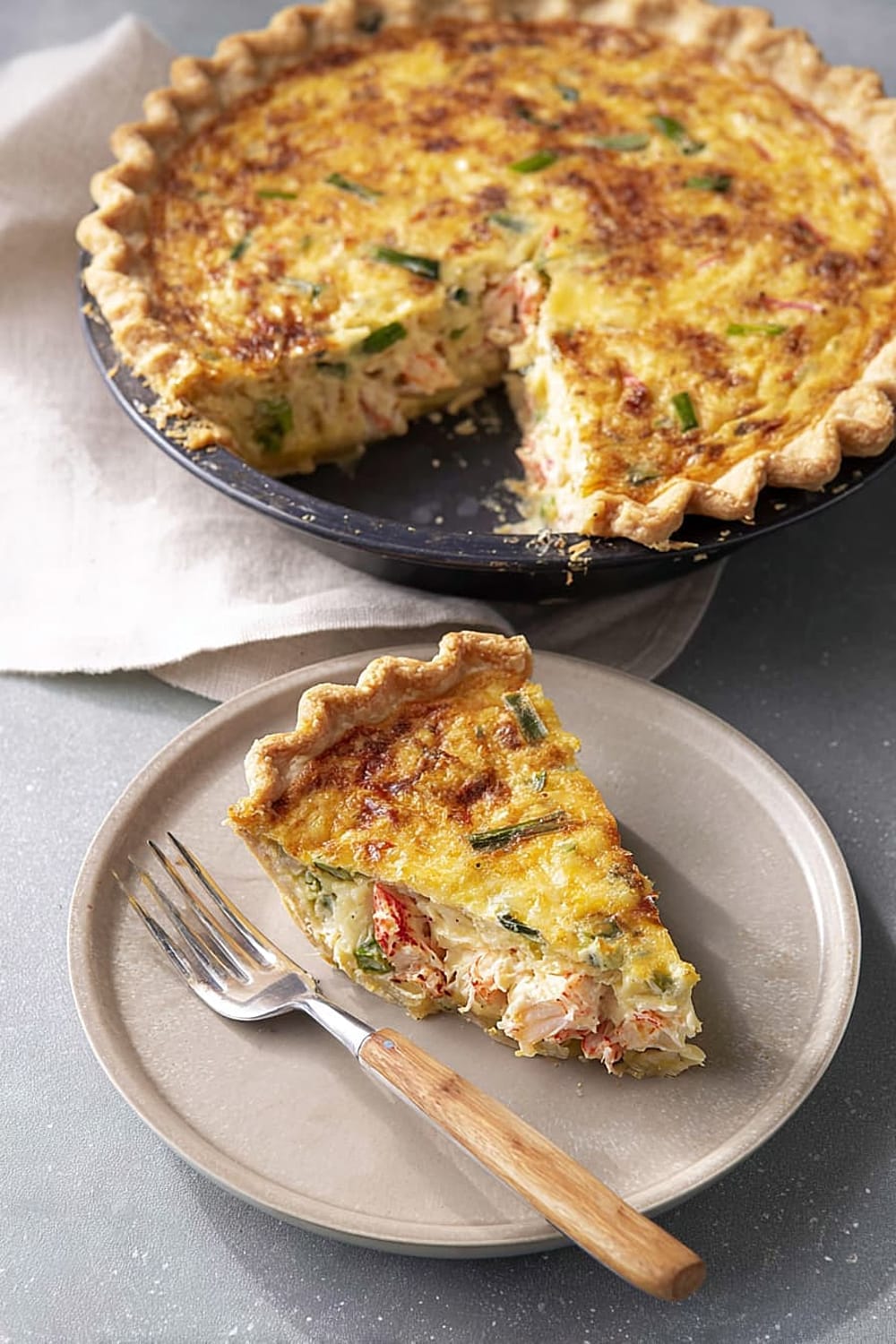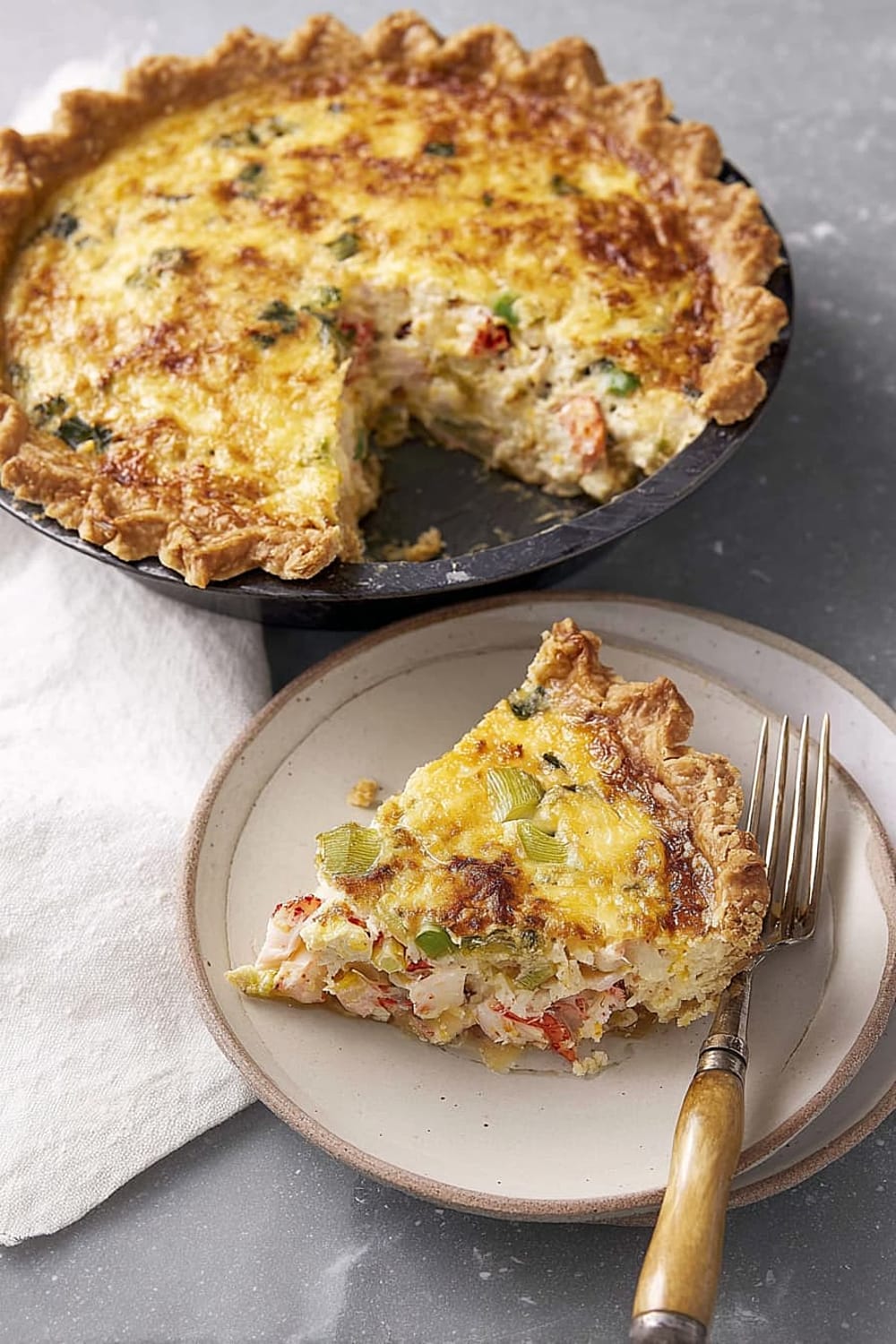 - 4 Repeat with the remaining lobster and scallions, but save the remaining cheese for the final topping. This creates beautiful layers throughout the quiche while reserving cheese for that gorgeous golden top.