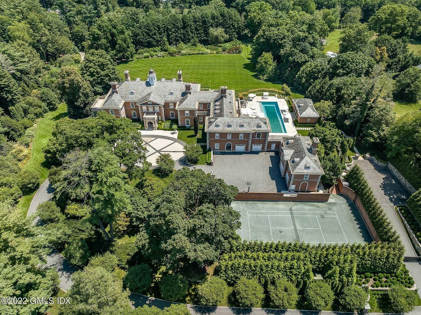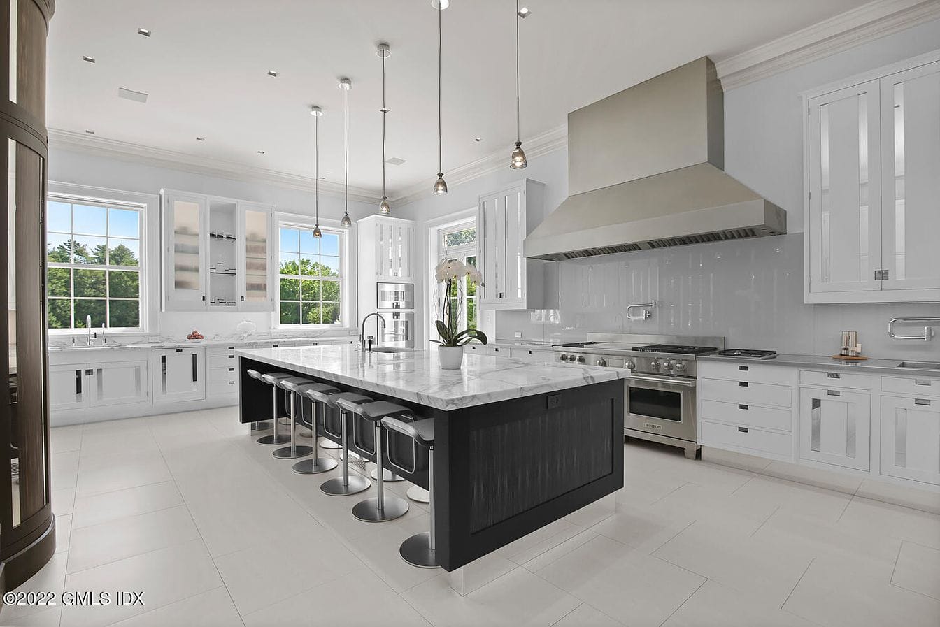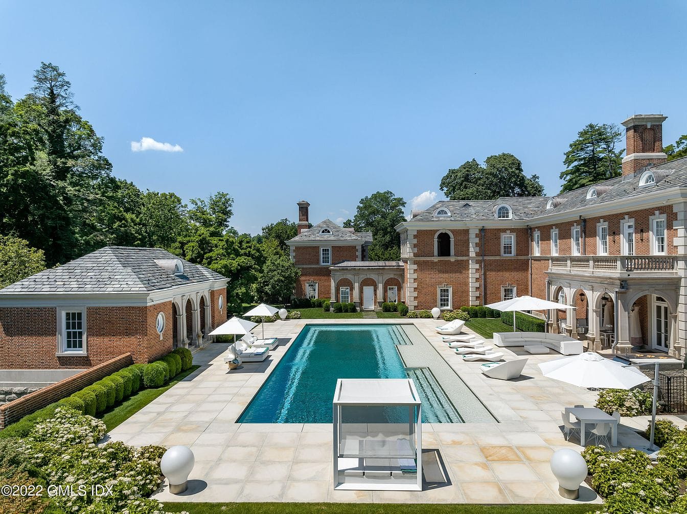 Overlooking 8+ park-like acres in Greenwich, CT, this majestic brick Georgian Colonial offers a blend of timeless elegance and modern luxury. Boasting 8 bedrooms and 13 bathrooms within its expansive 18,954 sq. ft. floor plan, this single-family residence presents a unique opportunity to own a truly exceptional property. Built in 2001 and remodeled in 2015, the home features top-of-the-line appointments and custom detailing throughout.