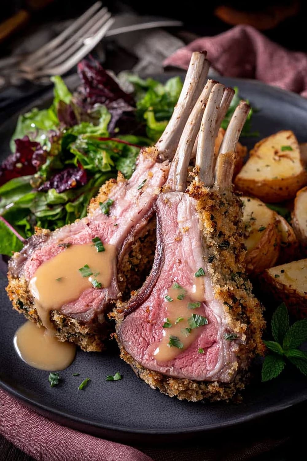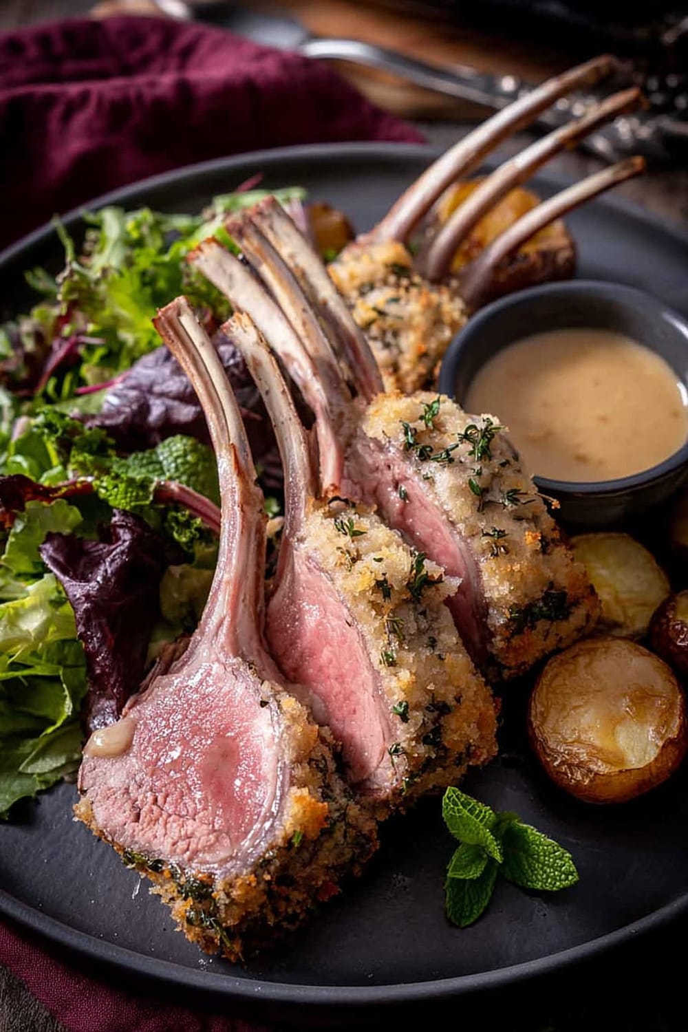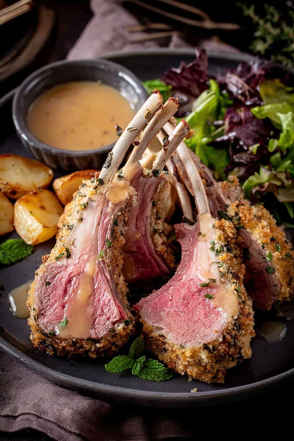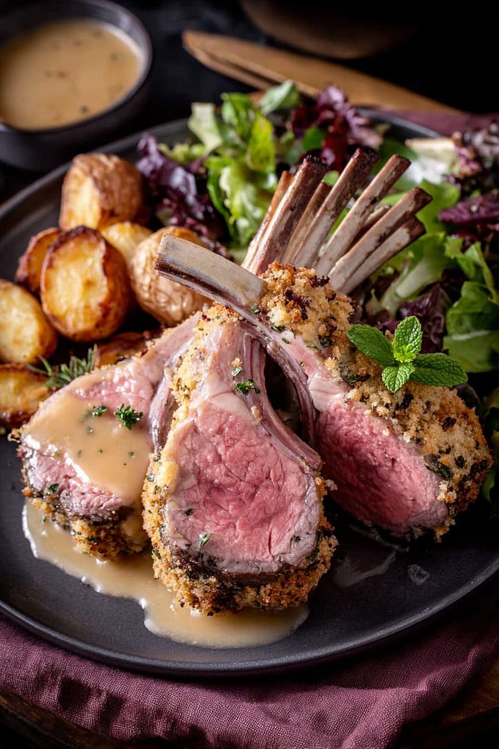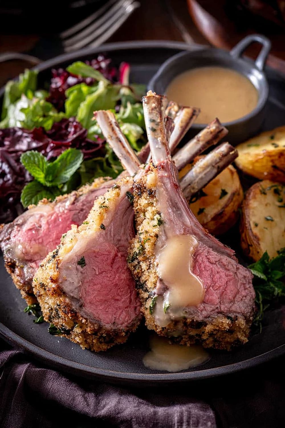 - Grill adaptation – Sear the crusted lamb on a hot grill, then move to indirect heat to finish cooking