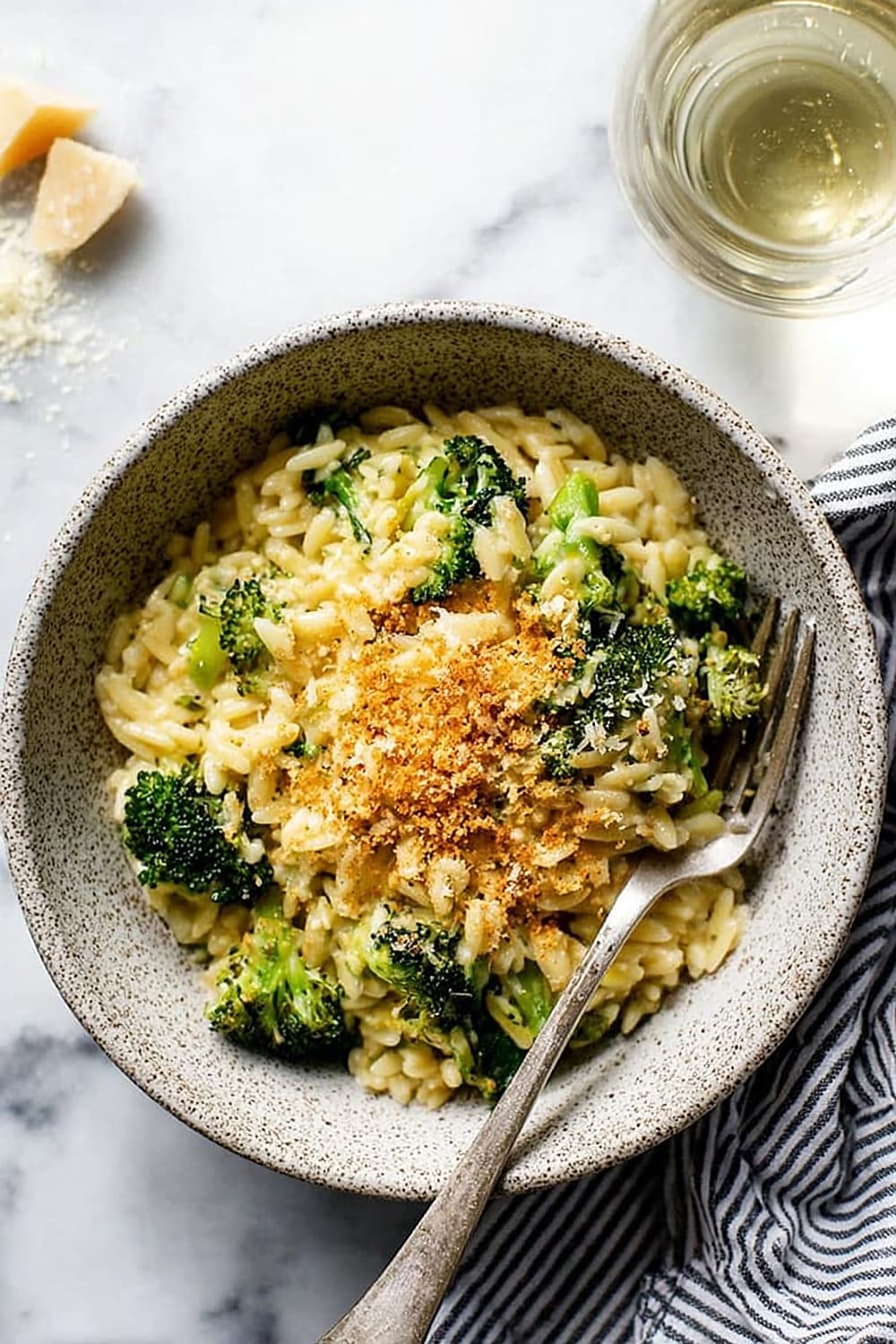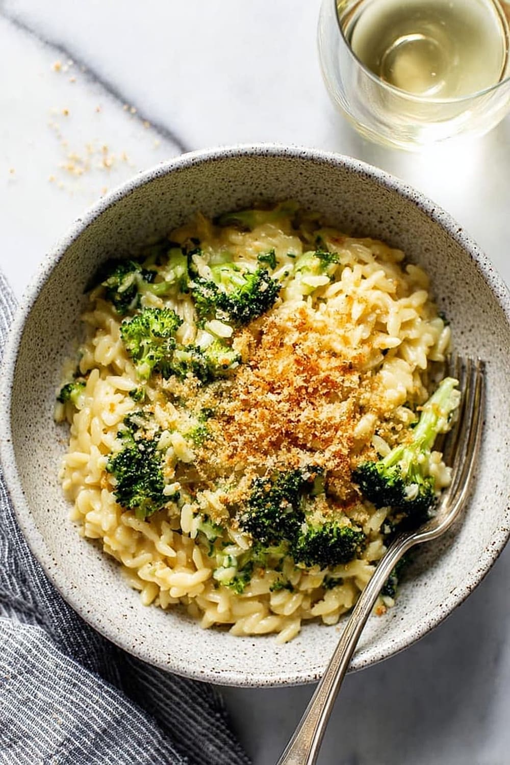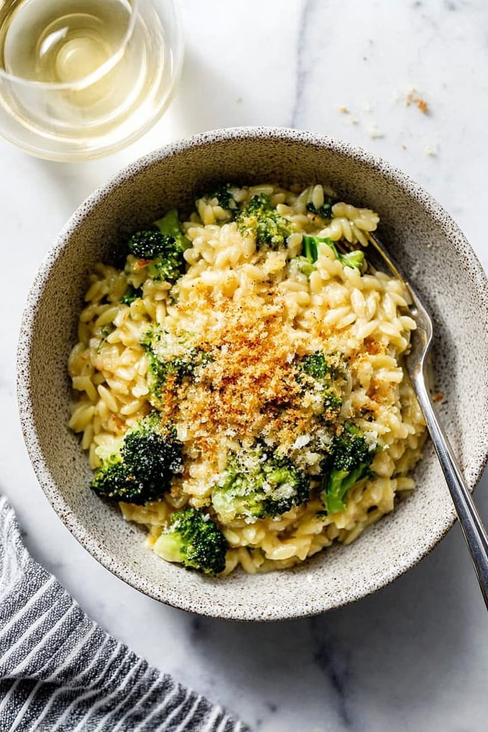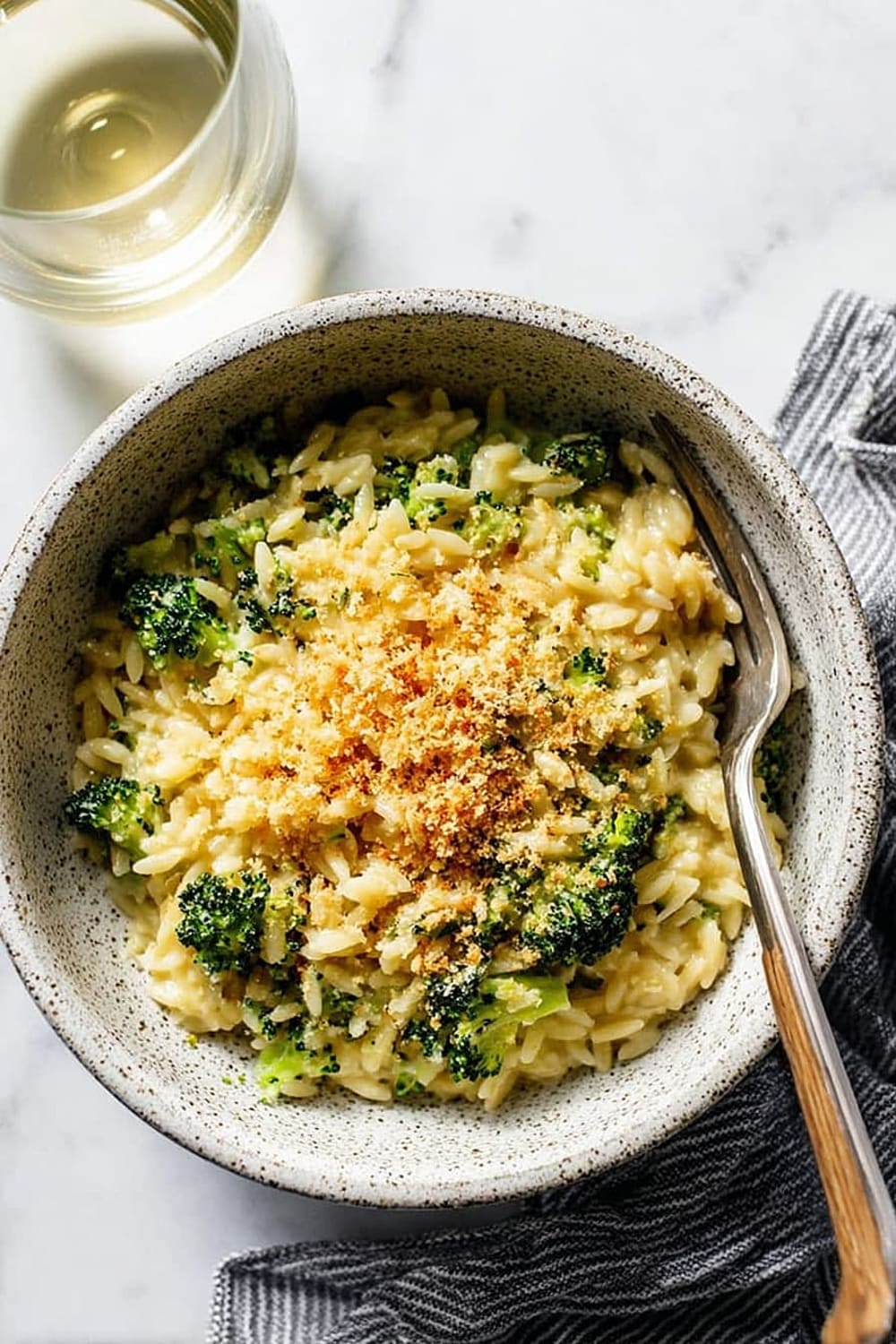 Picture this: creamy, cheesy orzo that cooks directly in a rich, garlicky broth while tender broccoli florets steam to perfection right alongside it.