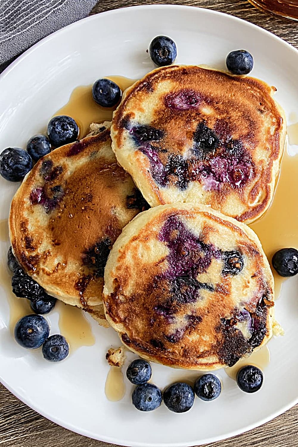 It’s all about that genius technique of dropping fresh blueberries right onto the cooking batter instead of stirring them in.