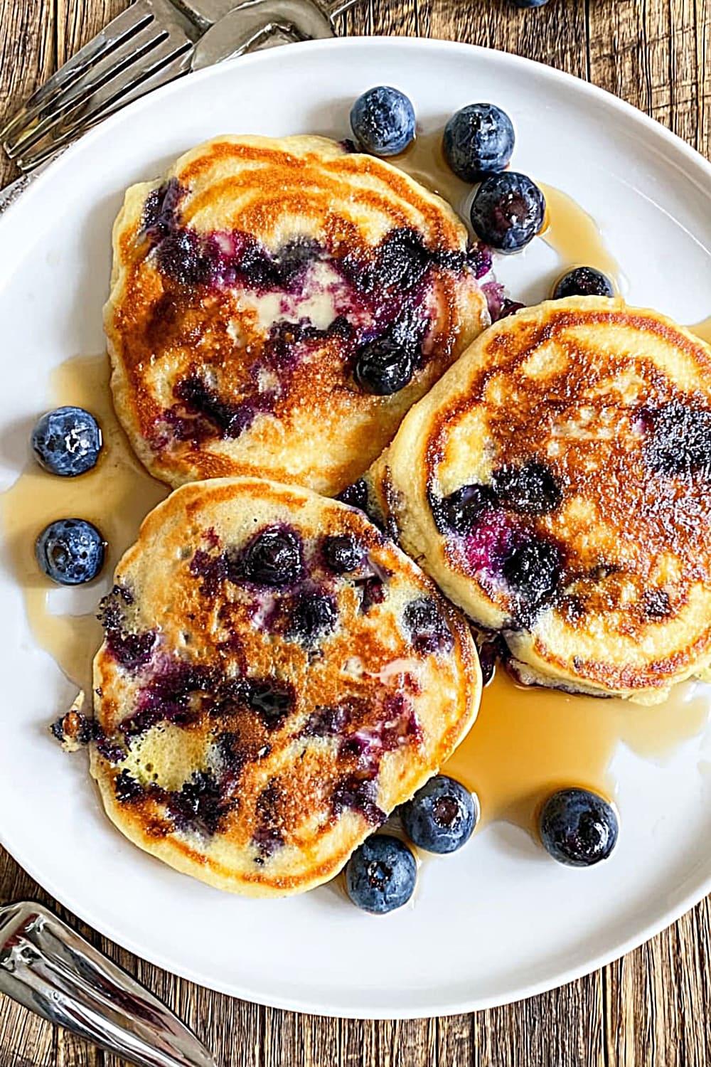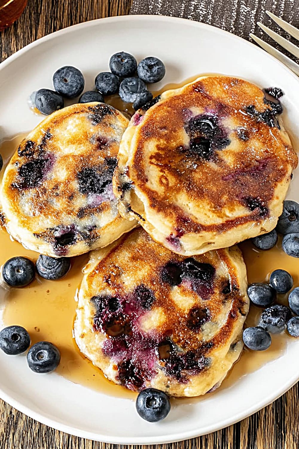 This simple trick keeps your pancakes beautifully golden instead of turning them an unappetizing purple color, while ensuring every bite bursts with juicy blueberry goodness.
